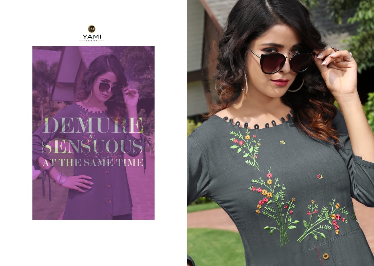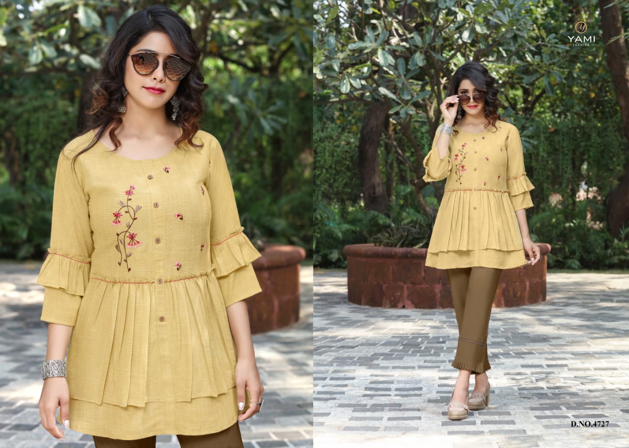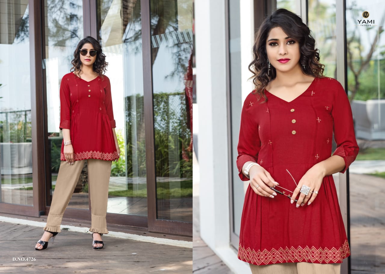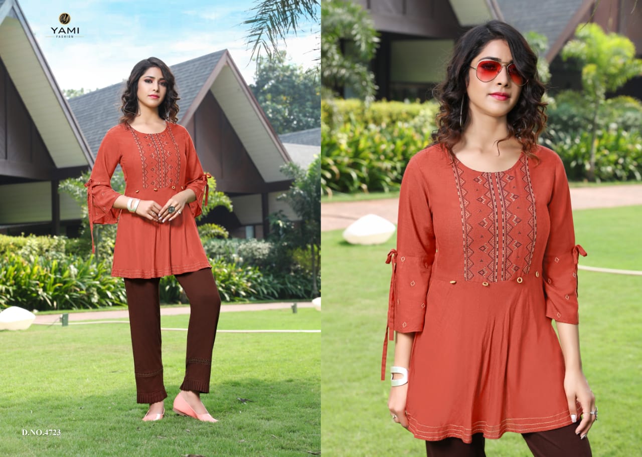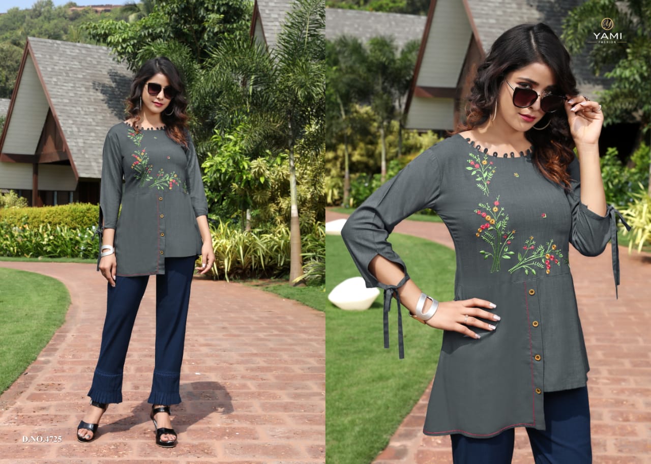 Code By Yami Fashion Rayon Kurti With Lycra Pants Wholesale Supplier And Dealer Gujarat