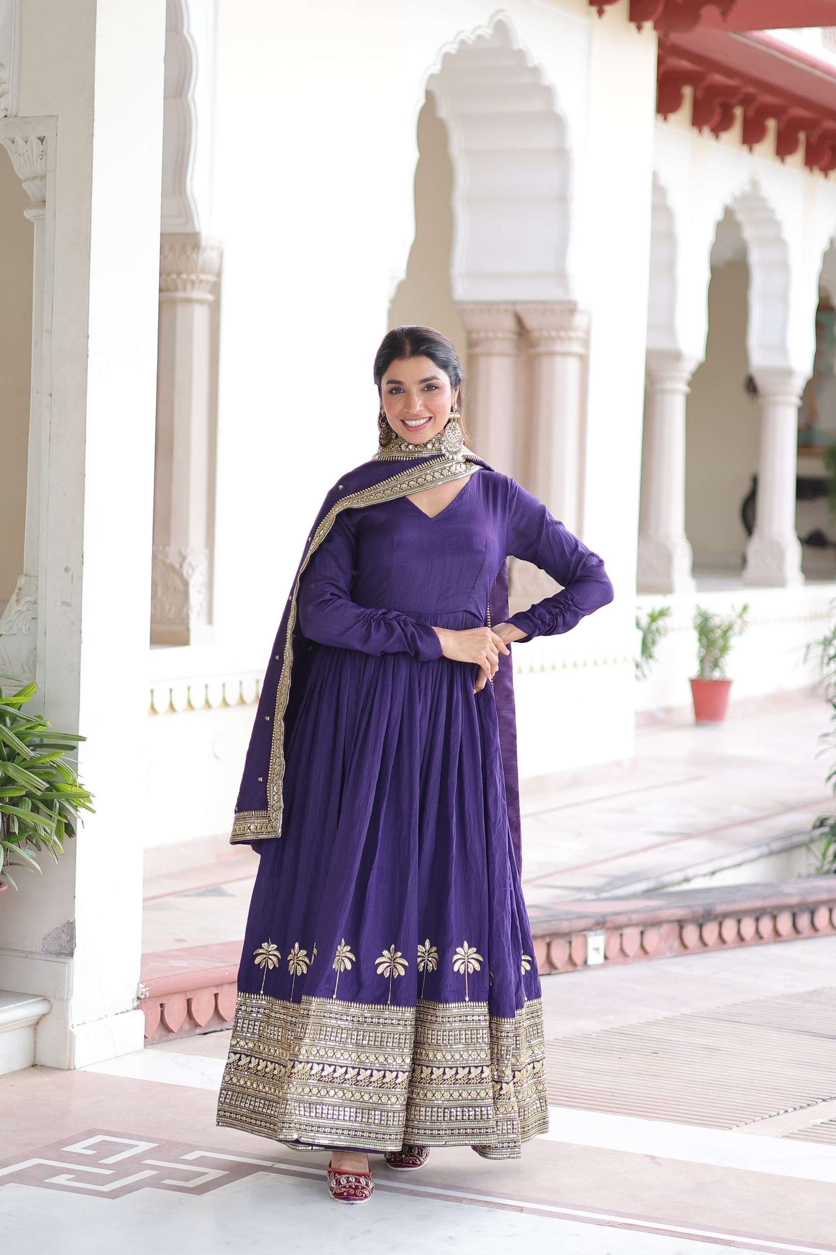👉🏻 *GOWN:-* 👇 👉🏻 *FABRICS & WORK :-* Vichitra Silk with Rich Sequins Embroidered work 👉🏻 *SIZE :-* M (38"), L (40"), XL (42"), XXL (44") 👉🏻 *LENGTH :-* 56 INCH 👉🏻 *FLAIR :-* 3 MTR 👉🏻 *LINING :-* Cotton (Full Inner Top To Bottom) 👉🏻 *SLEEVES:-* Full Sleeves 👉🏻 *NECK TYPE :-* Fancy V Neck 👉🏻 *STITCHING TYPE:-* Stitched with Canvas Patta