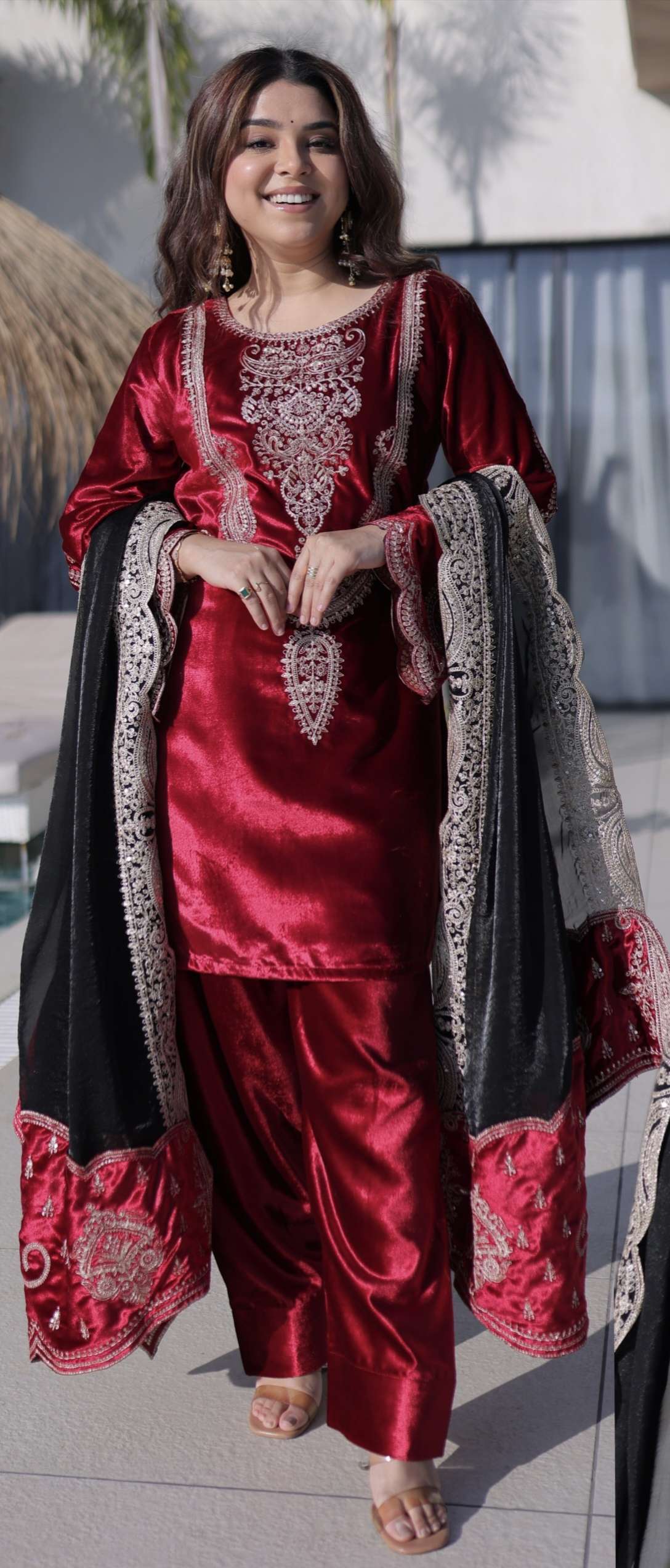 👉🏻 *TOP :-* 👇🏻 👉🏻 *FABRICS & WORK :-* Ice Velvet with Rich Zari Embroidered work 👉🏻 *SIZE :-* M(38"), L(40"), XL(42"), XXL(44") 👉🏻 *LENGTH :-* 31INCH 👉🏻 *LINING :-* Cotton (Full Inner ) 👉🏻 *SLEEVES :-* Full Sleeves (Bell Sleeve) 👉🏻 *NECK TYPE :-* Fancy Round Neck 👉🏻 *STITCHING TYPE :-* Standard Stitching