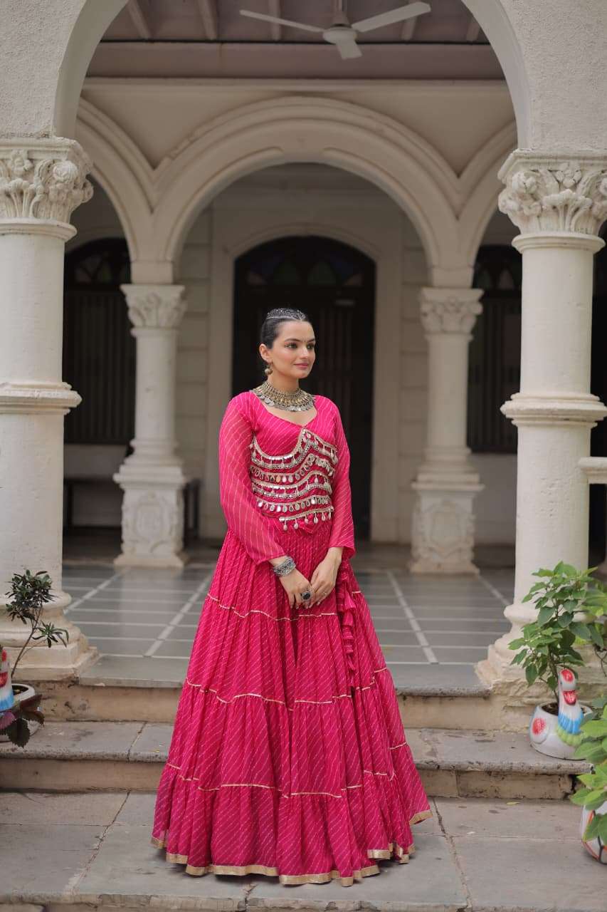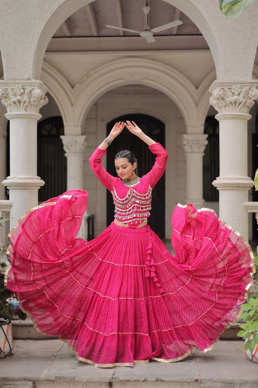 👉🏻 *Lehenga :- (Full-Stitched)* 👇🏻 👉🏻 *Fabric & Work :-* Leheriya Print work With Attractive Gota-Patti Lace 👉🏻 *Length :-* 42'' 👉🏻 *Waist :-* 42'' 👉🏻 *Inner :-* Cotton 👉🏻 *Flair :-* 12 Mtr 👉🏻 *Closure :-* Chain Attached & With Dori Drawstring