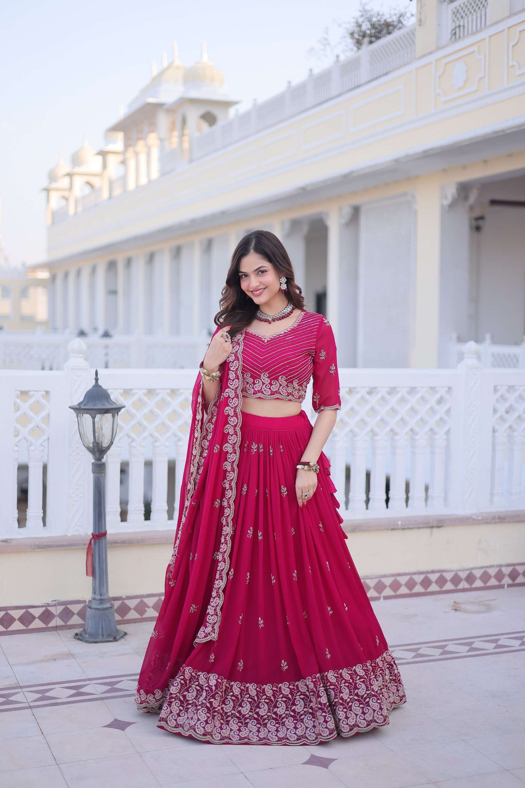 👉🏻*LEHENGA :- (Full-Stitched)* 👇🏻 👉🏻 *FABRICS & WORK :-* Fox Blooming with Sequins & Zari Embroidered Work 👉🏻 *LENGTH :-* 42'' 👉🏻 *WAIST :-* 42'' 👉🏻 *STITCHING TYPE :-* Stitched with Canvas Patta 👉🏻 *INNER:-* Cotton 👉🏻 *FLAIR :-* 3 Mtr 👉🏻 *CLOSURE :-* Chain Attached With Dori-Latkan