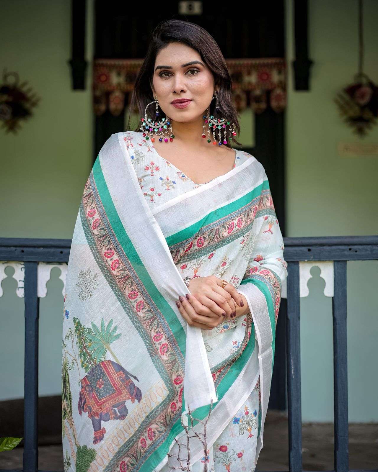 Brand - Alamari fashion 🌺 ROYAL ELEPHANT CHARM 🌺 Pure Linen Saree with Tassels