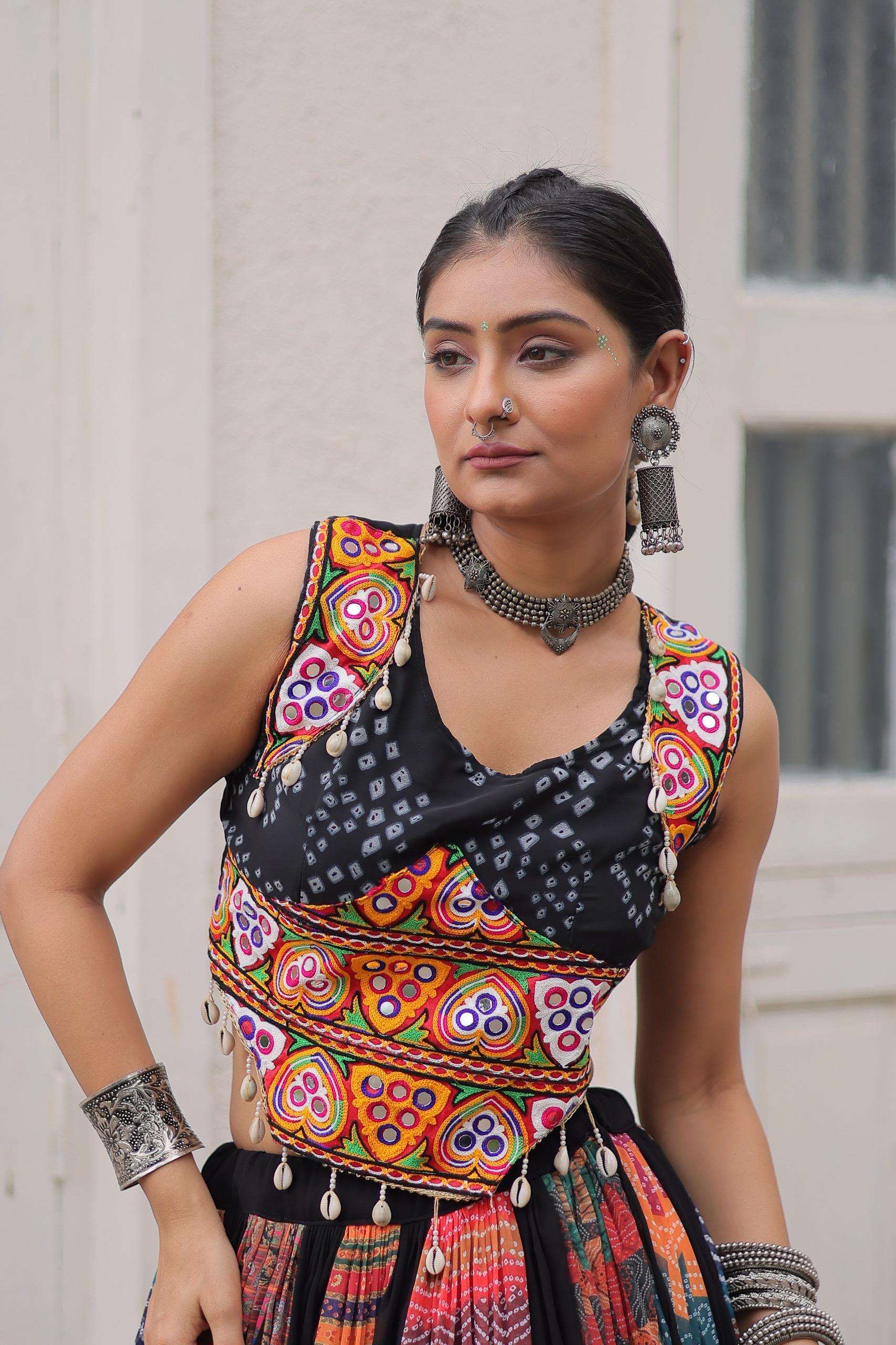 *TOP* :- (Full-stitched) 👇🏻 👉🏻 *FABRICS & WORK* :- Georgette fabric with Kutchi Gamthi Work 👉🏻 *SIZE* :- 40'' Stitched (User can Alter upto 42''-44'') 👉🏻 *LENGTH* :- 18" 👉🏻 *SLEEVES* :- Sleeves less