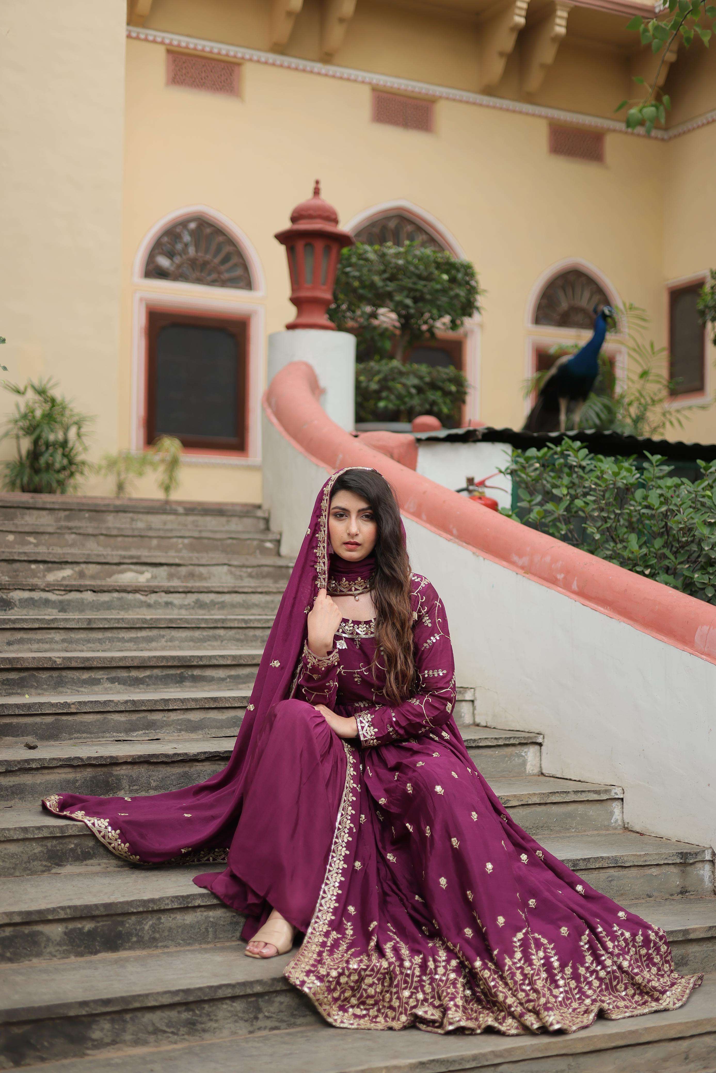💕💃🏻 Get ready to shine with these stunning outfit Made from Chinon And Sequins Embroidered Work. Discover the perfect ensemble to add a touch of glamour to your wardrobe and stand out from the crowd 💕💃🏻.