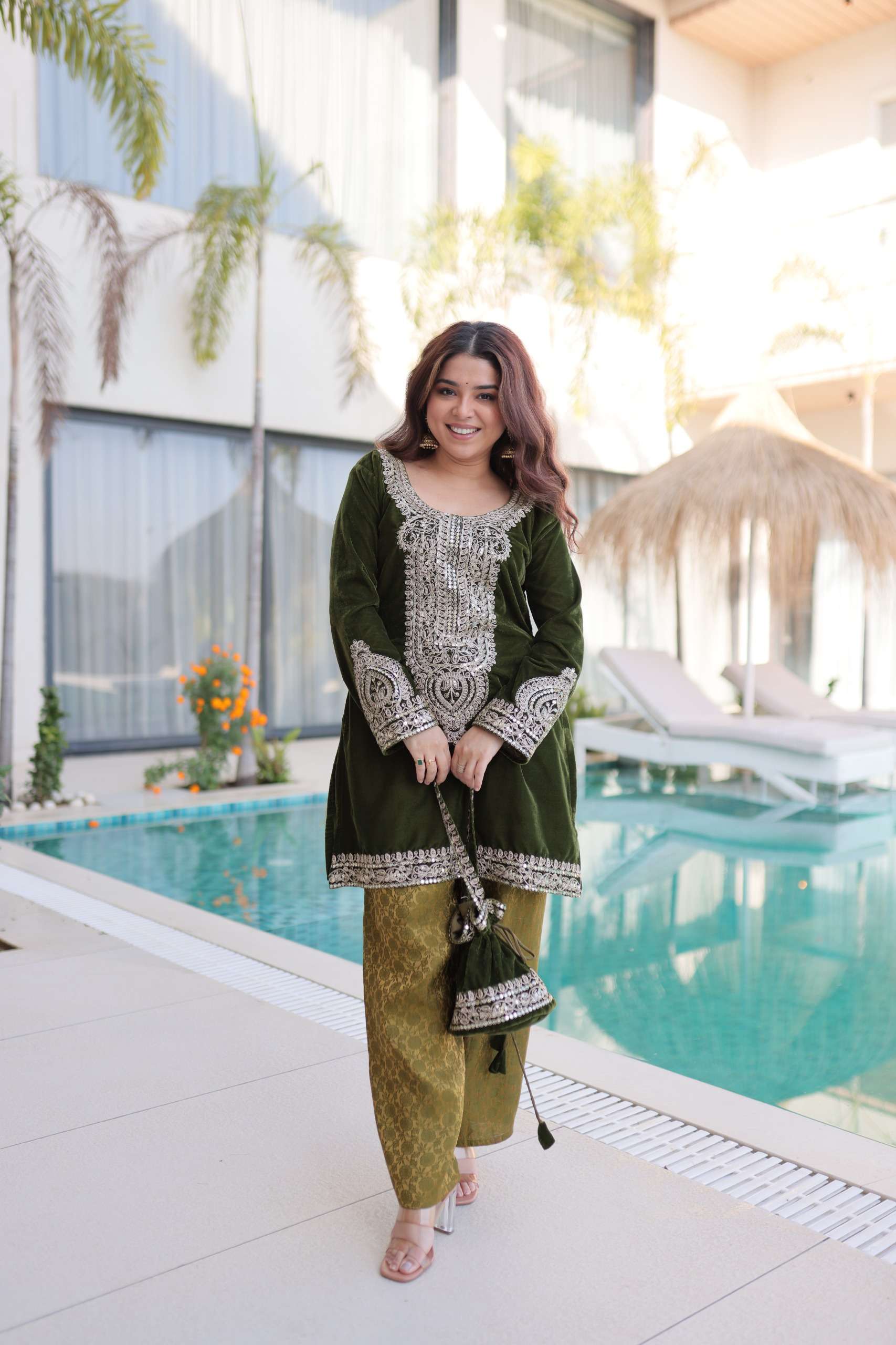 💕💃🏻 *Get ready to shine with these stunning outfit Made from 9000 Velvet With Zari Embroidered & Real Mirror Work. Discover the perfect ensemble to add a touch of glamour to your wardrobe and stand out from the crowd.* 💕💃🏻.