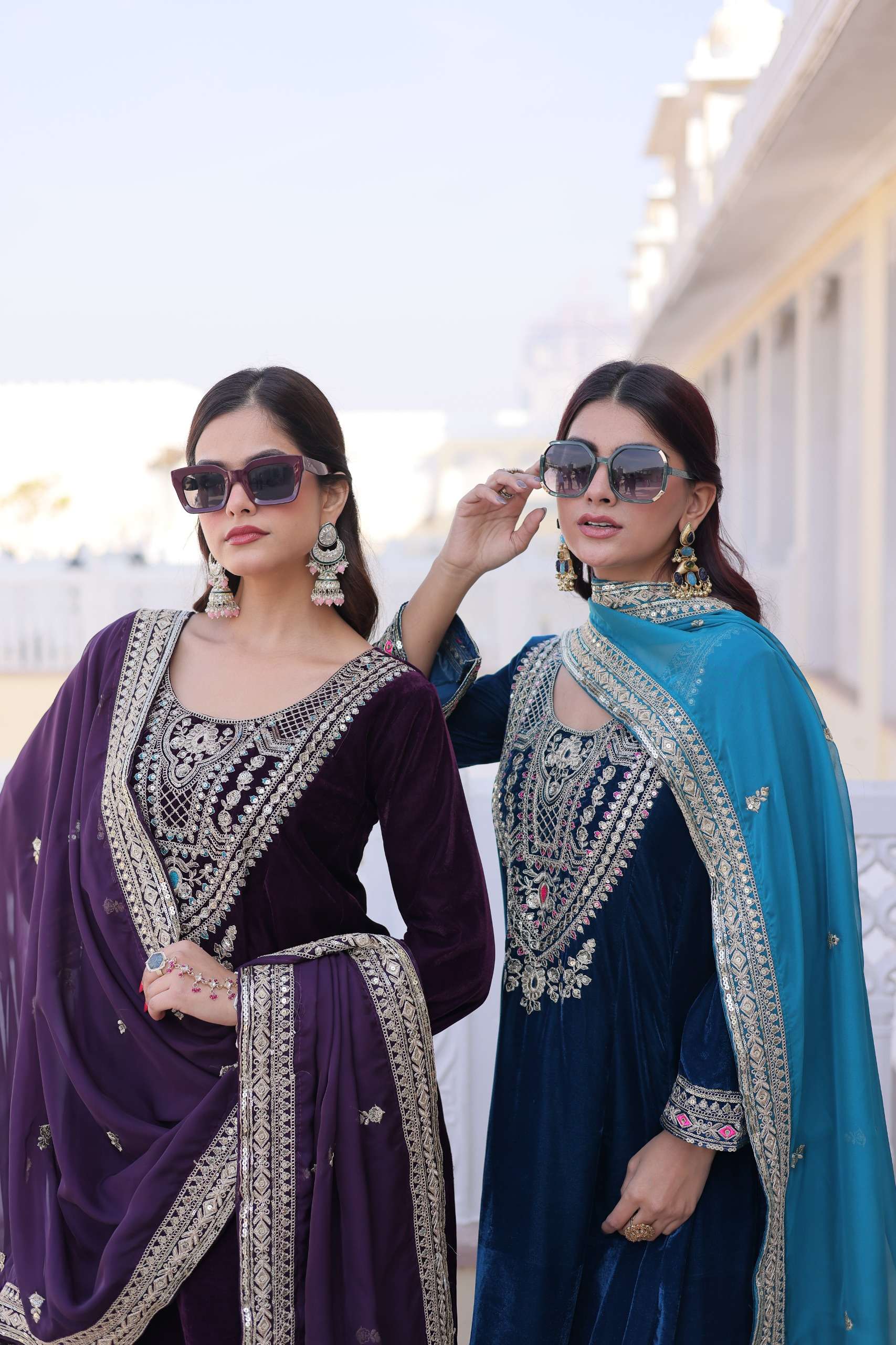 💕💃🏻 *Get ready to shine with these stunning outfit Made from 9000 Velvet With Zari Coding & Thread Embroidered Work. Discover the perfect ensemble to add a touch of glamour to your wardrobe and stand out from the crowd.* 💕💃🏻.