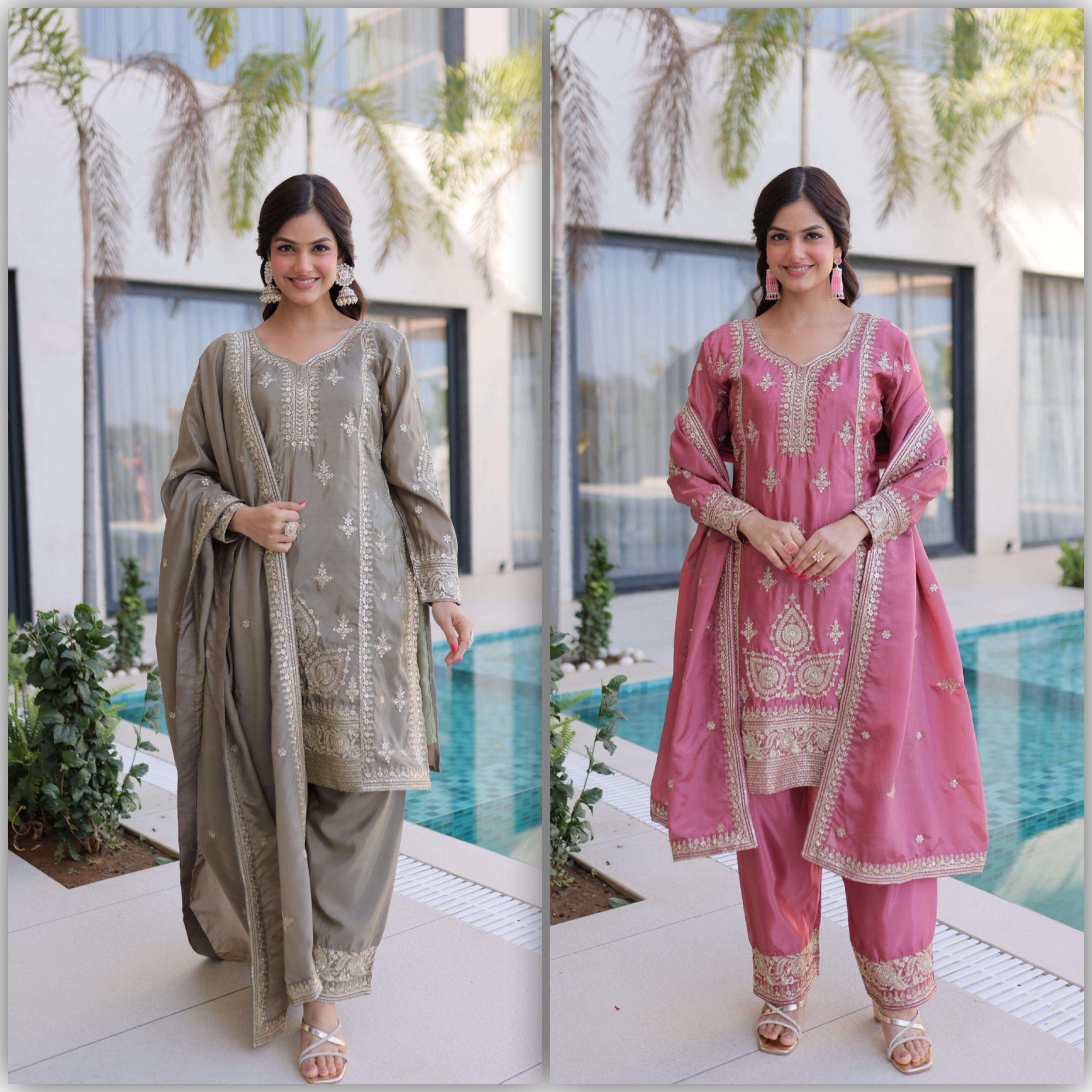 💕💃🏻 *Get ready to shine with these stunning outfit Made from Ho silk With Multi & Thread Embroidered work. Discover the perfect ensemble to add a touch of glamour to your wardrobe and stand out from the crowd.* 💕💃🏻.