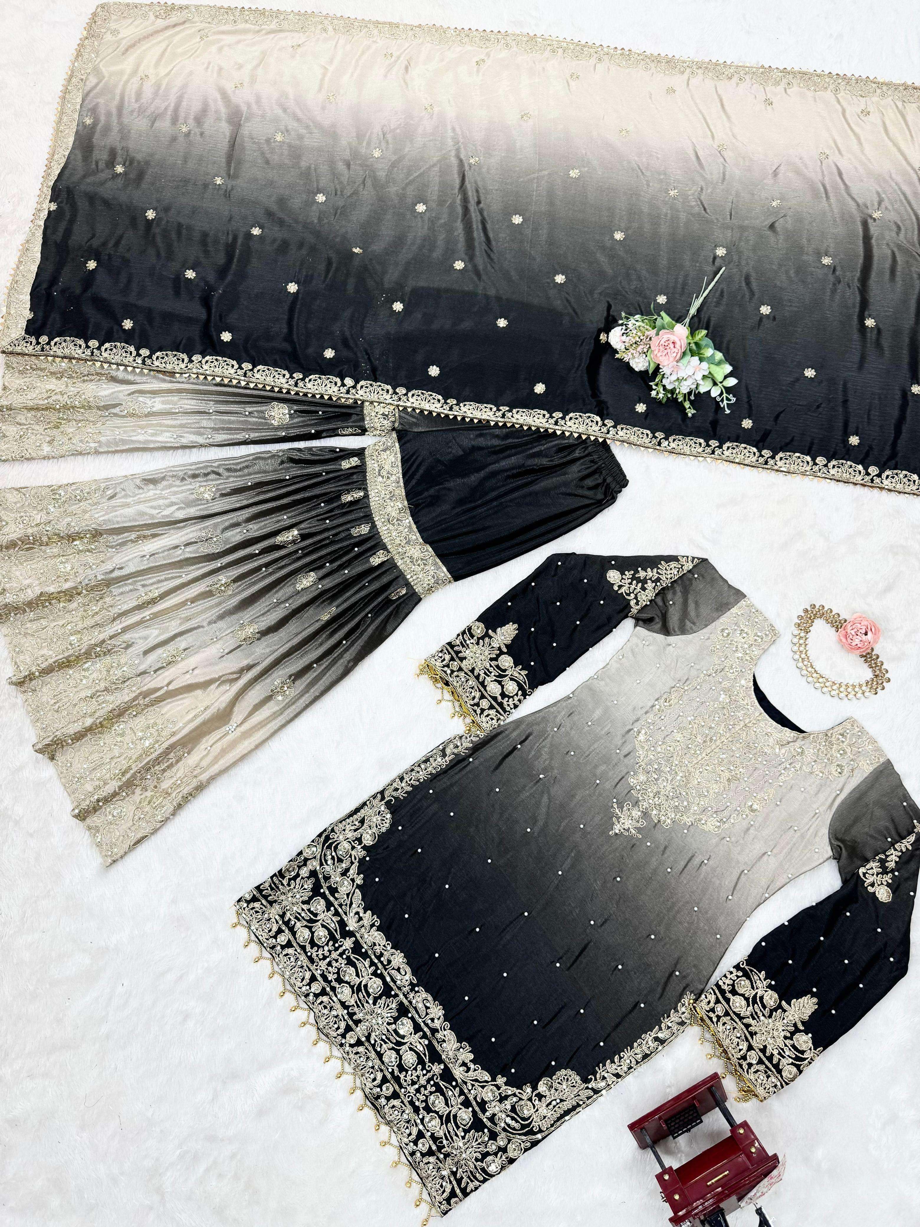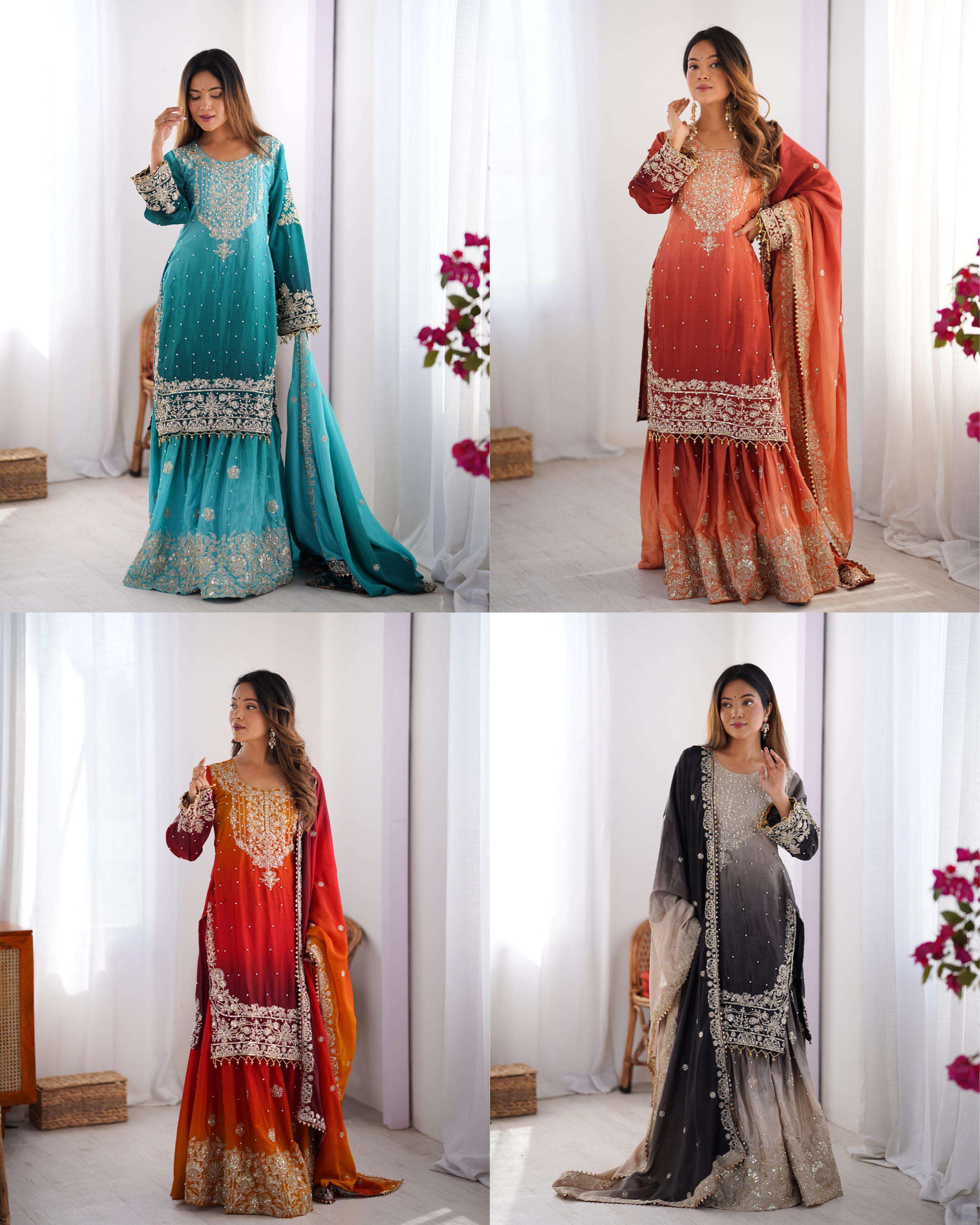 *Fabric* : Chinon silk *Inner* : Micro *Work*. : Codeing Dori with Sequnce with Rivet Moti *Stich*. : *M(38), L(40), XL(42), XXL(44)*
