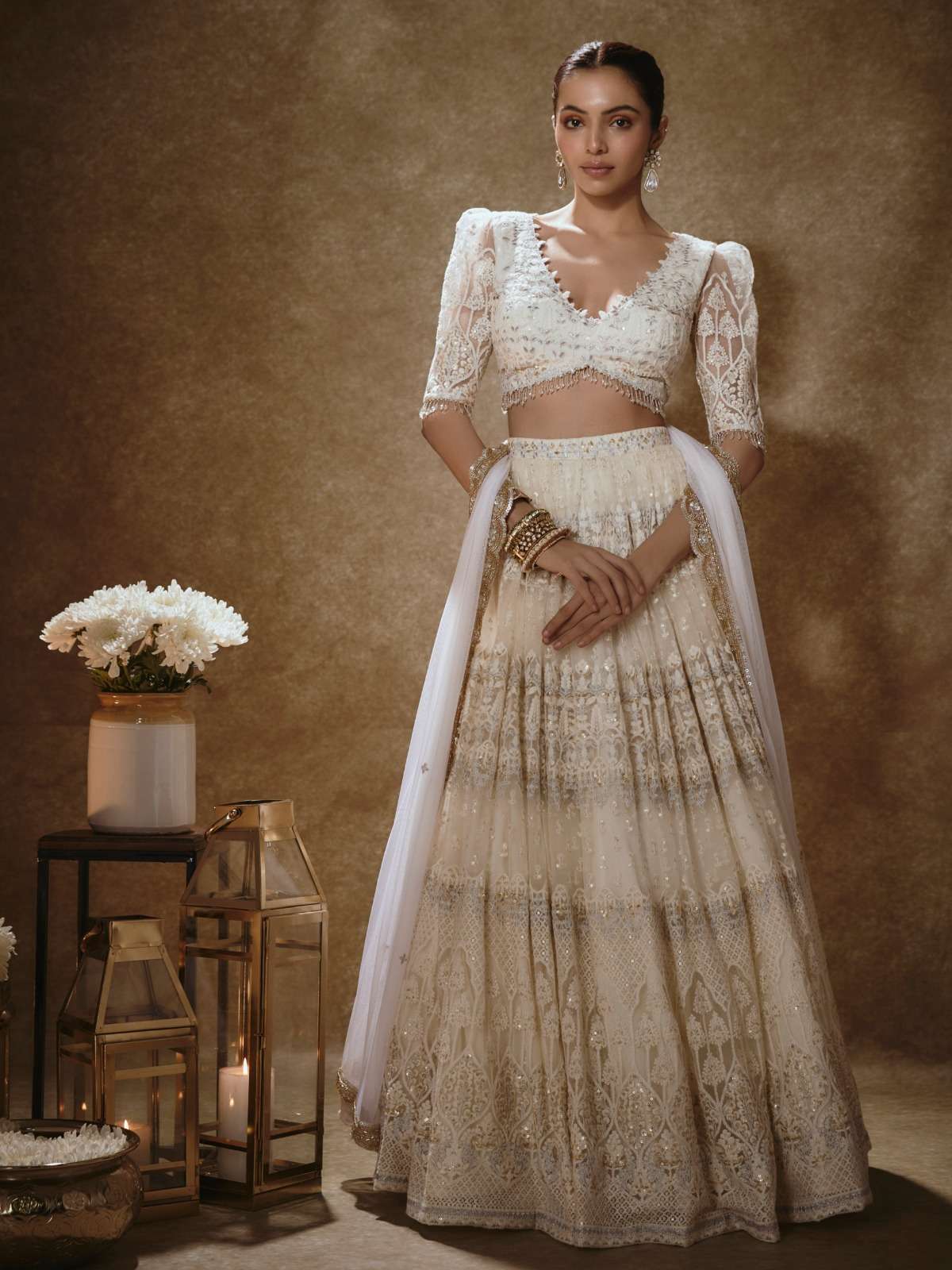 #LehengaCholi #DesignerLehenga #OffWhiteLehenga #LuxuryEthnicWear #WeddingCollection #FestiveWear #BoutiqueCollection #IndianEthnicWear #WholesaleFashion #AryaDesigns |