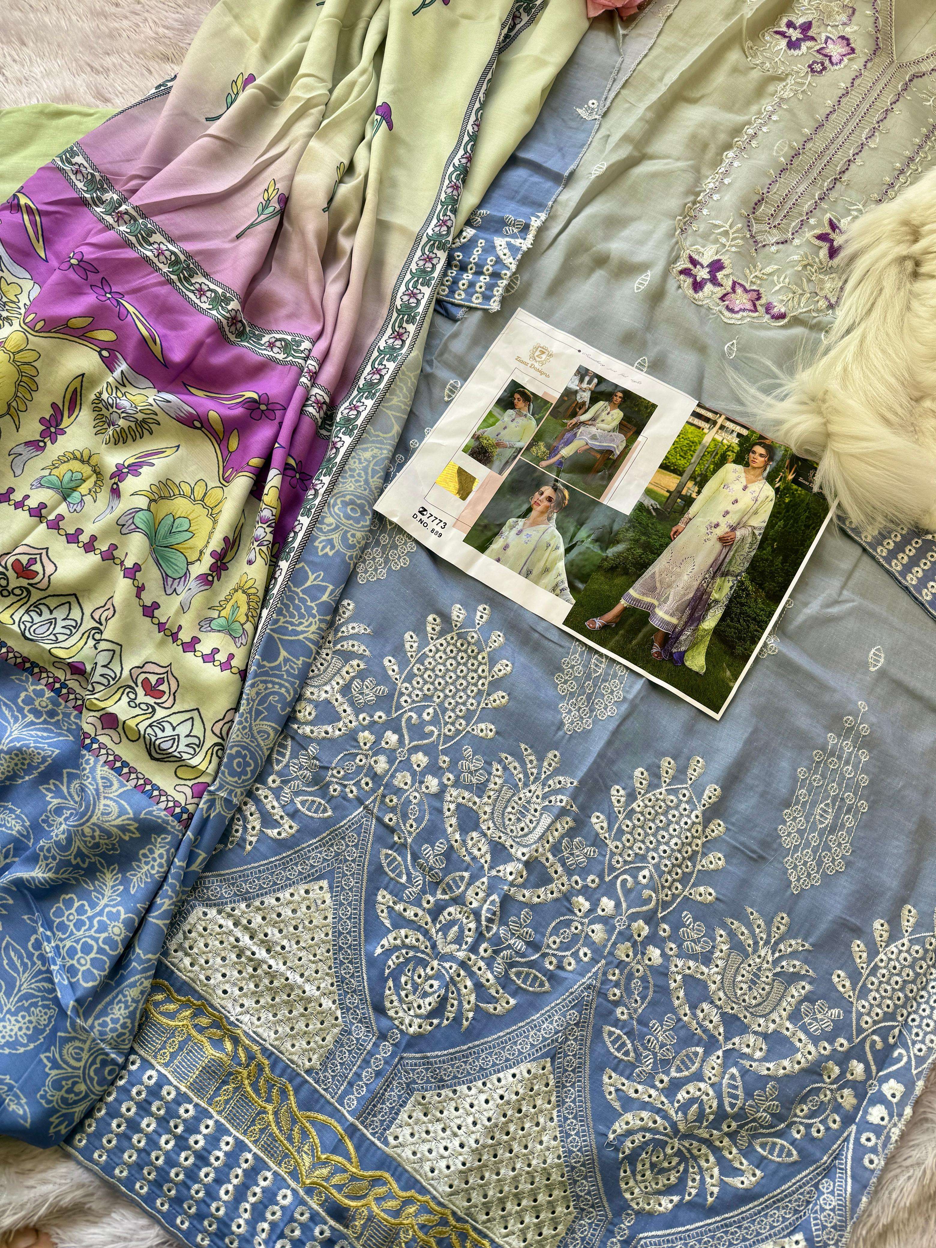 Cambric cotton chikenkari shaded semi stitched very heavy embrdrd kameez cotton unstitched bottoms Muslin lawn beautiful printed dupatta