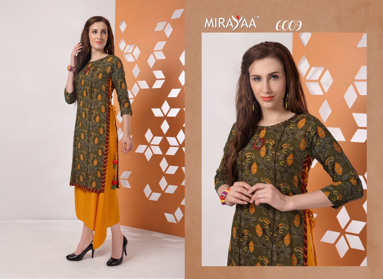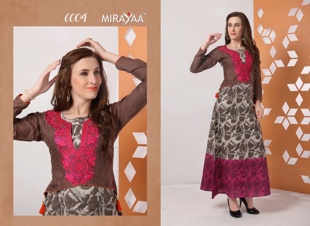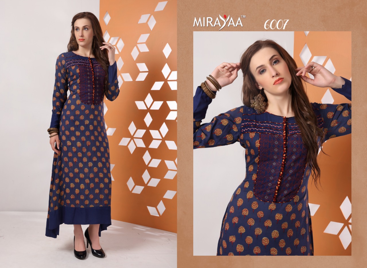 Buy Online Color By Mirayaa 6001 Series Fancy Reyon Cotton Kurti Catlog Wholesaler And Supplier Surat 10 Pcs of Full Catalogue at Wholesale Price. Looking for Color By Mirayaa 6001 Series Fancy Reyon Cotton Kurti Catlog Wholesaler And Supplier Surat Full Catalouge at Best Price? Buy Now Color By Mirayaa 6001 Series Fancy Reyon Cotton Kurti Catlog Wholesaler And Supplier Surat at Wholesale Rate of Rs 6250 with Total 10 Pcs from authroized dealer and supplier of Brand. Cost of Each piece is just only Rs 625 which is very low and affordable price to resale the product in your retail store ,This is Surat based Wholesale Supplier & Dealer of Brand. Click on Brand name to Know more about Brand's products.Call or Whatsapp on 9898838984 for booking or enquiry