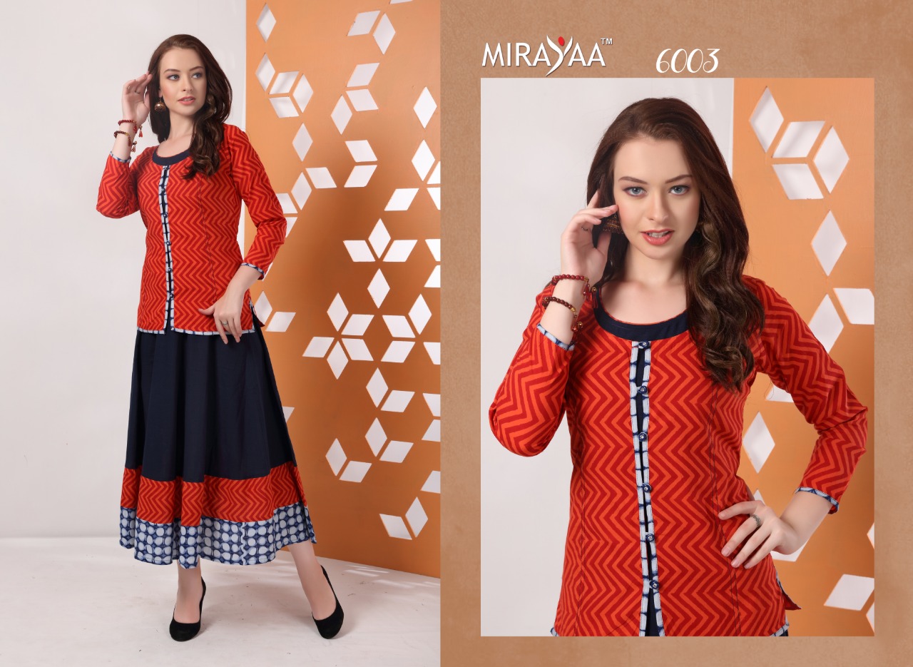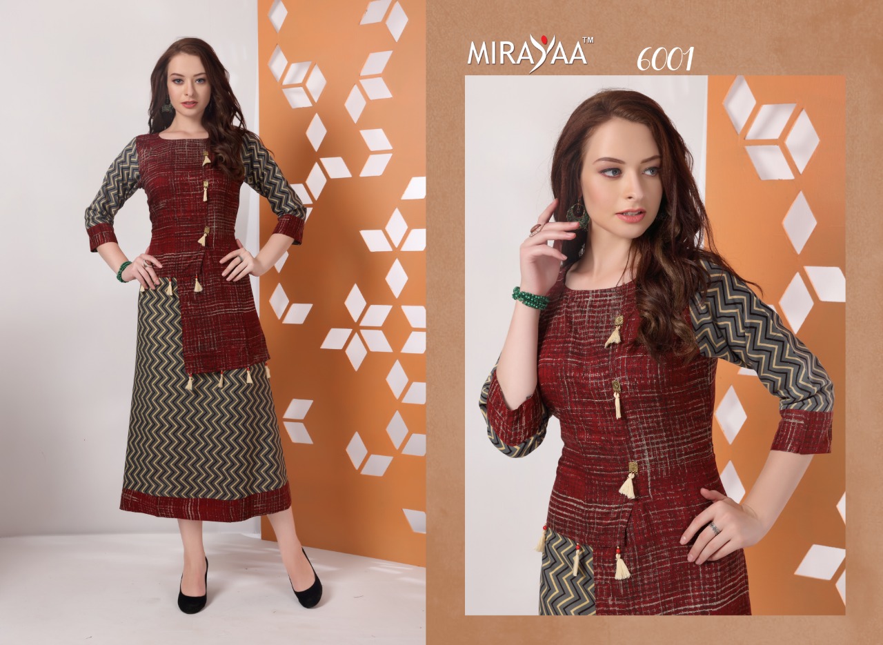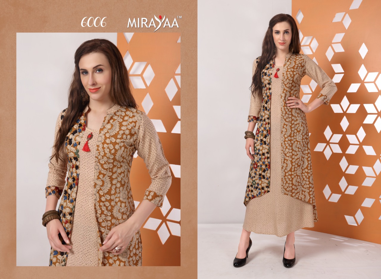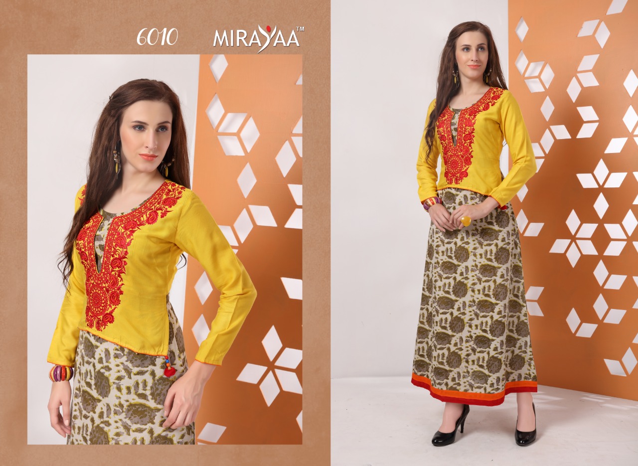 Buy Online Color By Mirayaa 6001 Series Fancy Reyon Cotton Kurti Catlog Wholesaler And Supplier Surat 10 Pcs of Full Catalogue at Wholesale Price. Looking for Color By Mirayaa 6001 Series Fancy Reyon Cotton Kurti Catlog Wholesaler And Supplier Surat Full Catalouge at Best Price? Buy Now Color By Mirayaa 6001 Series Fancy Reyon Cotton Kurti Catlog Wholesaler And Supplier Surat at Wholesale Rate of Rs 6250 with Total 10 Pcs from authroized dealer and supplier of Brand. Cost of Each piece is just only Rs 625 which is very low and affordable price to resale the product in your retail store ,This is Surat based Wholesale Supplier & Dealer of Brand. Click on Brand name to Know more about Brand's products.Call or Whatsapp on 9898838984 for booking or enquiry