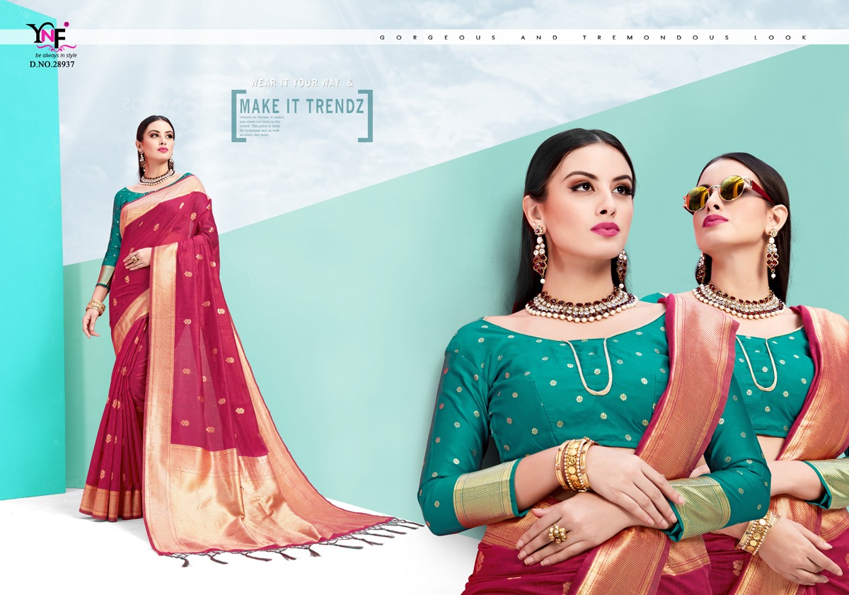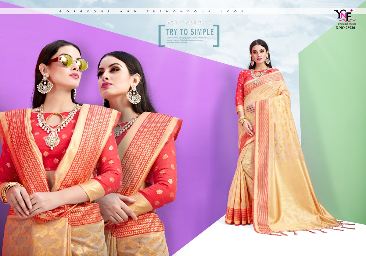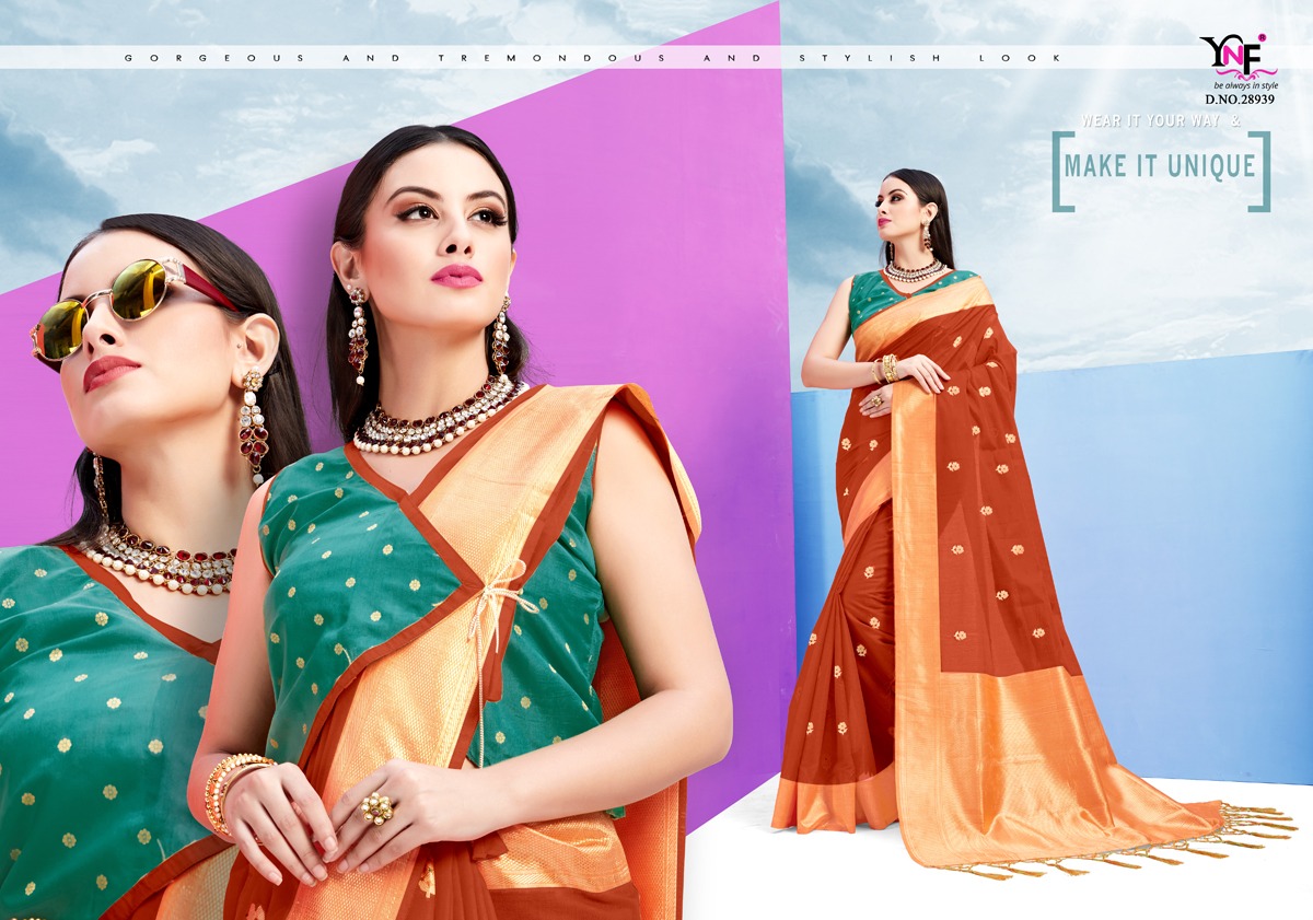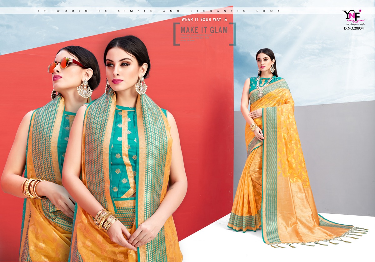 Buy Online Coloroso By Yadunandan Fashion 28930 Series Fancy Cotton Silk Jecqard Saree Catlog Wholesaler Surat 10 Pcs of Full Catalogue at Wholesale Price. Looking for Coloroso By Yadunandan Fashion 28930 Series Fancy Cotton Silk Jecqard Saree Catlog Wholesaler Surat Full Catalouge at Best Price? Buy Now Coloroso By Yadunandan Fashion 28930 Series Fancy Cotton Silk Jecqard Saree Catlog Wholesaler Surat at Wholesale Rate of Rs 11500 with Total 10 Pcs from authroized dealer and supplier of YADU NANDAN FASHION Brand. Cost of Each piece is just only Rs 1150 which is very low and affordable price to resale the product in your retail store ,This is Surat based Wholesale Supplier & Dealer of YADU NANDAN FASHION Brand. Click on Brand name to Know more about YADU NANDAN FASHION Brand's products.Call or Whatsapp on 9898838984 for booking or enquiry