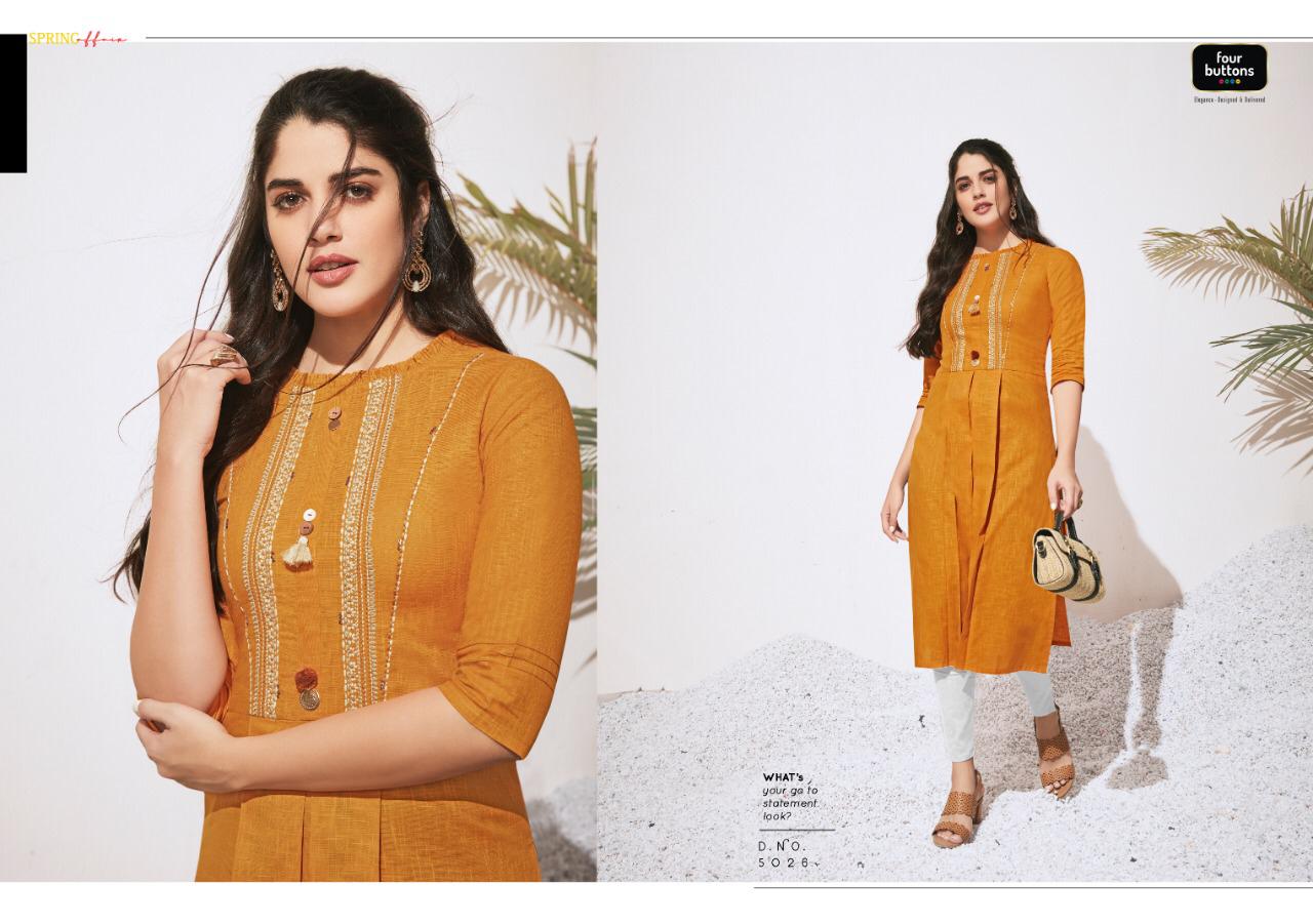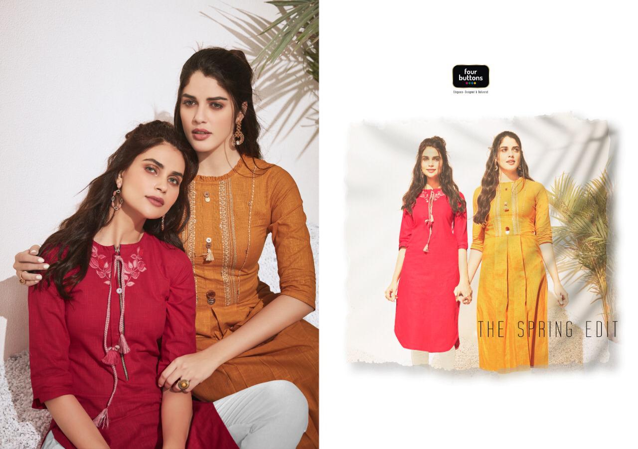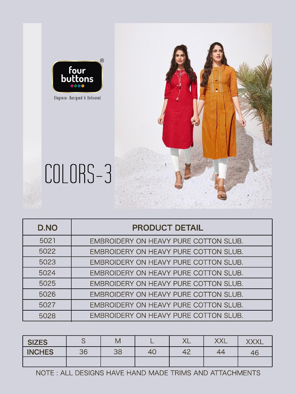 Buy Online Colors 3 By Four Buttons Cotton Designer Kurtis Wholesale Supplier Gujarat 8 Pcs of Full Catalogue at Wholesale Price. Looking for Colors 3 By Four Buttons Cotton Designer Kurtis Wholesale Supplier Gujarat Full Catalouge at Best Price? Buy Now Colors 3 By Four Buttons Cotton Designer Kurtis Wholesale Supplier Gujarat at Wholesale Rate of Rs 4760 with Total 8 Pcs from authroized dealer and supplier of FOUR BUTTONS Brand. Cost of Each piece is just only Rs 595 which is very low and affordable price to resale the product in your retail store ,This is Surat based Wholesale Supplier & Dealer of FOUR BUTTONS Brand. Click on Brand name to Know more about FOUR BUTTONS Brand's products.Call or Whatsapp on 9898838984 for booking or enquiry
