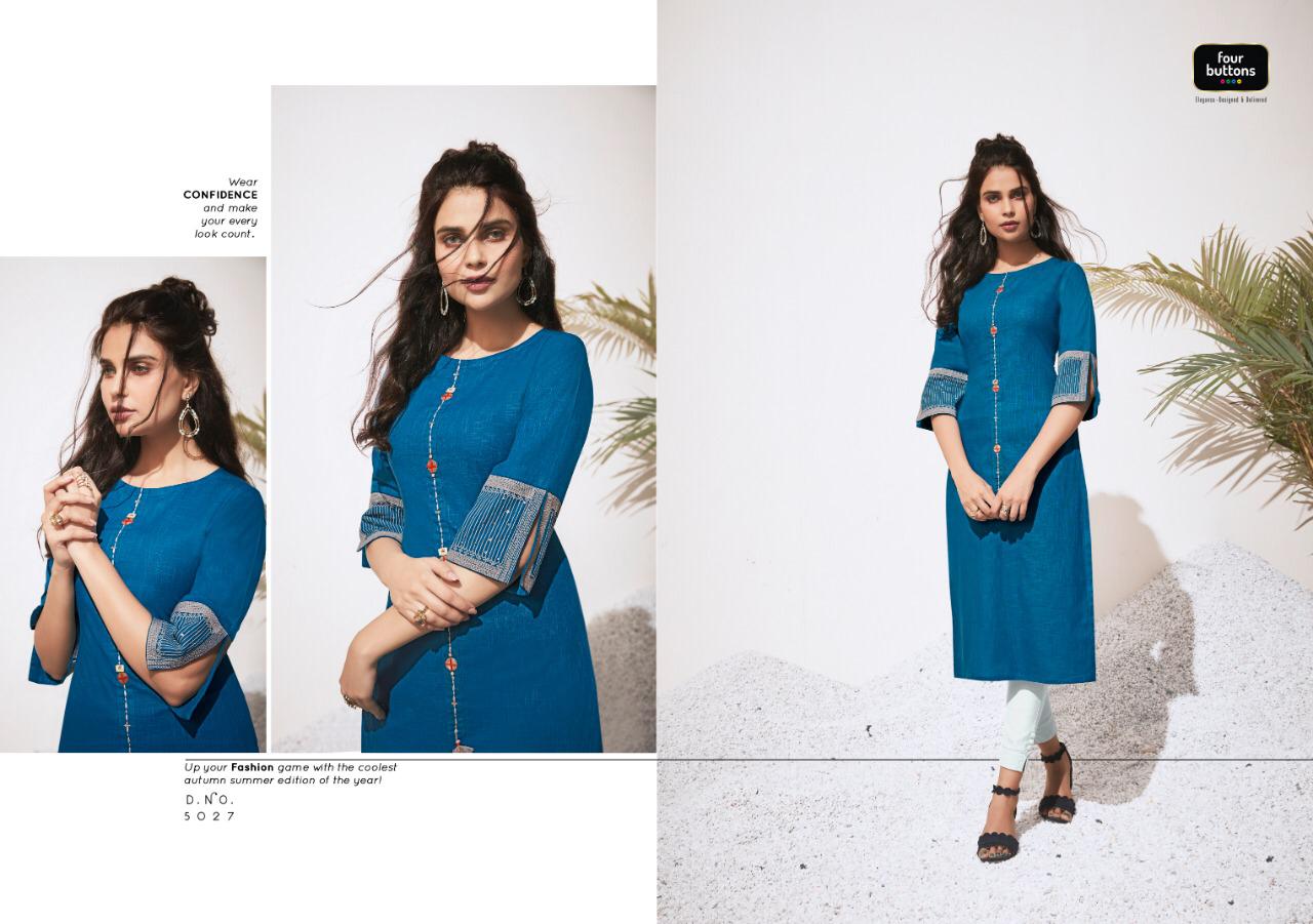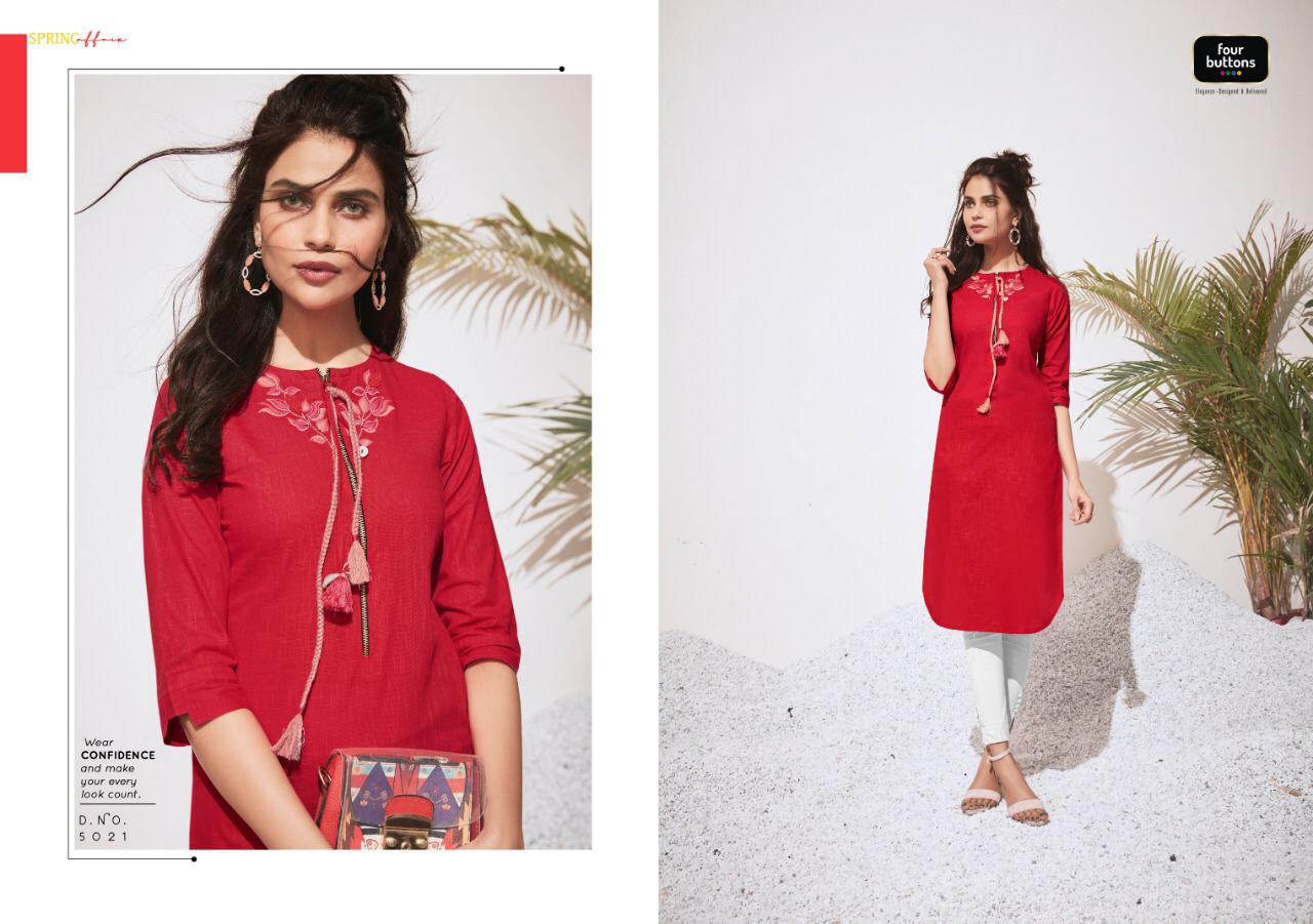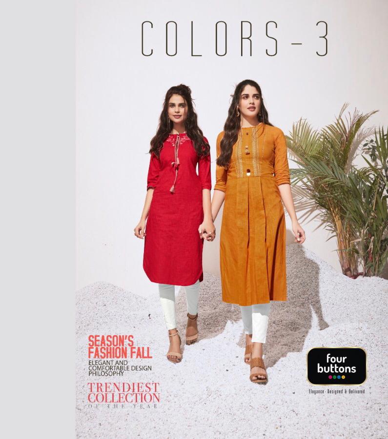Colors 3 By Four Buttons Cotton Designer Kurtis Wholesale Supplier Gujarat