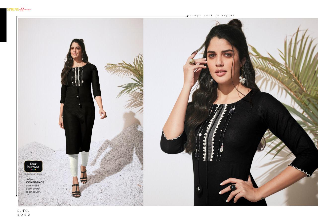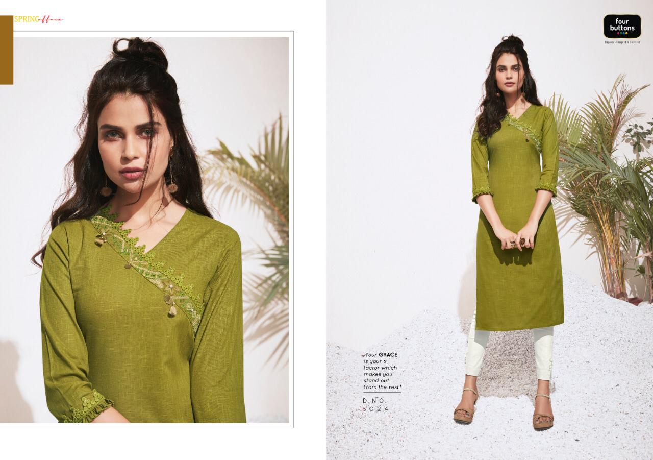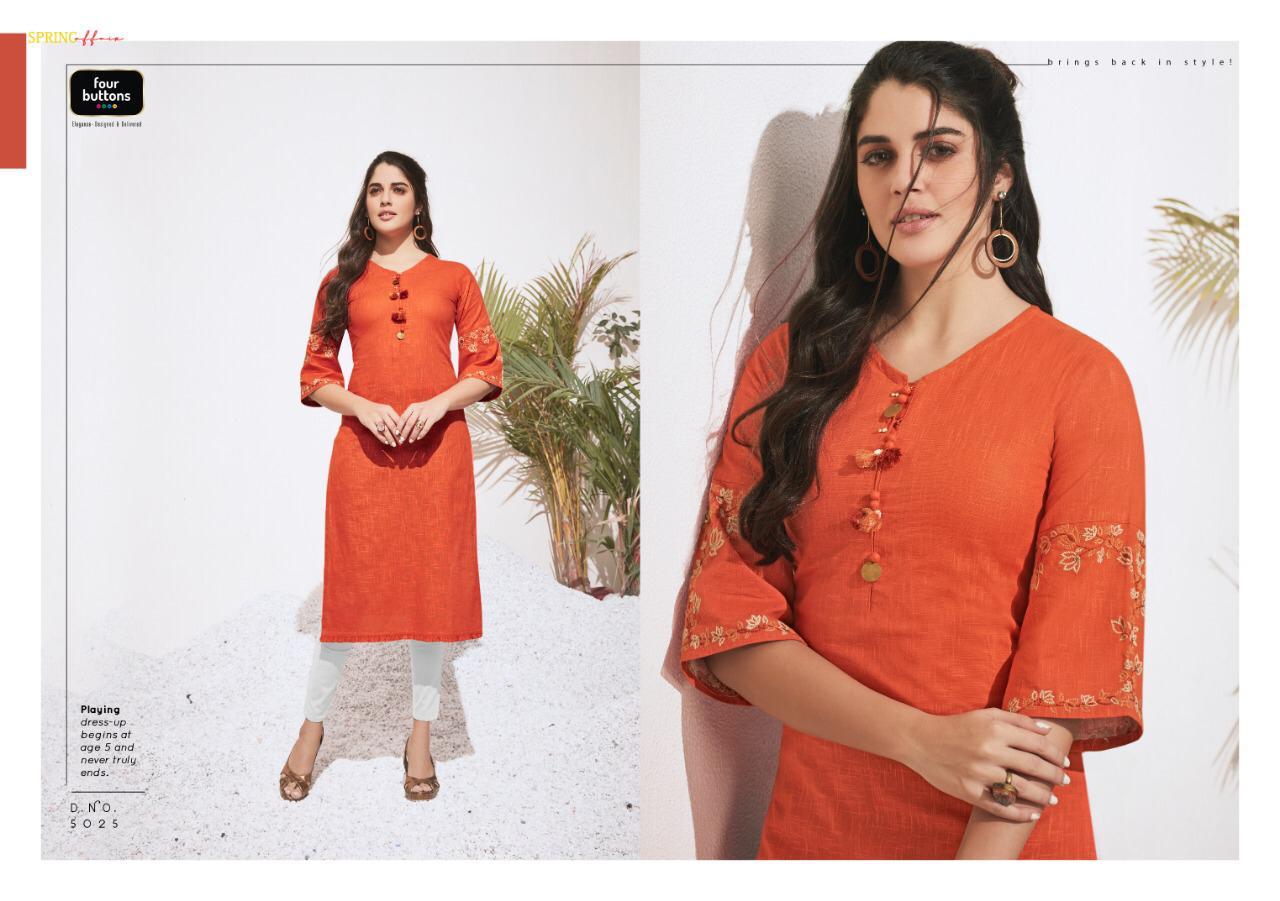 Colors 3 By Four Buttons Cotton Designer Kurtis Wholesale Supplier Gujarat