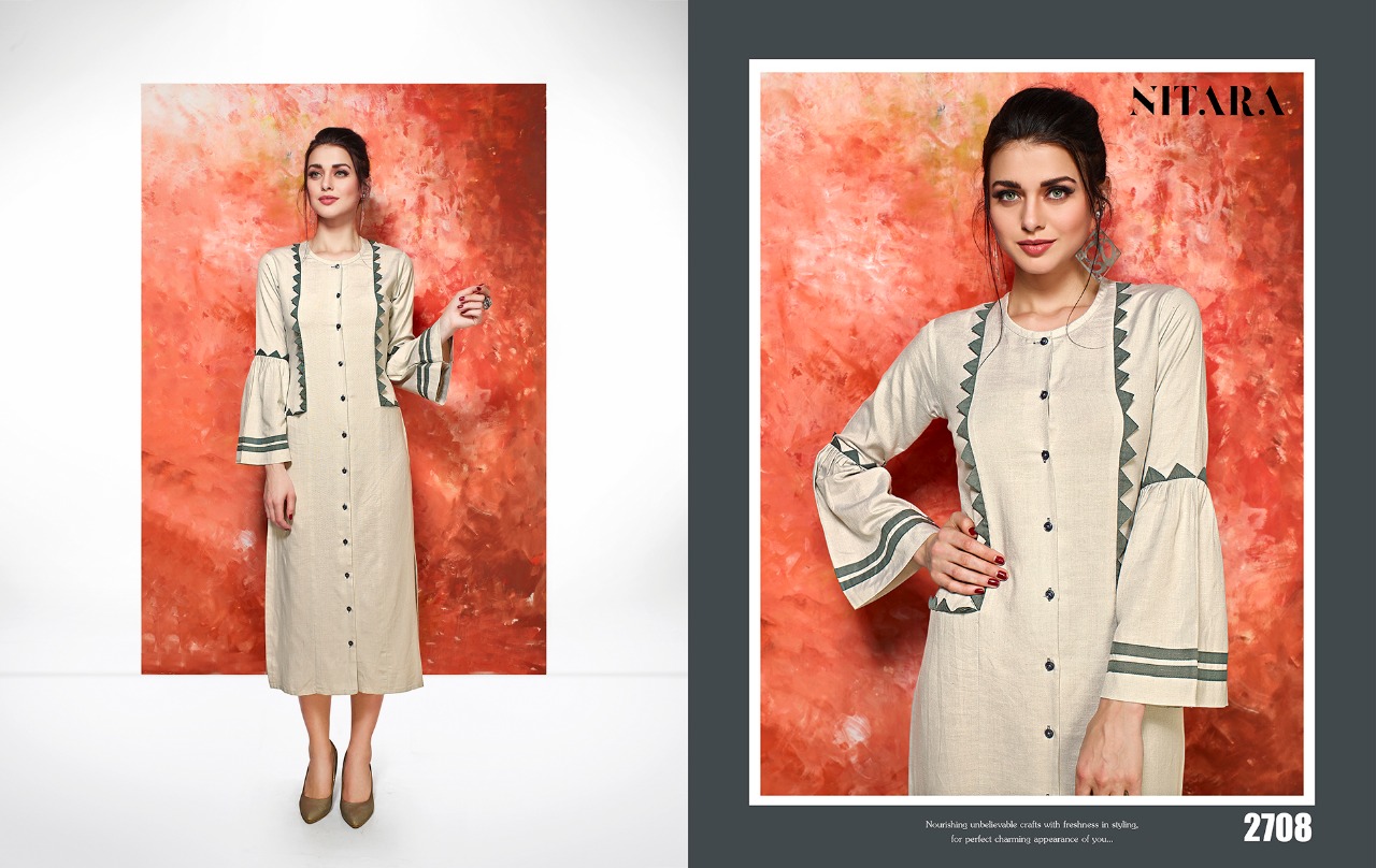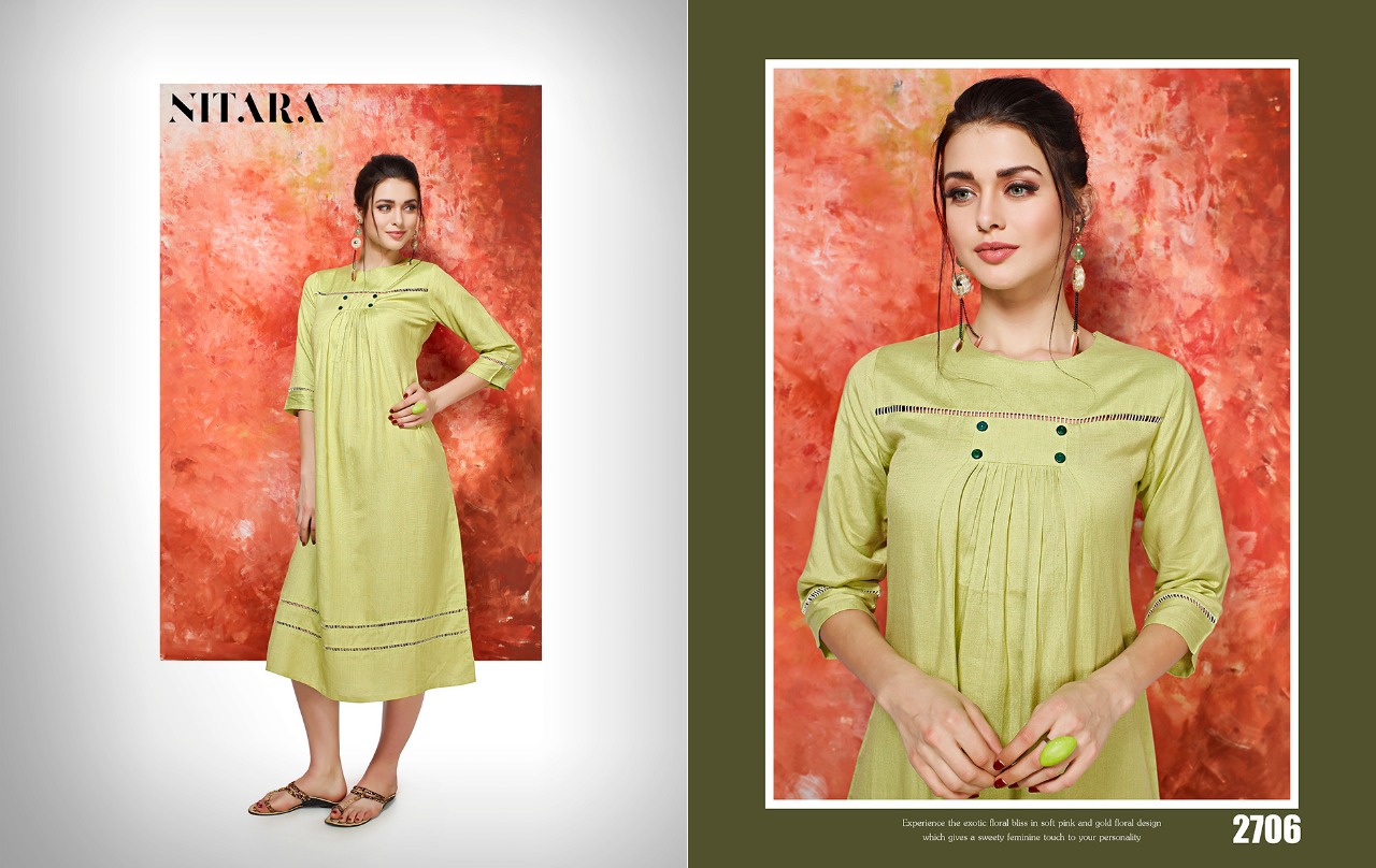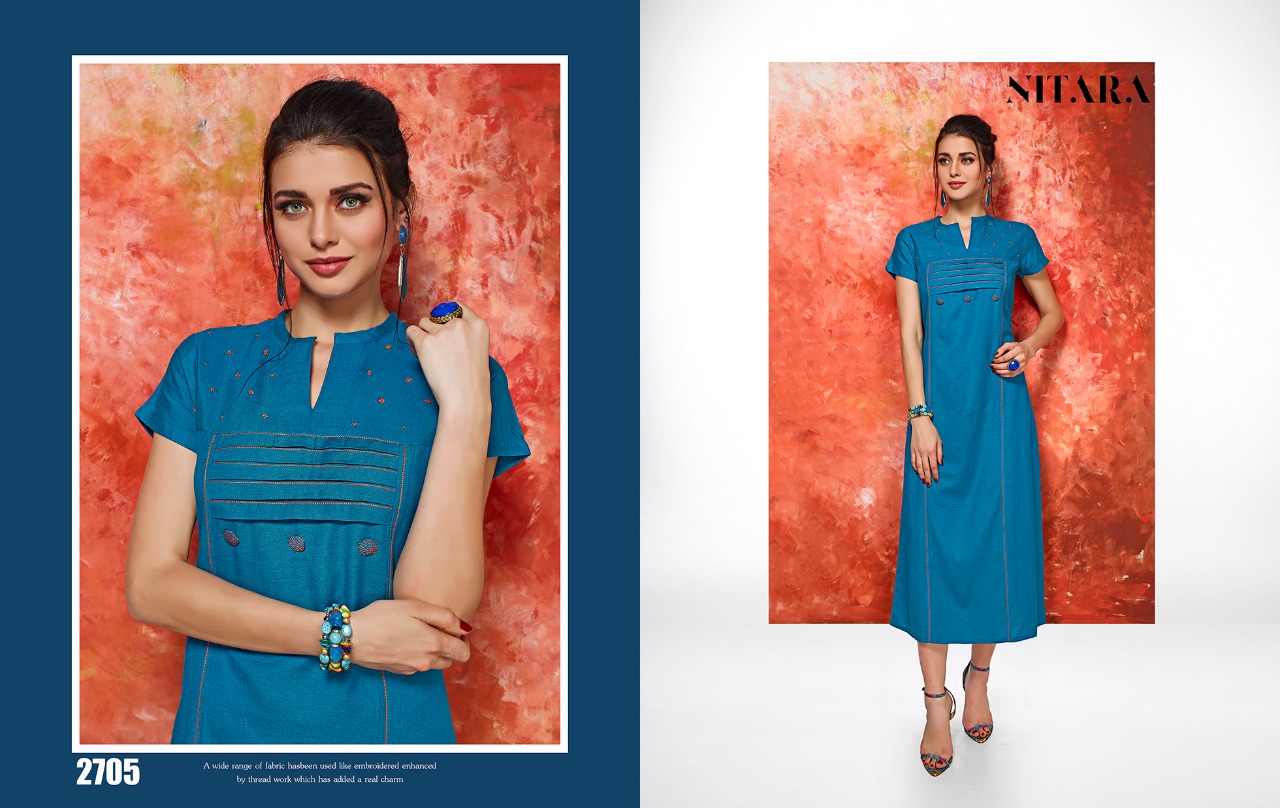 Buy Online Colors By Nitara 2701 Series Cotton Linen Kurti Catlog Wholesale Dealer And Supplier Surat 8 Pcs of Full Catalogue at Wholesale Price. Looking for Colors By Nitara 2701 Series Cotton Linen Kurti Catlog Wholesale Dealer And Supplier Surat Full Catalouge at Best Price? Buy Now Colors By Nitara 2701 Series Cotton Linen Kurti Catlog Wholesale Dealer And Supplier Surat at Wholesale Rate of Rs 4968 with Total 8 Pcs from authroized dealer and supplier of NITARA Brand. Cost of Each piece is just only Rs 621 which is very low and affordable price to resale the product in your retail store ,This is Surat based Wholesale Supplier & Dealer of NITARA Brand. Click on Brand name to Know more about NITARA Brand's products.Call or Whatsapp on 9898838984 for booking or enquiry