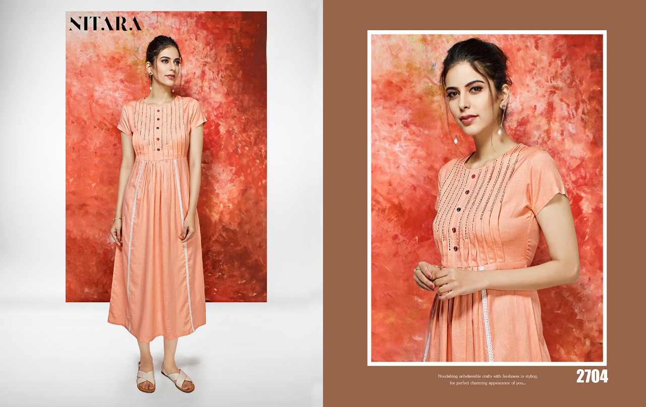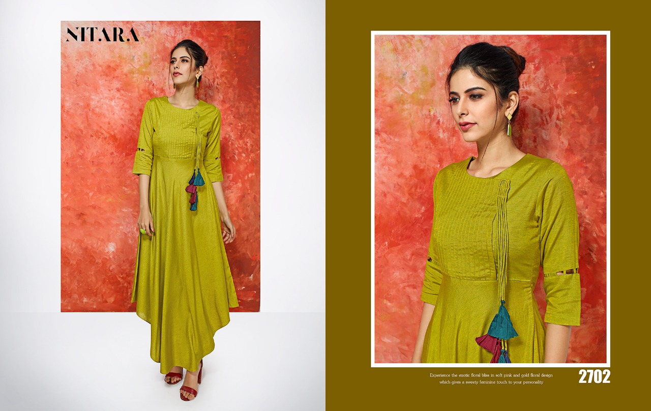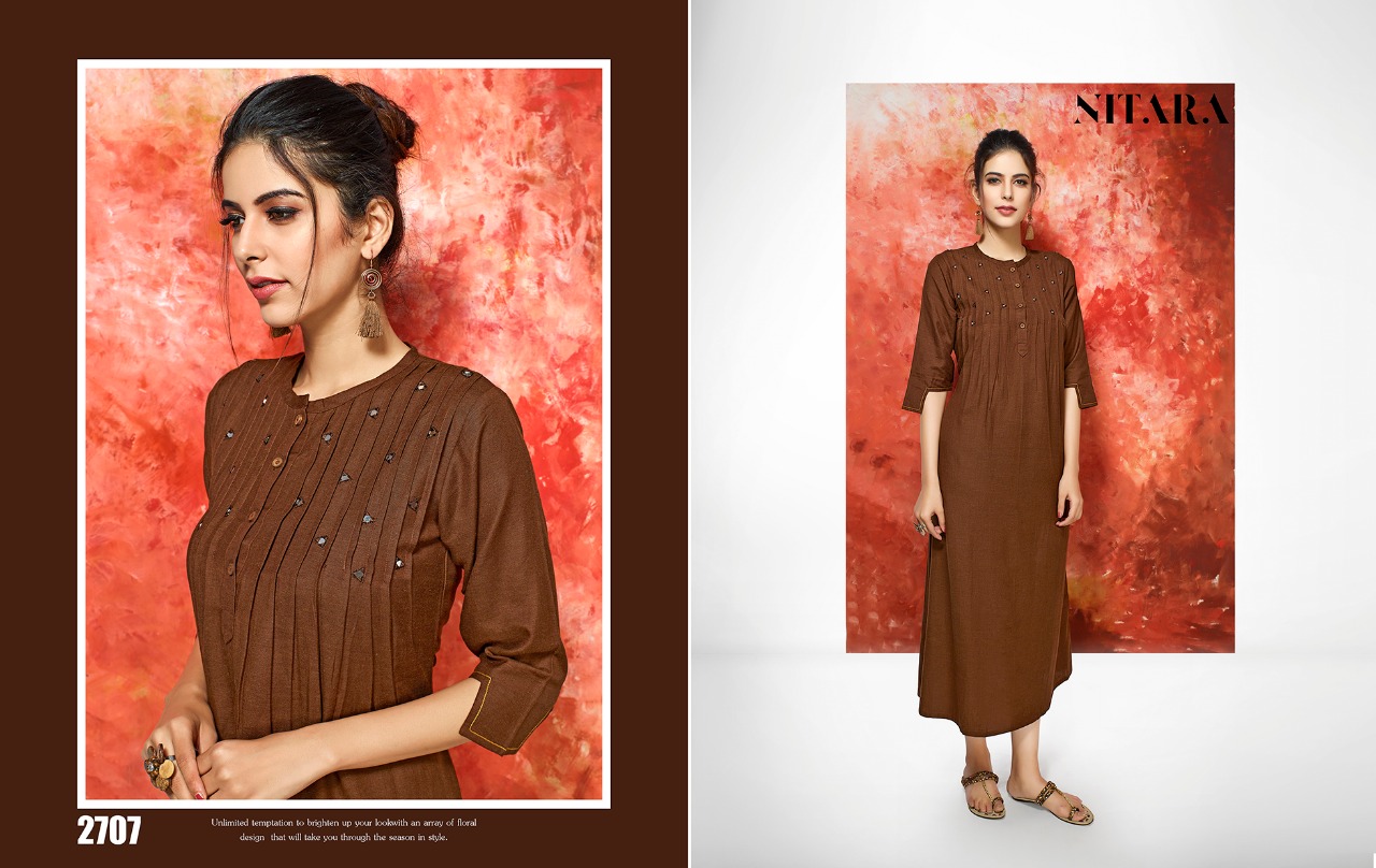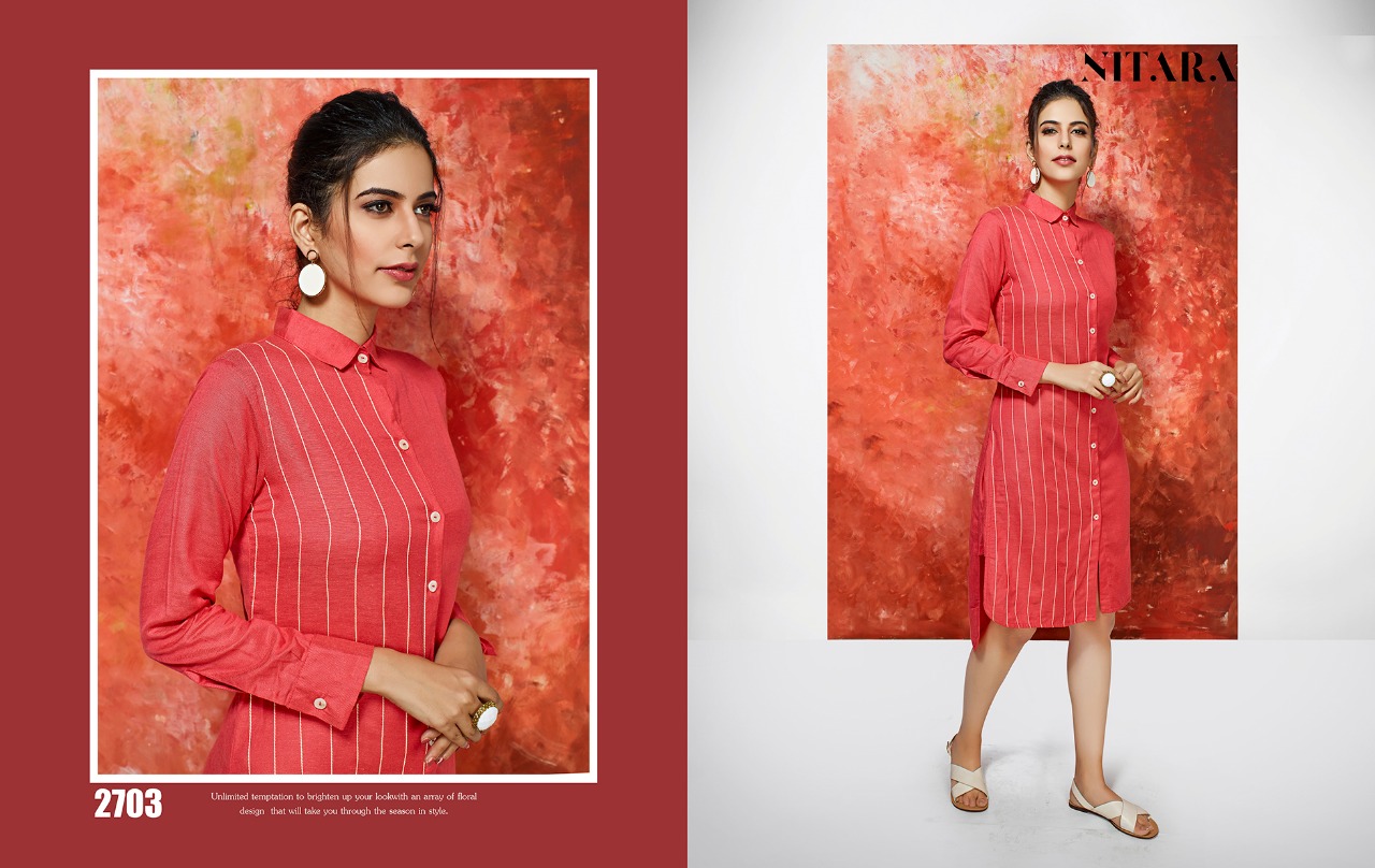 Buy Online Colors By Nitara 2701 Series Cotton Linen Kurti Catlog Wholesale Dealer And Supplier Surat 8 Pcs of Full Catalogue at Wholesale Price. Looking for Colors By Nitara 2701 Series Cotton Linen Kurti Catlog Wholesale Dealer And Supplier Surat Full Catalouge at Best Price? Buy Now Colors By Nitara 2701 Series Cotton Linen Kurti Catlog Wholesale Dealer And Supplier Surat at Wholesale Rate of Rs 4968 with Total 8 Pcs from authroized dealer and supplier of NITARA Brand. Cost of Each piece is just only Rs 621 which is very low and affordable price to resale the product in your retail store ,This is Surat based Wholesale Supplier & Dealer of NITARA Brand. Click on Brand name to Know more about NITARA Brand's products.Call or Whatsapp on 9898838984 for booking or enquiry