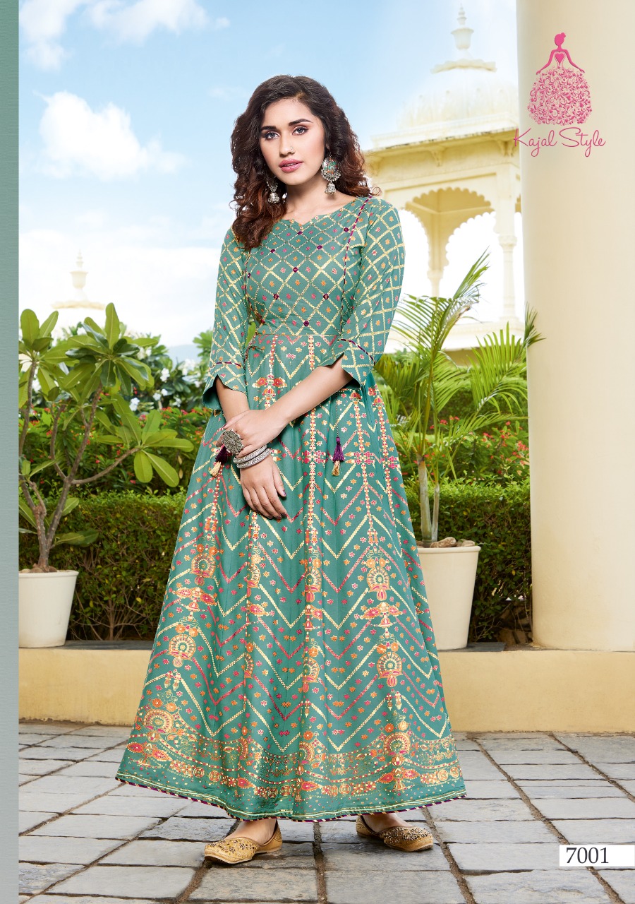 ? ? ? *KAJAL STYLE* Catalogue name: ? *_Fashion Colorbar Vol.6_*? ?Details: ?Pattern :- *Designer Gown Style*? *?Fabrics* *?? Heavy Reyon* *?? Fancy Embroidery work* *?? Foil Prints* ?Size - *S M L XL 2XL 3XL 4XL* ? Length Â?> *52+* ?Designs - *10pcs* ??????hurryyy uppp....Book your order now...????????? Regards, *Varniraj Industries Pvt Ltd* |