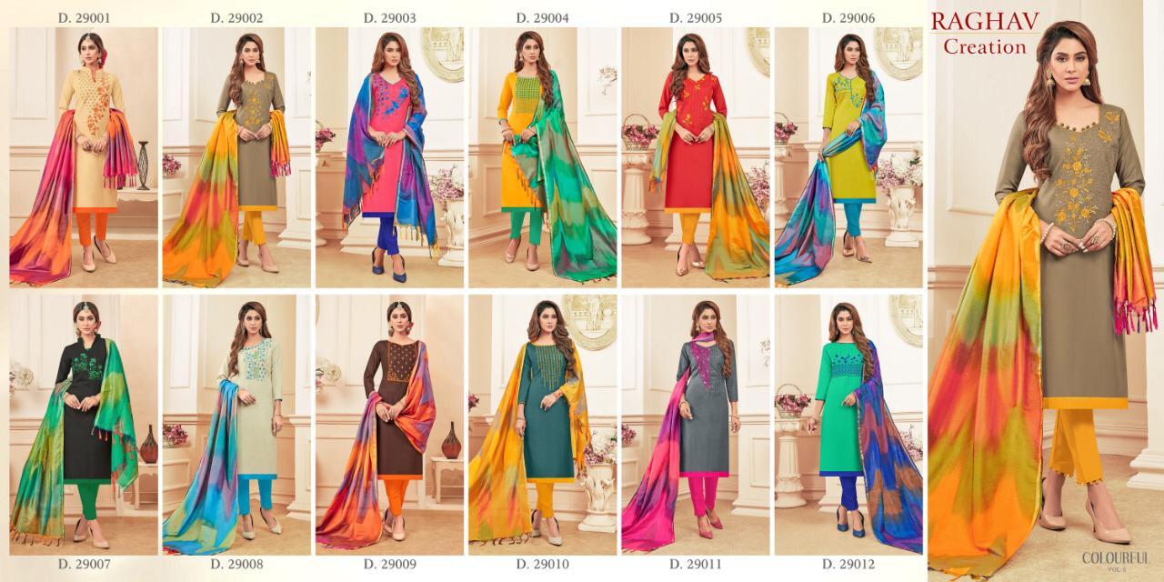 Buy Online Colourful 3 By Raghav Cotton Dress Material Wholesale Supplier Gujarat 12 Pcs of Full Catalogue at Wholesale Price. Looking for Colourful 3 By Raghav Cotton Dress Material Wholesale Supplier Gujarat Full Catalouge at Best Price? Buy Now Colourful 3 By Raghav Cotton Dress Material Wholesale Supplier Gujarat at Wholesale Rate of Rs 6420 with Total 12 Pcs from authroized dealer and supplier of Brand. Cost of Each piece is just only Rs 535 which is very low and affordable price to resale the product in your retail store ,This is Surat based Wholesale Supplier & Dealer of Brand. Click on Brand name to Know more about Brand's products.Call or Whatsapp on 9898838984 for booking or enquiry