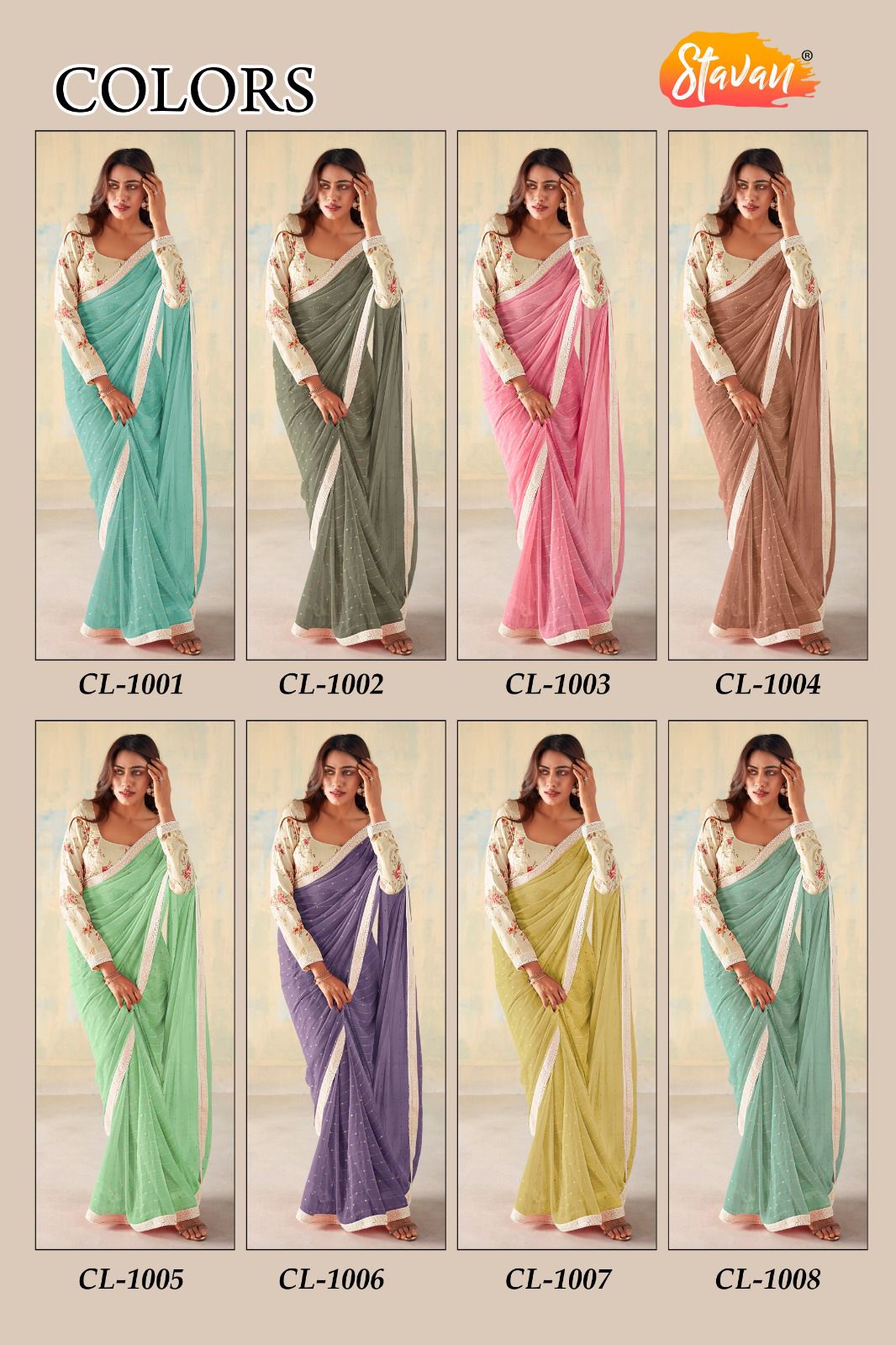 Buy Online Colours Stavan Fancy Regular Sarees 8 Pcs of Full Catalogue at Wholesale Price. Looking for Colours Stavan Fancy Regular Sarees Full Catalouge at Best Price? Buy Now Colours Stavan Fancy Regular Sarees at Wholesale Rate of Rs 6120 with Total 8 Pcs from authroized dealer and supplier of Brand. Cost of Each piece is just only Rs 765 which is very low and affordable price to resale the product in your retail store ,This is Surat based Wholesale Supplier & Dealer of Brand. Click on Brand name to Know more about Brand's products.Call or Whatsapp on 9898838984 for booking or enquiry