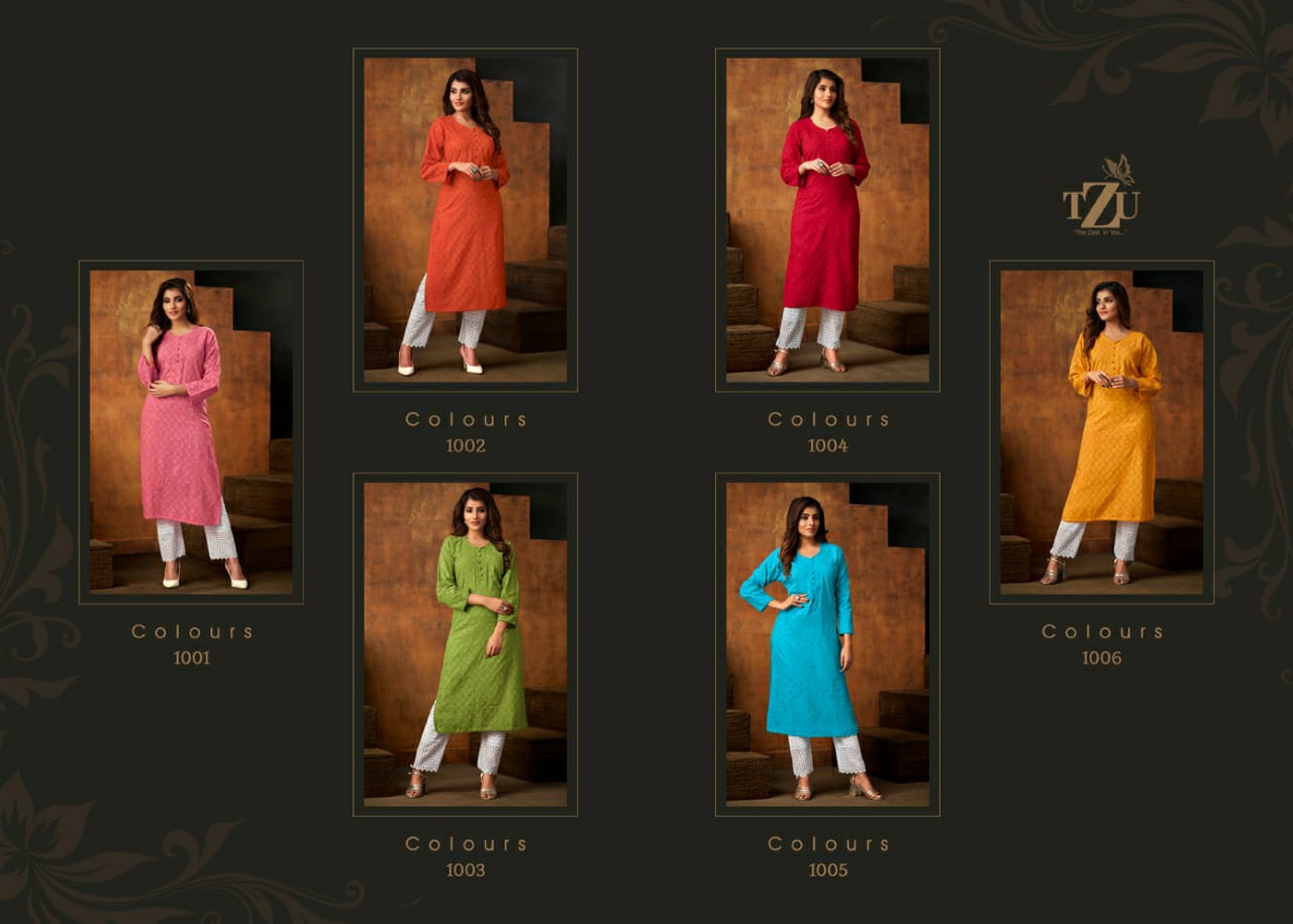 Buy Online Colours Top With Plazzo By Tzu Dealer From India 6 Pcs of Full Catalogue at Wholesale Price. Looking for Colours Top With Plazzo By Tzu Dealer From India Full Catalouge at Best Price? Buy Now Colours Top With Plazzo By Tzu Dealer From India at Wholesale Rate of Rs 4770 with Total 6 Pcs from authroized dealer and supplier of Brand. Cost of Each piece is just only Rs 795 which is very low and affordable price to resale the product in your retail store ,This is Surat based Wholesale Supplier & Dealer of Brand. Click on Brand name to Know more about Brand's products.Call or Whatsapp on 9898838984 for booking or enquiry