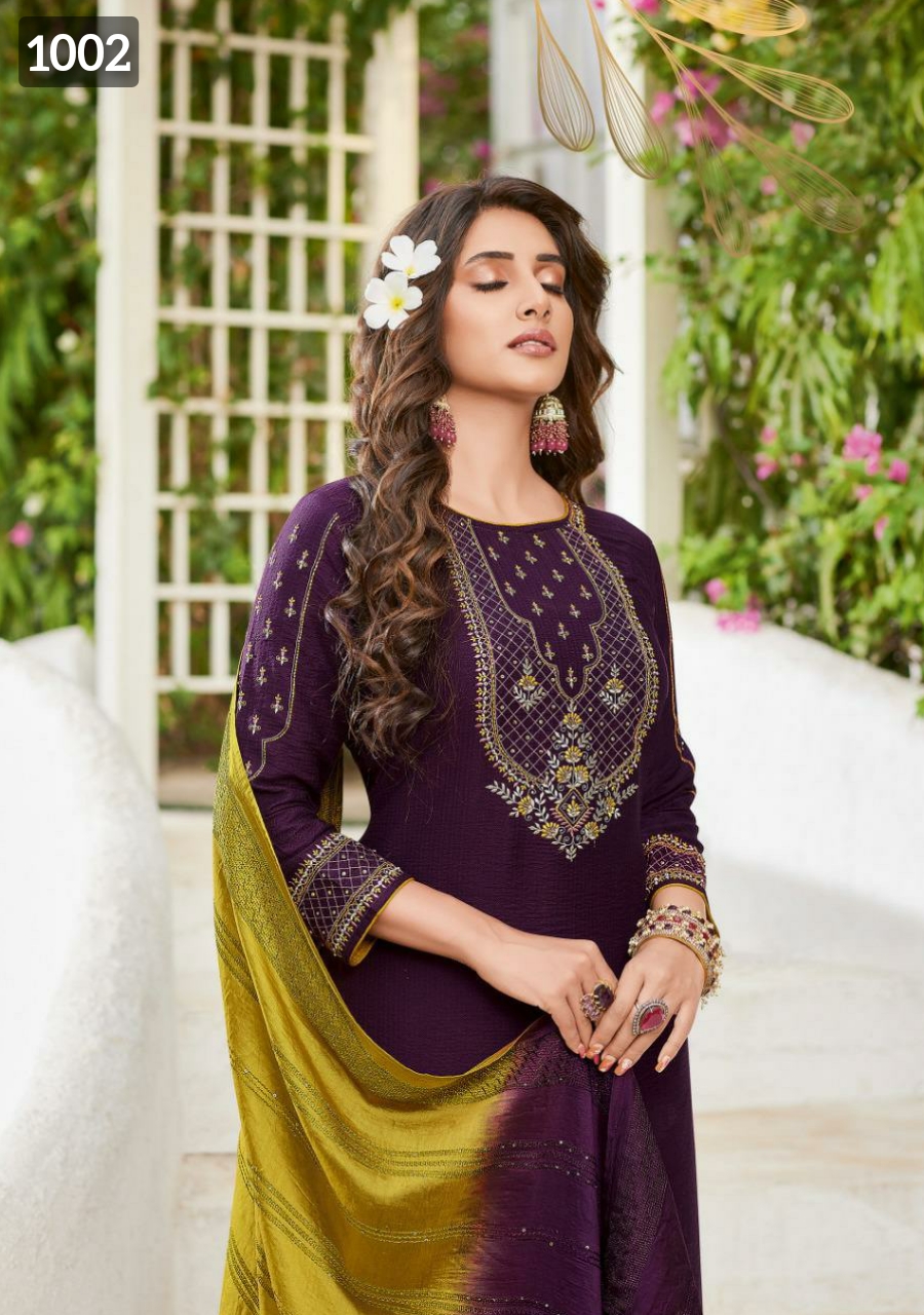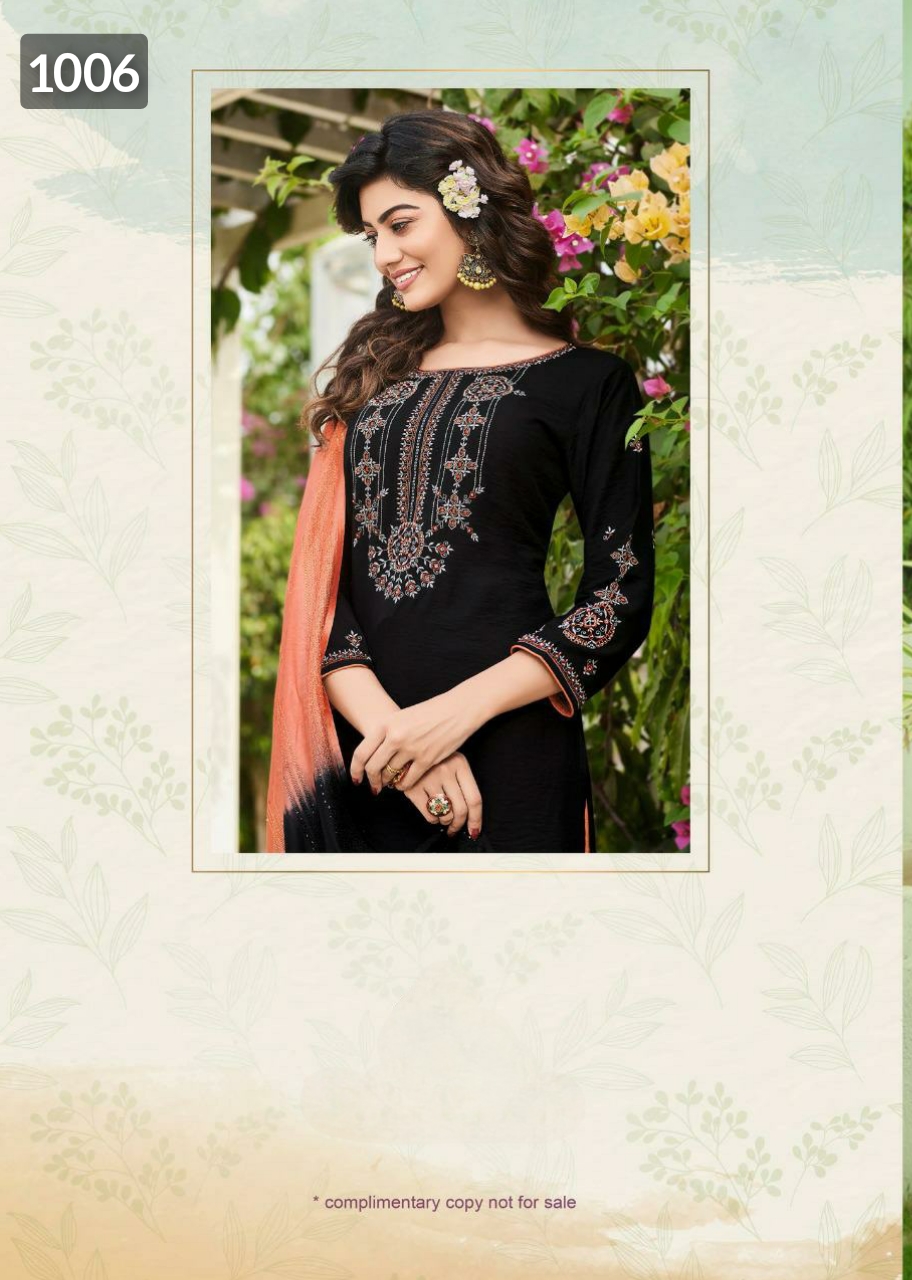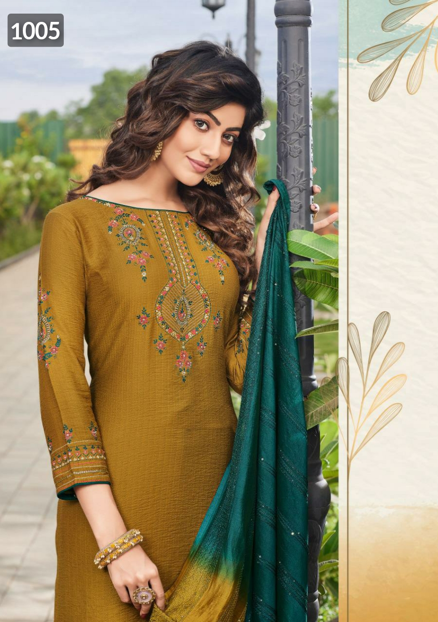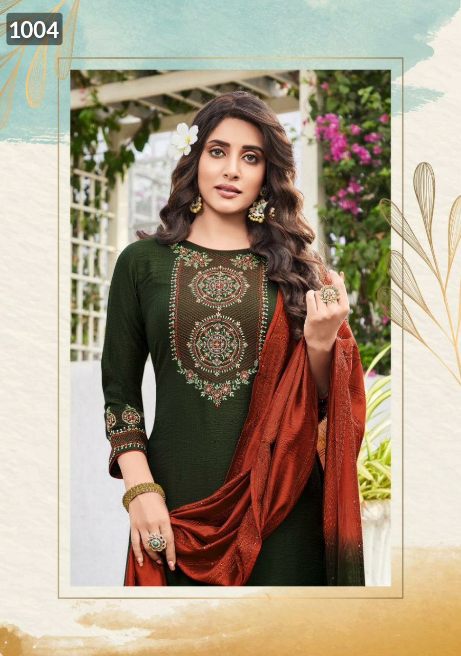 ? *Ladies Flavour*? Brand Name : *Ladies Flavour* Catalog : *Copper Stone Vol 11* Design : *6* Fabric :- Top :- *Pure Viscose With Embroidery With Heavy Khatli work* *Bottom* :- *Cotton Slub Lycra With Embtoidery Work* *Dupptta* :- *Pure Naylon Viscose With Weaving Sequance* *Size* : *M(38), L(40), XL(42), 2XL(44), 3XL(46)* * Rate:- 1399+ Shipping* *Dispatch After 5-6 Days* 100+single |