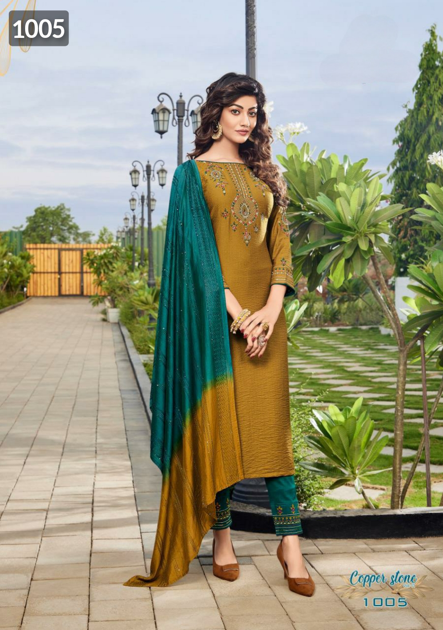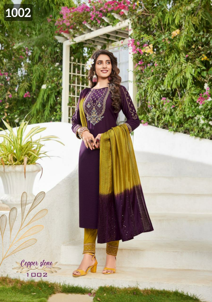 Buy Online Copper Stone Vol 11 By Ladies Flavour Top Bottom With Dupatta Single And Set Stockiest And Supplier From Surat 6 Pcs of Full Catalogue at Wholesale Price. Looking for Copper Stone Vol 11 By Ladies Flavour Top Bottom With Dupatta Single And Set Stockiest And Supplier From Surat Full Catalouge at Best Price? Buy Now Copper Stone Vol 11 By Ladies Flavour Top Bottom With Dupatta Single And Set Stockiest And Supplier From Surat at Wholesale Rate of Rs 8394 with Total 6 Pcs from authroized dealer and supplier of Ladies Flavour Brand. Cost of Each piece is just only Rs 1399 which is very low and affordable price to resale the product in your retail store ,This is Surat based Wholesale Supplier & Dealer of Ladies Flavour Brand. Click on Brand name to Know more about Ladies Flavour Brand's products.Call or Whatsapp on 9898838984 for booking or enquiry