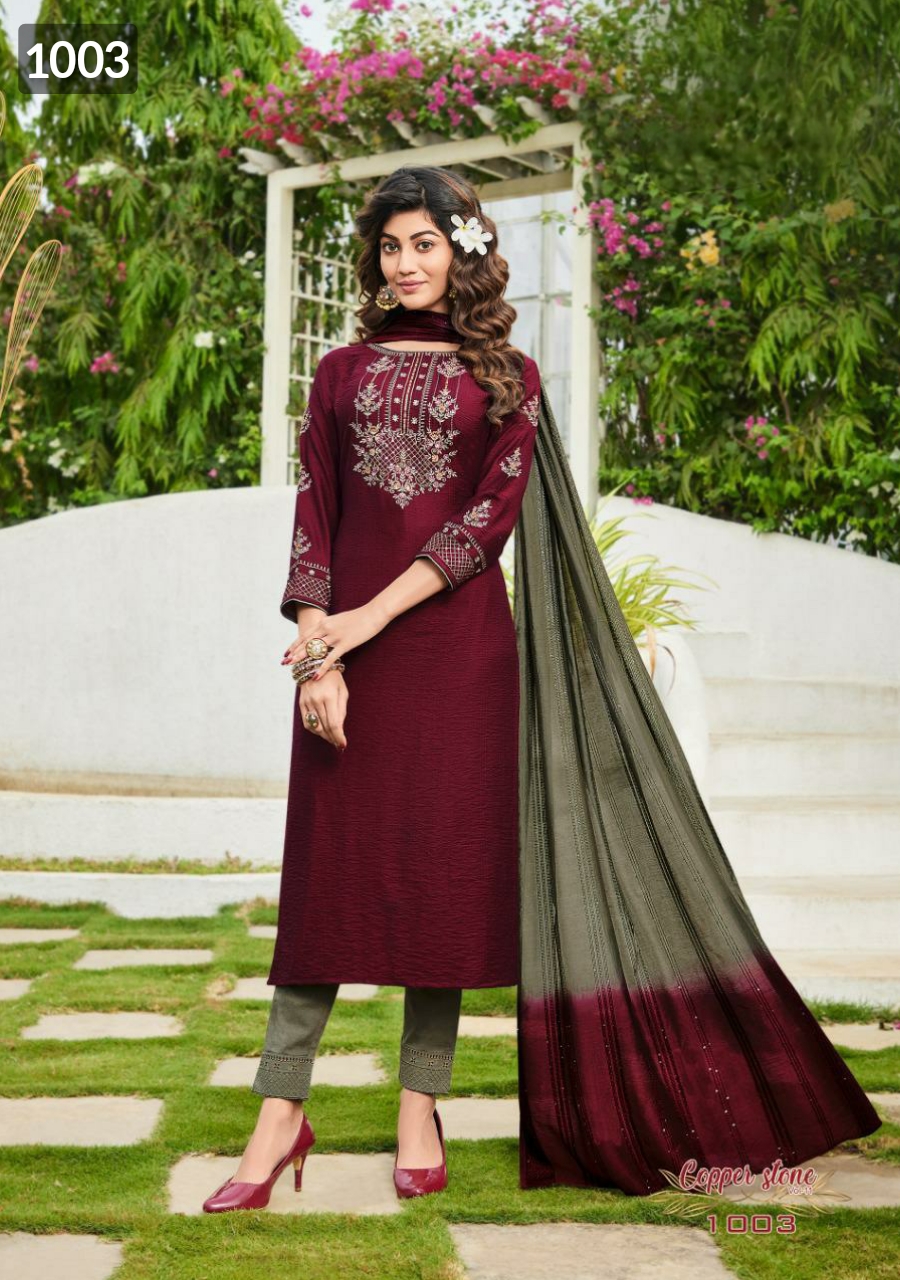 Copper Stone Vol 11 By Ladies Flavour Top Bottom With Dupatta Single And Set Stockiest And Supplier From Surat