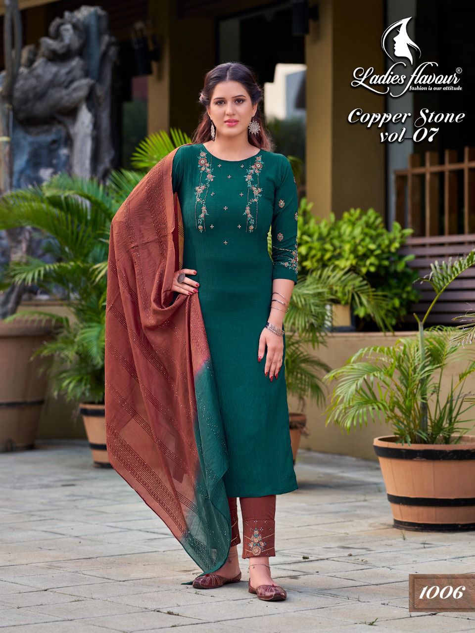 Buy Online Copper Stone Vol 7 By Ladies Flavour Wholesaler Supplier From Surat 6 Pcs of Full Catalogue at Wholesale Price. Looking for Copper Stone Vol 7 By Ladies Flavour Wholesaler Supplier From Surat Full Catalouge at Best Price? Buy Now Copper Stone Vol 7 By Ladies Flavour Wholesaler Supplier From Surat at Wholesale Rate of Rs 7770 with Total 6 Pcs from authroized dealer and supplier of Ladies Flavour Brand. Cost of Each piece is just only Rs 1295 which is very low and affordable price to resale the product in your retail store ,This is Surat based Wholesale Supplier & Dealer of Ladies Flavour Brand. Click on Brand name to Know more about Ladies Flavour Brand's products.Call or Whatsapp on 9898838984 for booking or enquiry