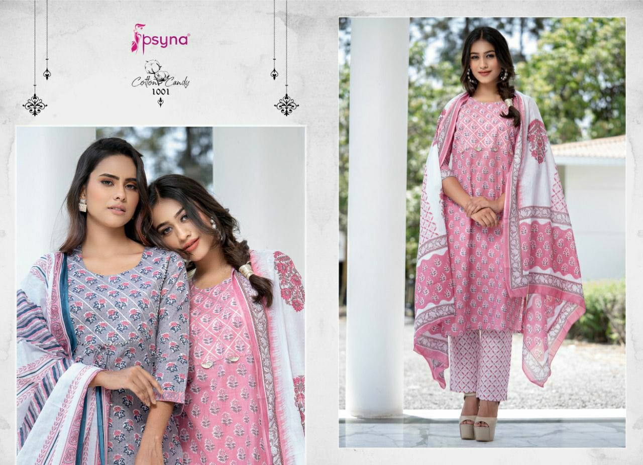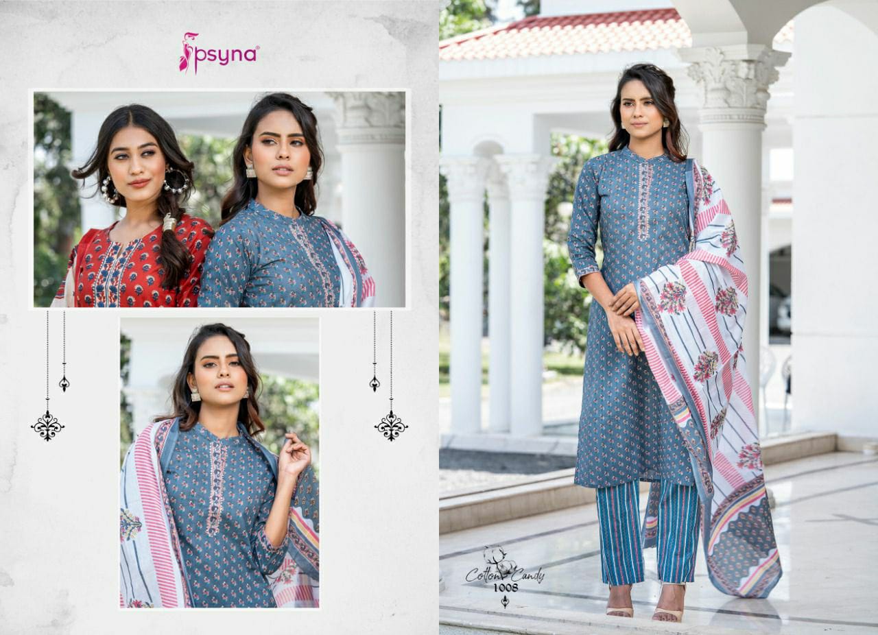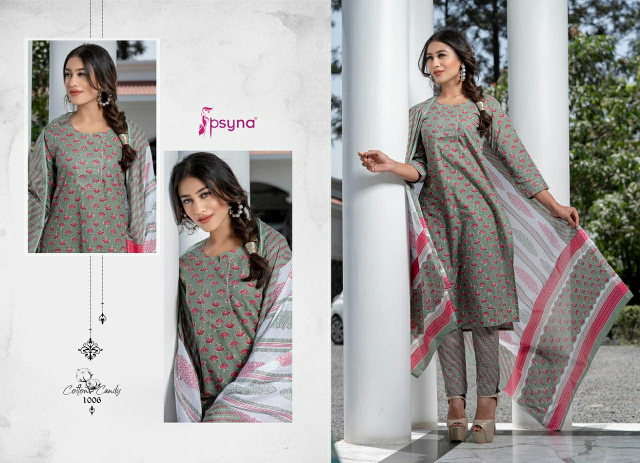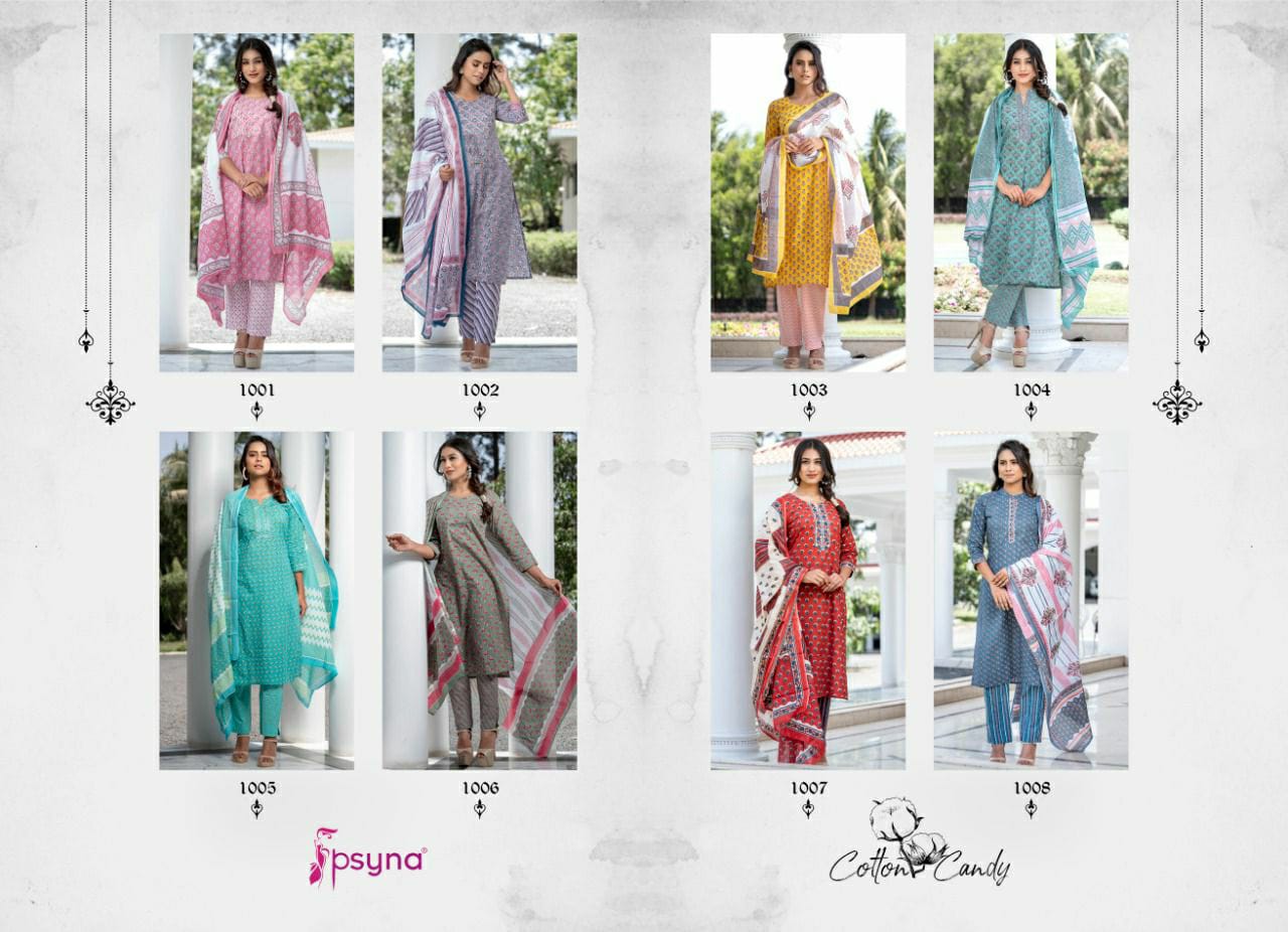 Buy Online Cotton Candy Top Bottom With Dupatta By Psyna Dealer And Exporter Surat Gujarat 8 Pcs of Full Catalogue at Wholesale Price. Looking for Cotton Candy Top Bottom With Dupatta By Psyna Dealer And Exporter Surat Gujarat Full Catalouge at Best Price? Buy Now Cotton Candy Top Bottom With Dupatta By Psyna Dealer And Exporter Surat Gujarat at Wholesale Rate of Rs 7192 with Total 8 Pcs from authroized dealer and supplier of PSYNA Brand. Cost of Each piece is just only Rs 899 which is very low and affordable price to resale the product in your retail store ,This is Surat based Wholesale Supplier & Dealer of PSYNA Brand. Click on Brand name to Know more about PSYNA Brand's products.Call or Whatsapp on 9898838984 for booking or enquiry