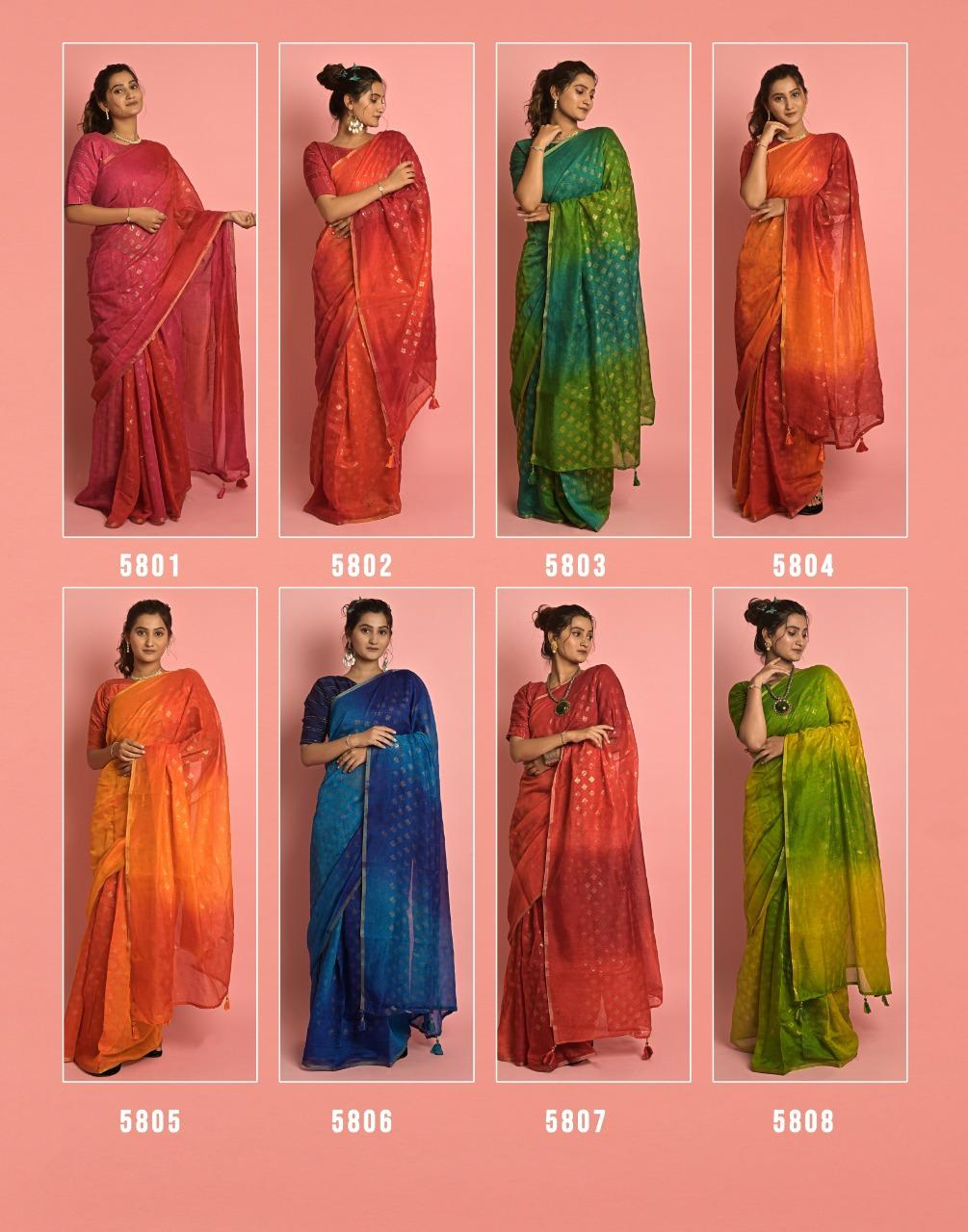 Buy Online Cotton Foil Series 5801 To 5808 By Ashima Designer Saree Single And Set Stockiest And Supplier From Surat 8 Pcs of Full Catalogue at Wholesale Price. Looking for Cotton Foil Series 5801 To 5808 By Ashima Designer Saree Single And Set Stockiest And Supplier From Surat Full Catalouge at Best Price? Buy Now Cotton Foil Series 5801 To 5808 By Ashima Designer Saree Single And Set Stockiest And Supplier From Surat at Wholesale Rate of Rs 5200 with Total 8 Pcs from authroized dealer and supplier of Brand. Cost of Each piece is just only Rs 650 which is very low and affordable price to resale the product in your retail store ,This is Surat based Wholesale Supplier & Dealer of Brand. Click on Brand name to Know more about Brand's products.Call or Whatsapp on 9898838984 for booking or enquiry