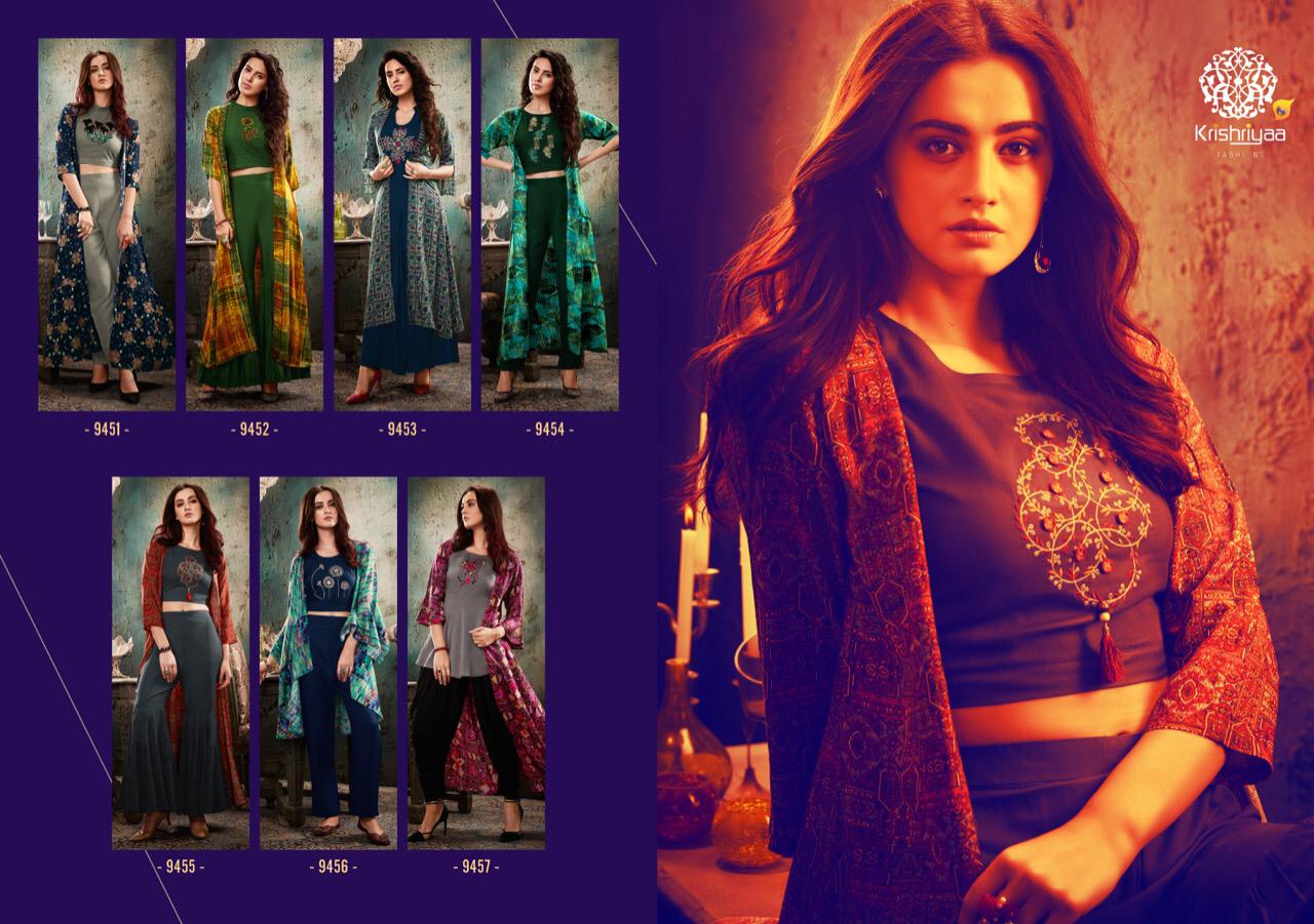 Buy Online Cover Story By Krishriyaa 9451 Series Fancy Reyon Kurti Collection Wholesaler Surat 7 Pcs of Full Catalogue at Wholesale Price. Looking for Cover Story By Krishriyaa 9451 Series Fancy Reyon Kurti Collection Wholesaler Surat Full Catalouge at Best Price? Buy Now Cover Story By Krishriyaa 9451 Series Fancy Reyon Kurti Collection Wholesaler Surat at Wholesale Rate of Rs 6678 with Total 7 Pcs from authroized dealer and supplier of KRISHRYAA Brand. Cost of Each piece is just only Rs 954 which is very low and affordable price to resale the product in your retail store ,This is Surat based Wholesale Supplier & Dealer of KRISHRYAA Brand. Click on Brand name to Know more about KRISHRYAA Brand's products.Call or Whatsapp on 9898838984 for booking or enquiry
