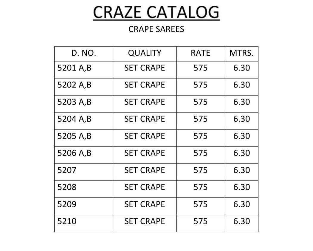 Buy Online Craze By Sushma Crape Printed Sarees Wholesale Supplier Surat 16 Pcs of Full Catalogue at Wholesale Price. Looking for Craze By Sushma Crape Printed Sarees Wholesale Supplier Surat Full Catalouge at Best Price? Buy Now Craze By Sushma Crape Printed Sarees Wholesale Supplier Surat at Wholesale Rate of Rs 9200 with Total 16 Pcs from authroized dealer and supplier of SUSHMA Brand. Cost of Each piece is just only Rs 575 which is very low and affordable price to resale the product in your retail store ,This is Surat based Wholesale Supplier & Dealer of SUSHMA Brand. Click on Brand name to Know more about SUSHMA Brand's products.Call or Whatsapp on 9898838984 for booking or enquiry