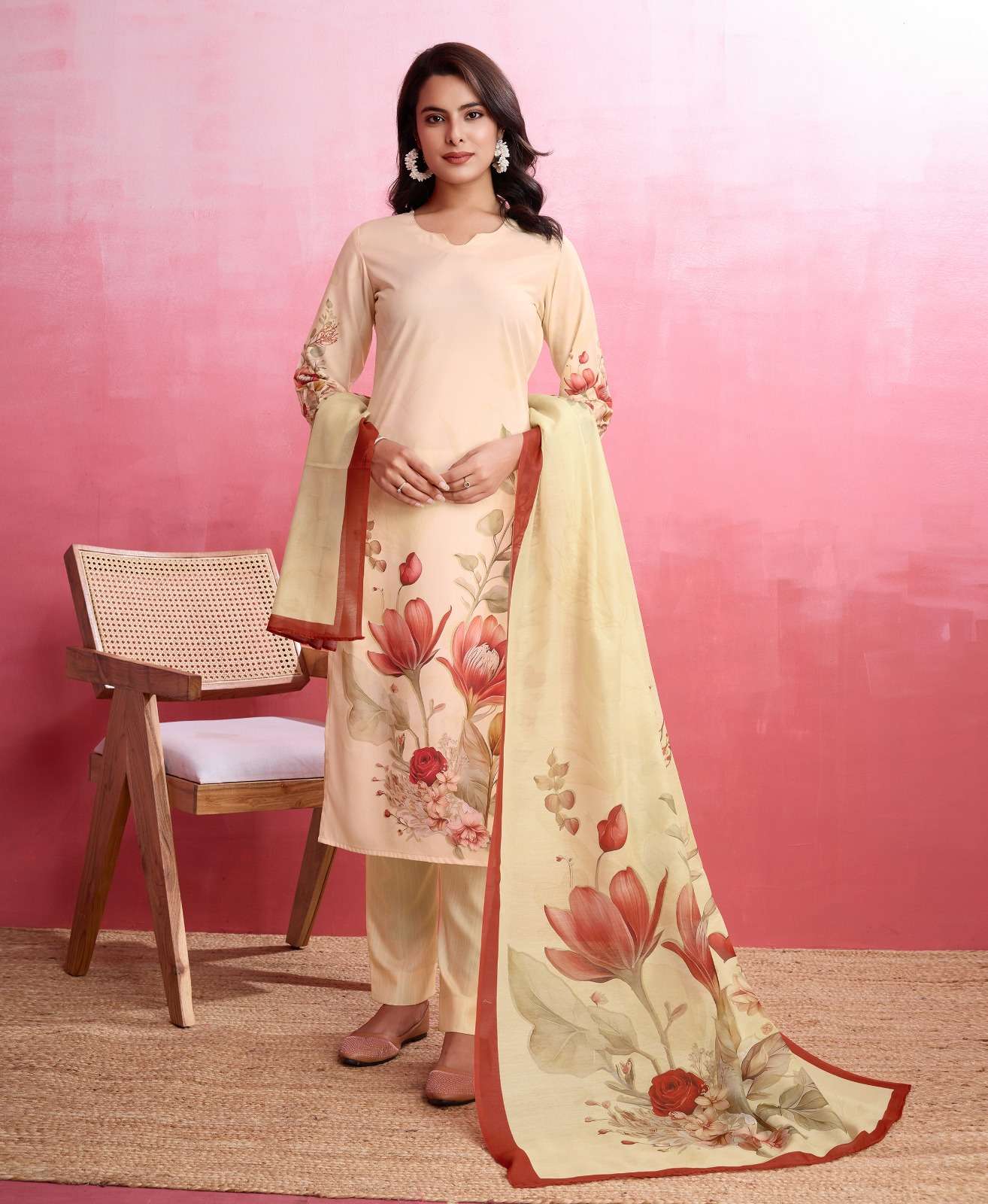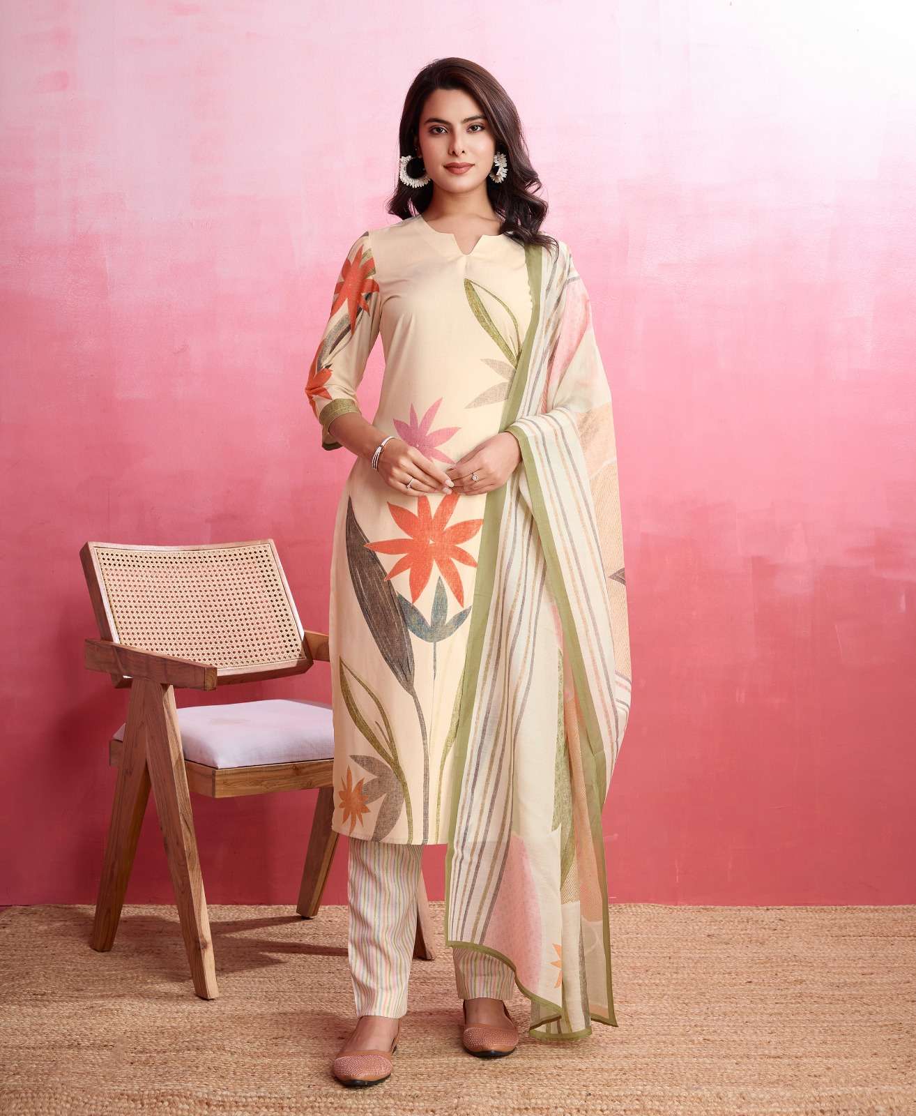 Top: Crepe Floral Calf Lenght Kurta Bottom: American Crepe Printed Pant Dupatta: Muslin Floral Digital Printed