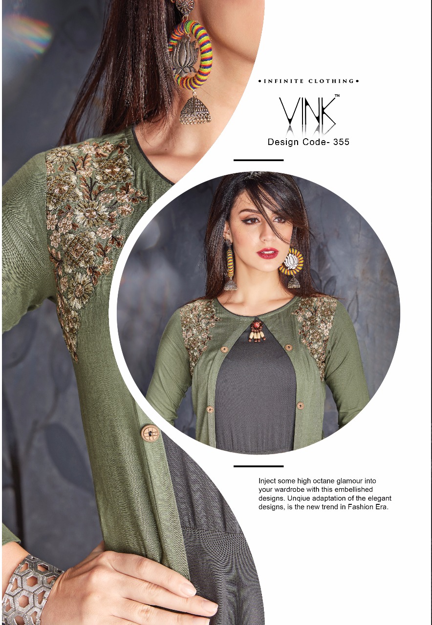 Buy Online Crescent By Vink 351 Series Fancy Deaigner Kurti Catlog Wholesale Supplier Surat 8 Pcs of Full Catalogue at Wholesale Price. Looking for Crescent By Vink 351 Series Fancy Deaigner Kurti Catlog Wholesale Supplier Surat Full Catalouge at Best Price? Buy Now Crescent By Vink 351 Series Fancy Deaigner Kurti Catlog Wholesale Supplier Surat at Wholesale Rate of Rs 7960 with Total 8 Pcs from authroized dealer and supplier of VINK Brand. Cost of Each piece is just only Rs 995 which is very low and affordable price to resale the product in your retail store ,This is Surat based Wholesale Supplier & Dealer of VINK Brand. Click on Brand name to Know more about VINK Brand's products.Call or Whatsapp on 9898838984 for booking or enquiry