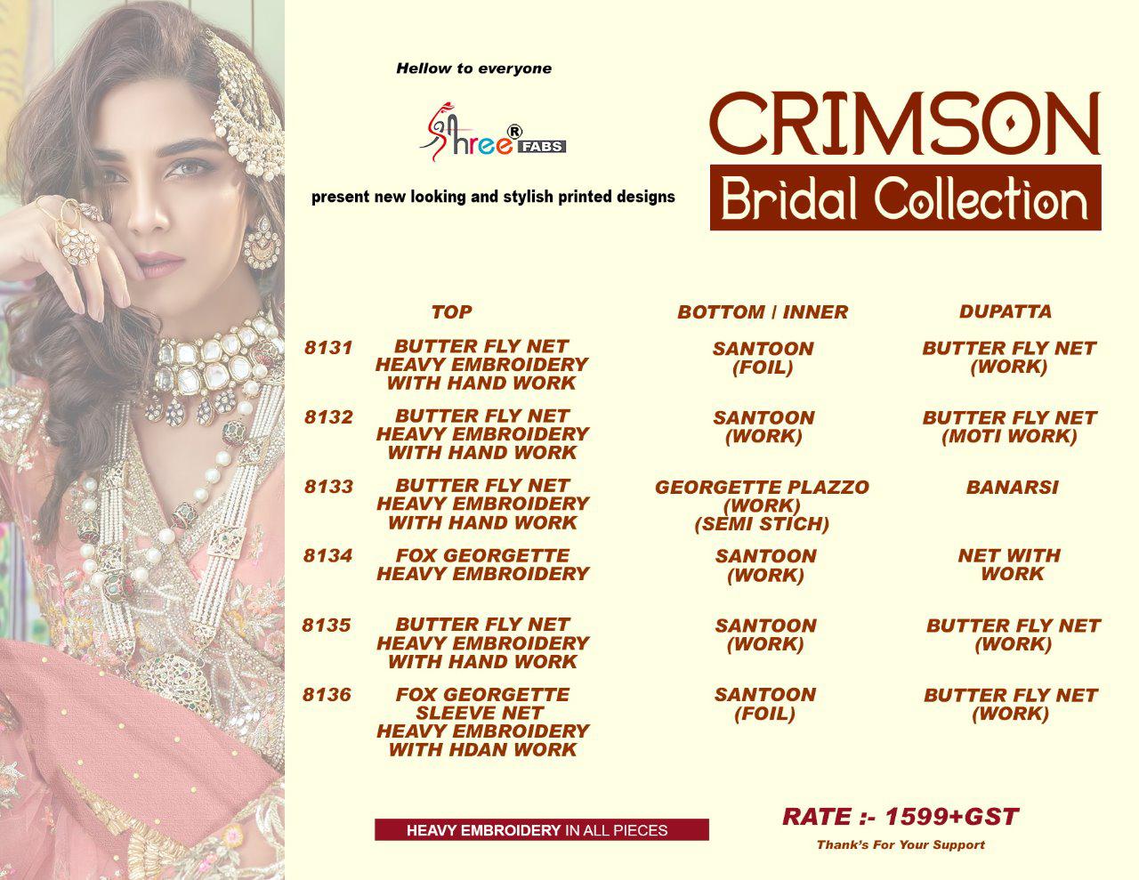 Crimson Bridal Collection By Shree Fabs 8131 Series Deaigner Bridal Party Wear Suit Collection Wholesaler Surat