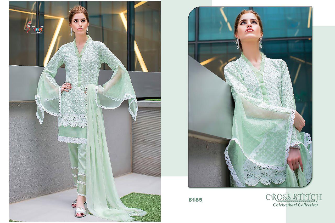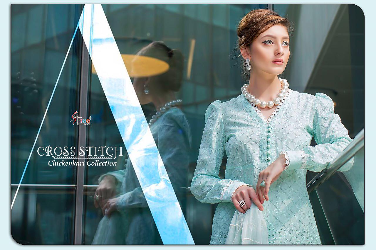 Cross Stitch Chickenkari Collection By Shree Fabs 8181 Series Fancy Party Wear Pure Cotton Salwar Kameez Catlog Wholesaler Surat