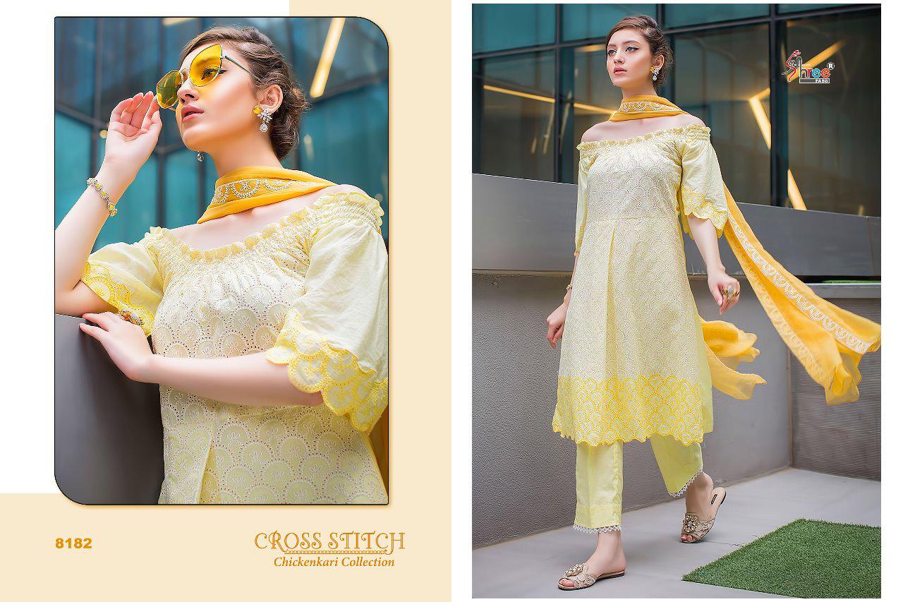 Buy Online Cross Stitch Chickenkari Collection By Shree Fabs 8181 Series Fancy Party Wear Pure Cotton Salwar Kameez Catlog Wholesaler Surat 7 Pcs of Full Catalogue at Wholesale Price. Looking for Cross Stitch Chickenkari Collection By Shree Fabs 8181 Series Fancy Party Wear Pure Cotton Salwar Kameez Catlog Wholesaler Surat Full Catalouge at Best Price? Buy Now Cross Stitch Chickenkari Collection By Shree Fabs 8181 Series Fancy Party Wear Pure Cotton Salwar Kameez Catlog Wholesaler Surat at Wholesale Rate of Rs 6293 with Total 7 Pcs from authroized dealer and supplier of SHREE FABS Brand. Cost of Each piece is just only Rs 899 which is very low and affordable price to resale the product in your retail store ,This is Surat based Wholesale Supplier & Dealer of SHREE FABS Brand. Click on Brand name to Know more about SHREE FABS Brand's products.Call or Whatsapp on 9898838984 for booking or enquiry