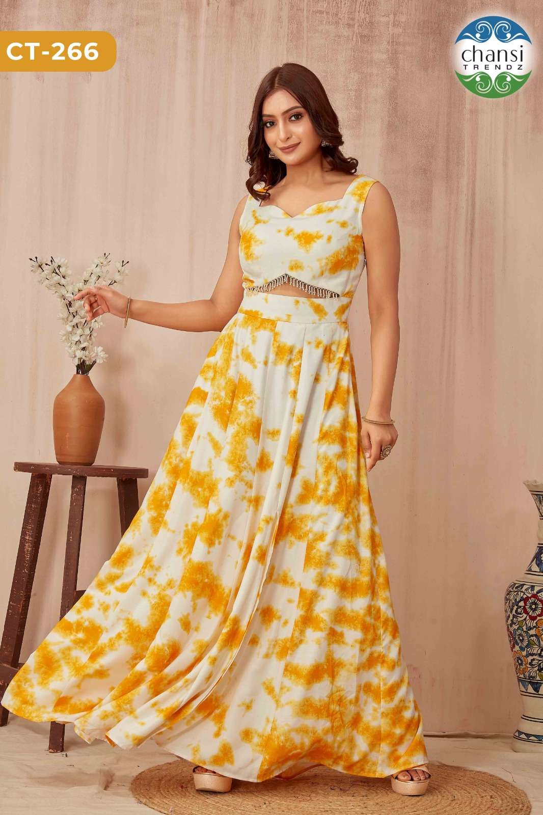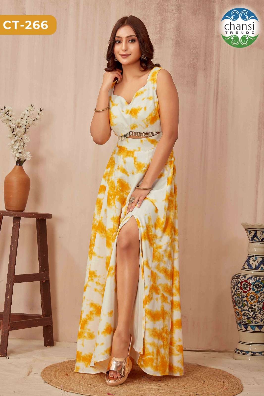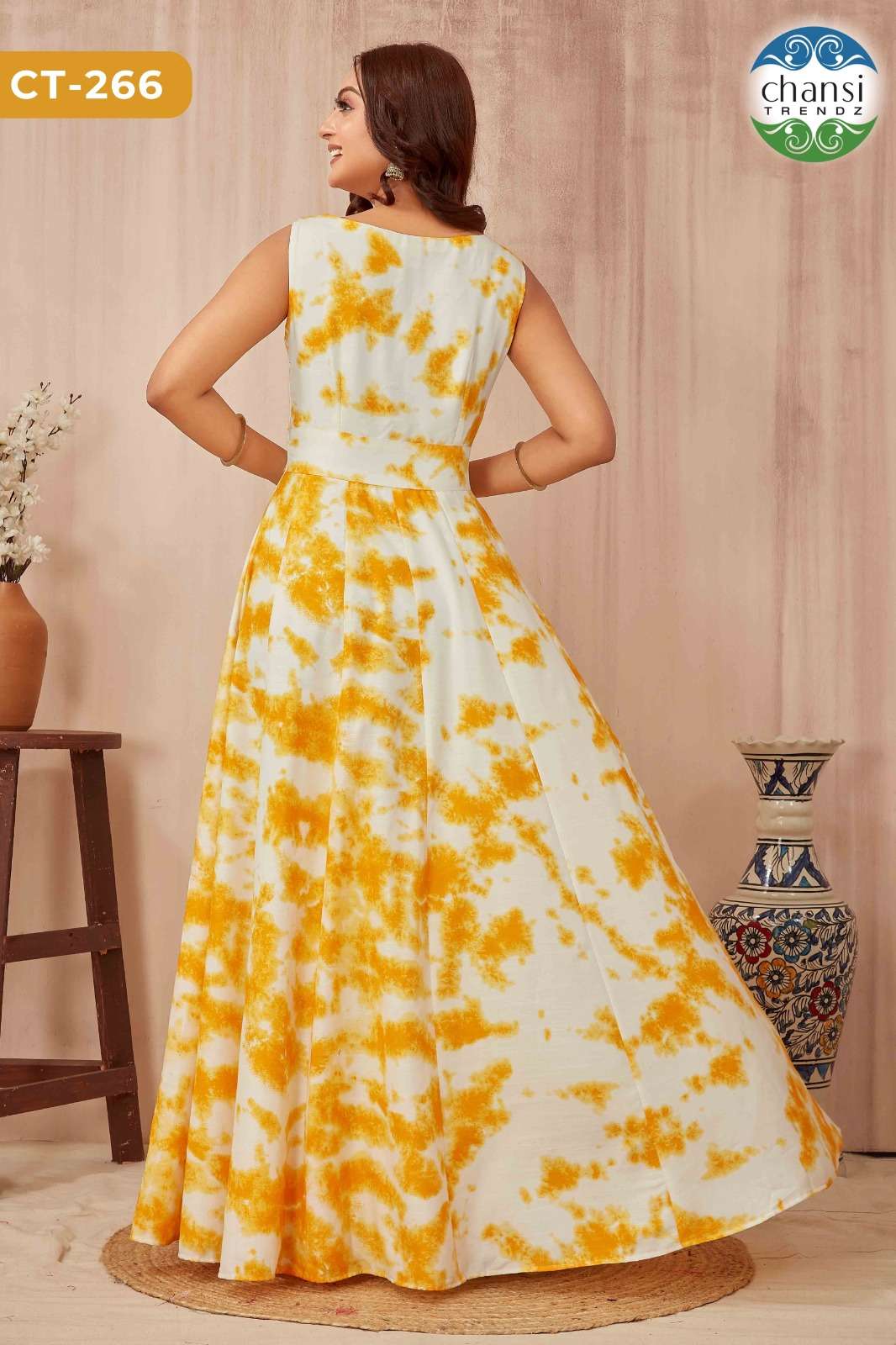*Chansi Trendz* ®️ Presents *CATALOG NAME: CT-266* FABRIC DETAILS: YELLOW SHIBORI ACCESSORIES: BEADS LACE INNER: CREPE SLEEVE : SLEEVLESS *PRICE: 899+5%(GST)* *NO OF DESIGNS: 1-PCS* SIZE: S, M, L, XL, XXL STOCK: READY TO DISPATCH |