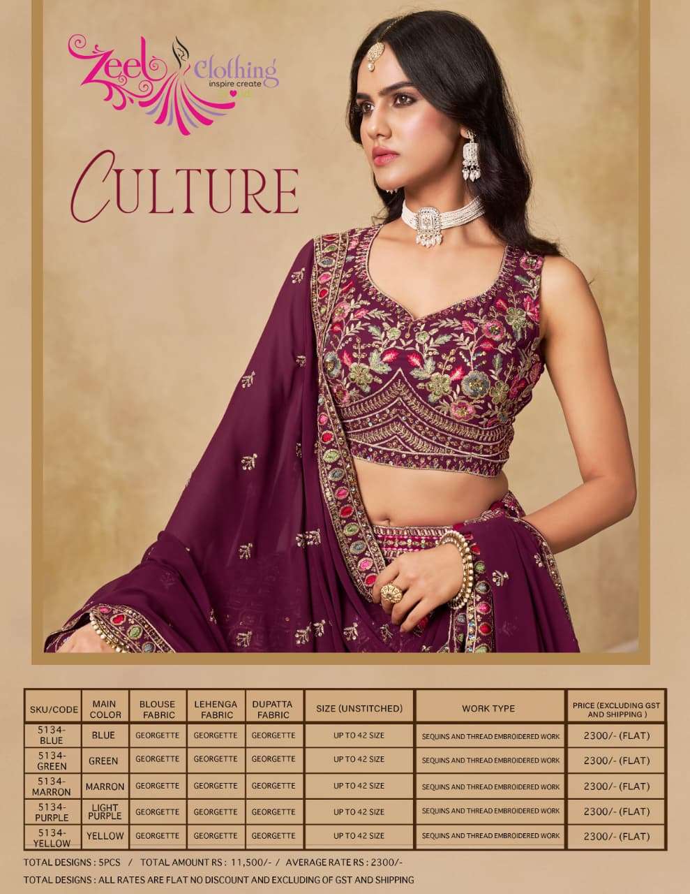 Buy Online CULTURE by Zeel Clothing Lehenga Choli collection manufacturers surat 5 Pcs of Full Catalogue at Wholesale Price. Looking for CULTURE by Zeel Clothing Lehenga Choli collection manufacturers surat Full Catalouge at Best Price? Buy Now CULTURE by Zeel Clothing Lehenga Choli collection manufacturers surat at Wholesale Rate of Rs 11500 with Total 5 Pcs from authroized dealer and supplier of Zeel Clothing Brand. Cost of Each piece is just only Rs 2300 which is very low and affordable price to resale the product in your retail store ,This is Surat based Wholesale Supplier & Dealer of Zeel Clothing Brand. Click on Brand name to Know more about Zeel Clothing Brand's products.Call or Whatsapp on 9898838984 for booking or enquiry