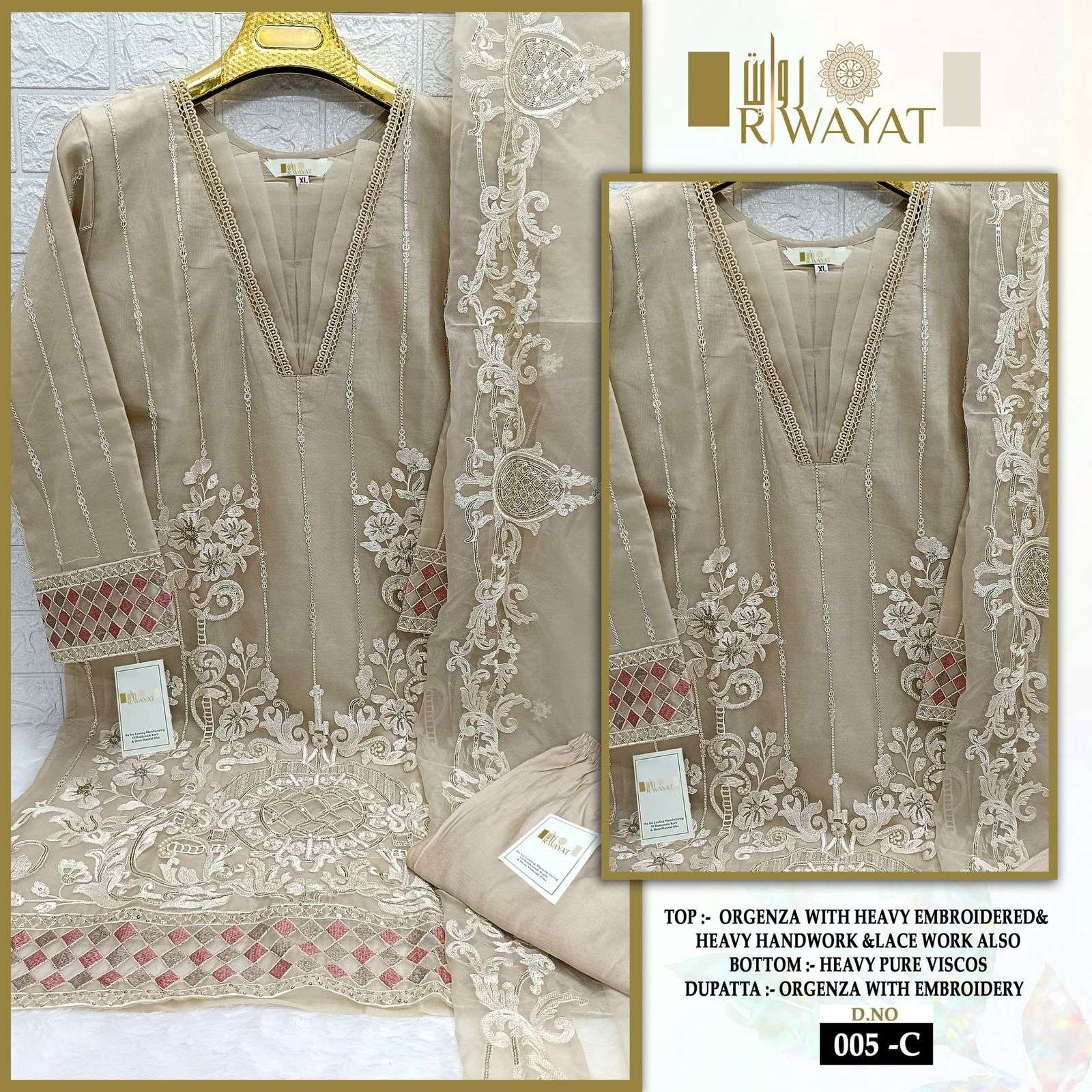 ‼️ *RIWAYAT™️* ( *AFFORDABLE ETHICS* )‼️ ‼️ *New Desaign Launch*‼️ *(D.no=005 A-B-C )* *ORGENZA READY MADE COLLECTION* 〰〰〰〰〰〰〰 ✨ *Top*:- HEAVY ORGENZA WITH HAND WORK & LACE WORK