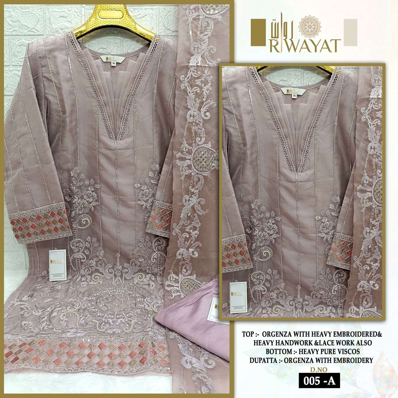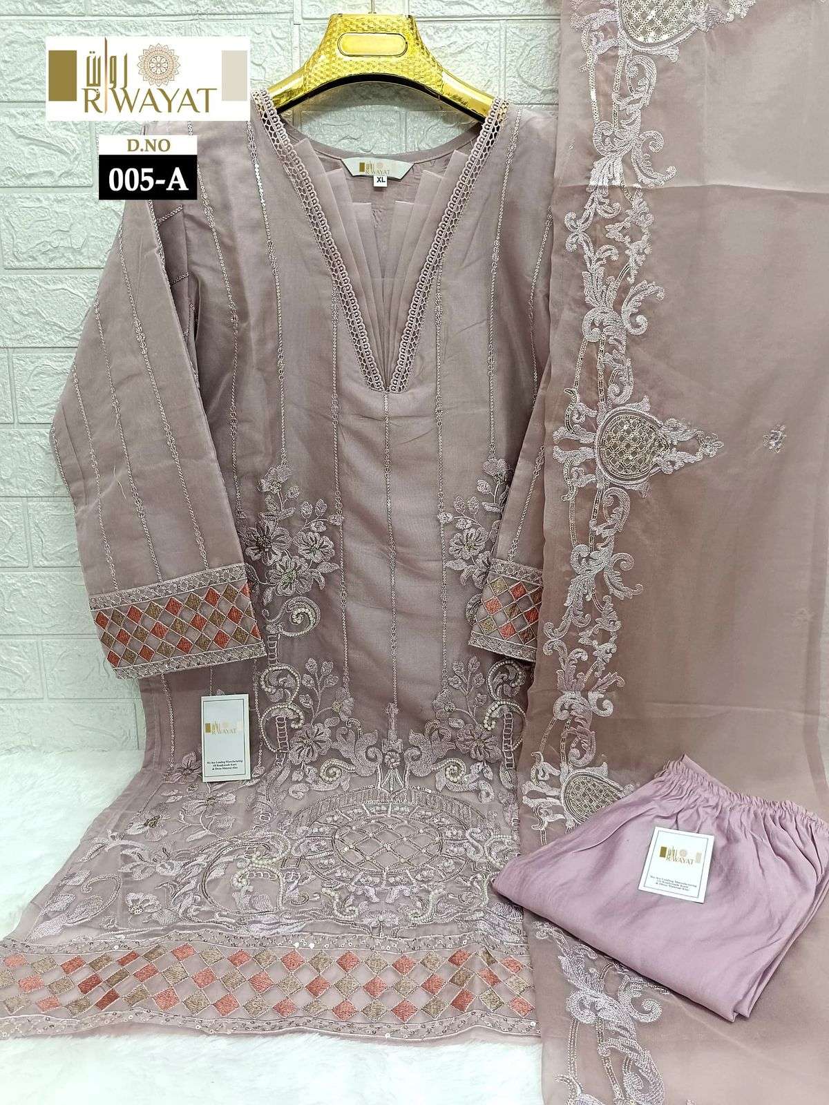 D no 005 A B C by RIWAYAT ORGENZA READYMADE kurti collection manufacturer surat