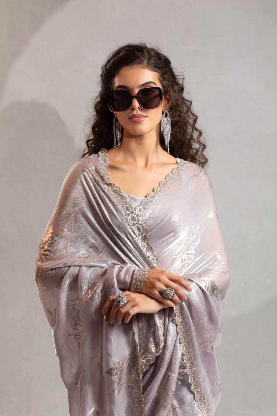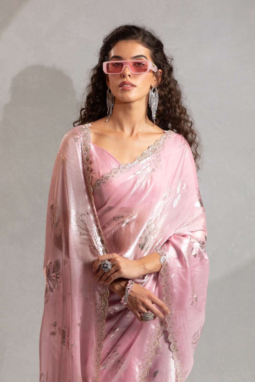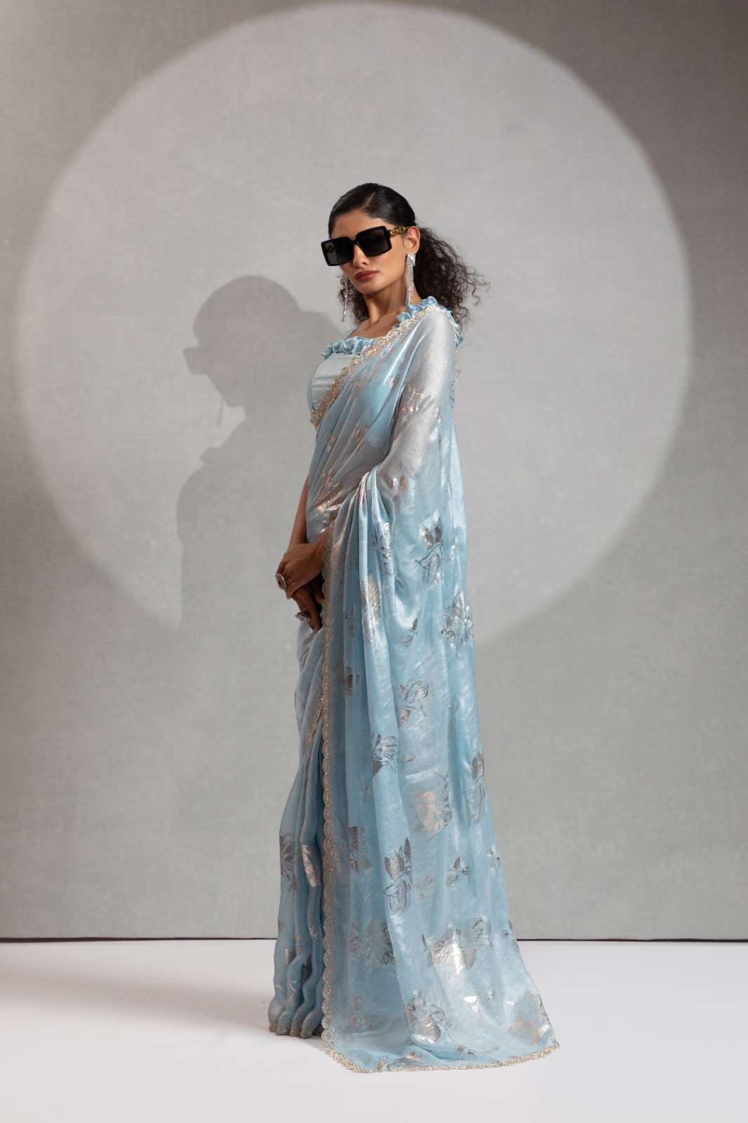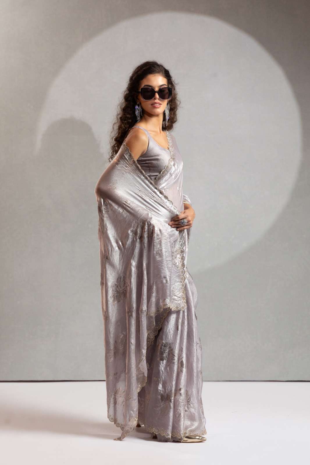 *FABRIC - satin silk with foil* *BLOUSE - satin silk* *WORK - hand work jerquen work*