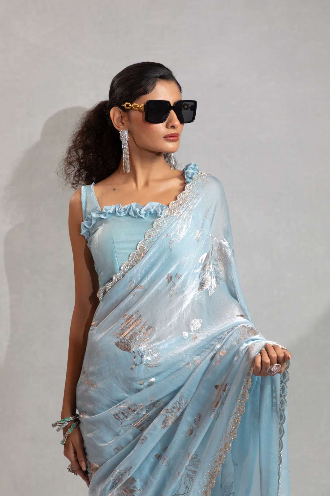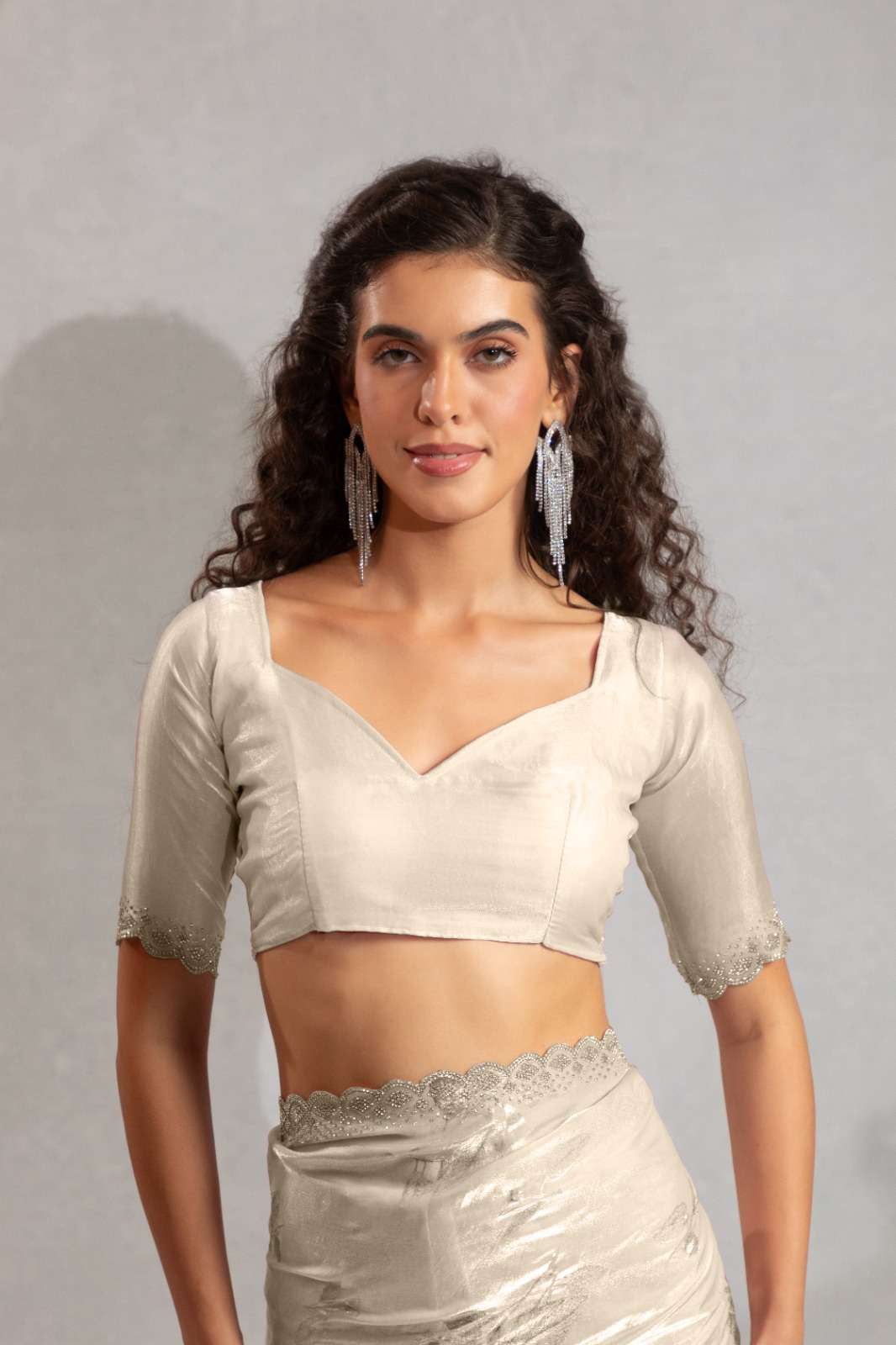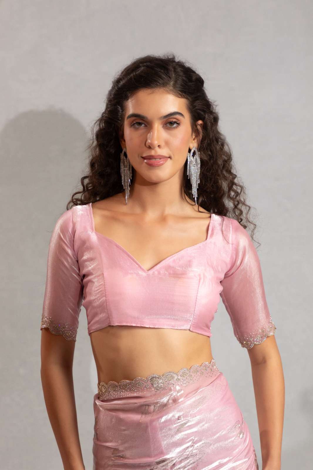 *FABRIC - satin silk with foil* *BLOUSE - satin silk* *WORK - hand work jerquen work*