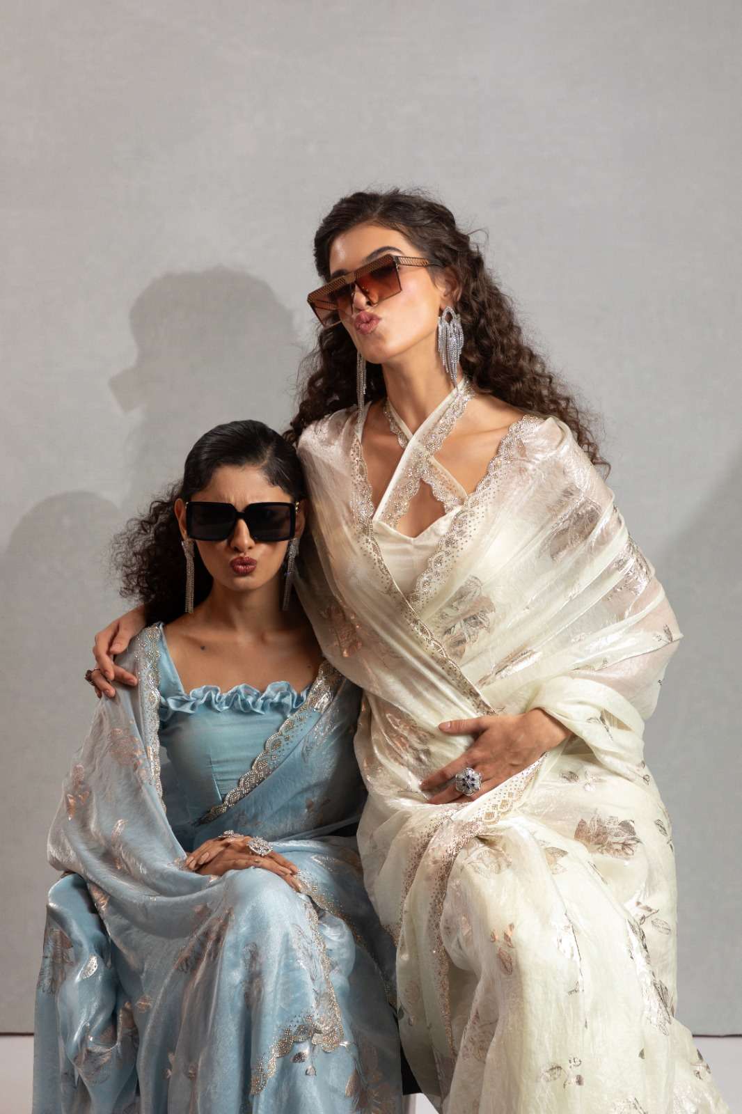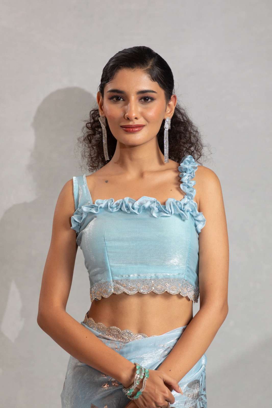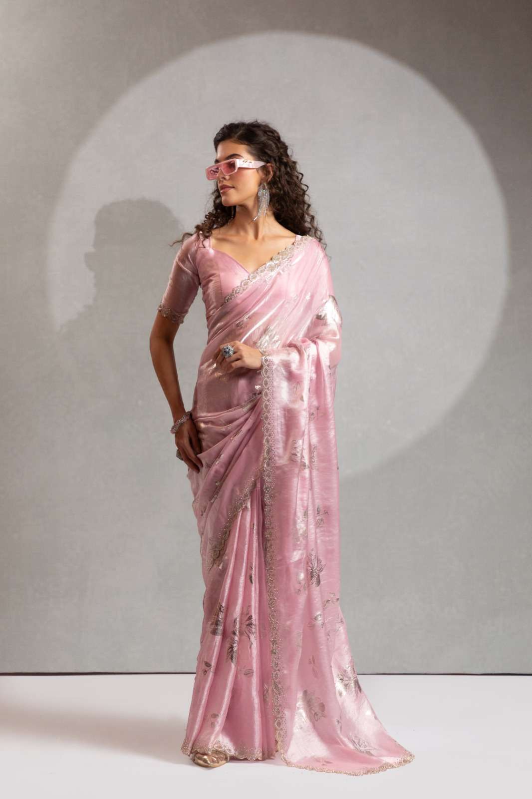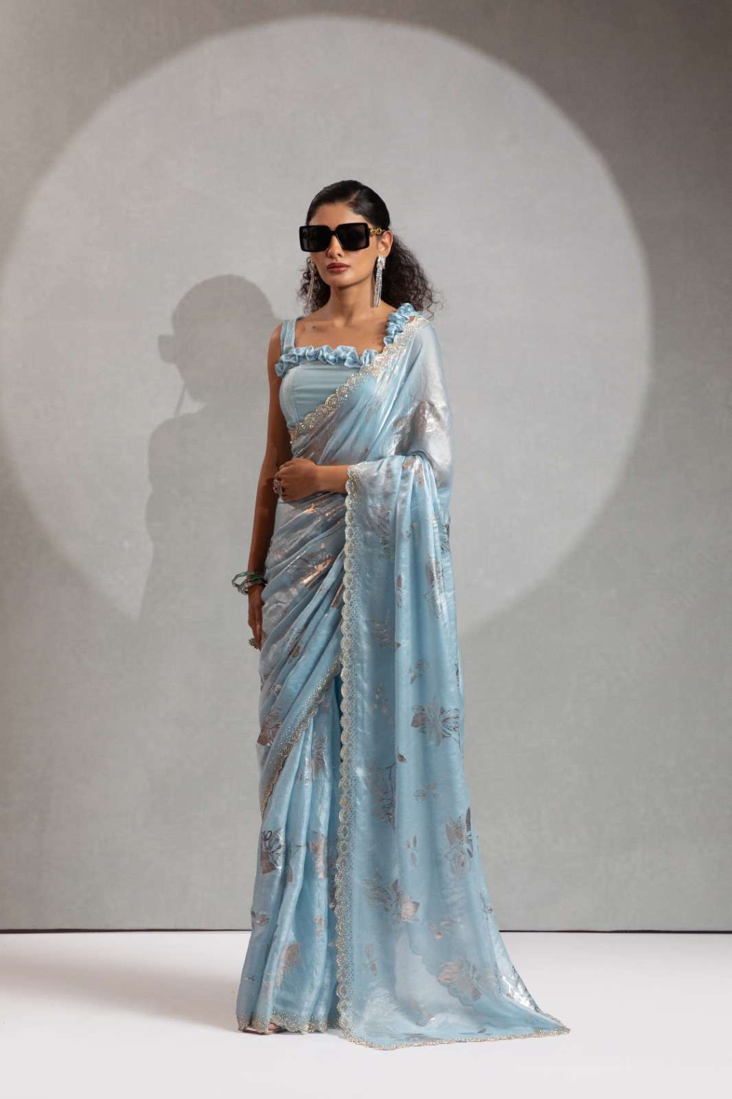 *FABRIC - satin silk with foil* *BLOUSE - satin silk* *WORK - hand work jerquen work*