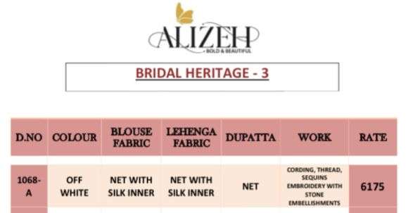 Buy Online D no 1068A by Alizeh net lehenga choli collection manufacturer surat 1 Pcs of Full Catalogue at Wholesale Price. Looking for D no 1068A by Alizeh net lehenga choli collection manufacturer surat Full Catalouge at Best Price? Buy Now D no 1068A by Alizeh net lehenga choli collection manufacturer surat at Wholesale Rate of Rs 6175 with Total 1 Pcs from authroized dealer and supplier of Alizeh Official Brand. Cost of Each piece is just only Rs 6175 which is very low and affordable price to resale the product in your retail store ,This is Surat based Wholesale Supplier & Dealer of Alizeh Official Brand. Click on Brand name to Know more about Alizeh Official Brand's products.Call or Whatsapp on 9898838984 for booking or enquiry