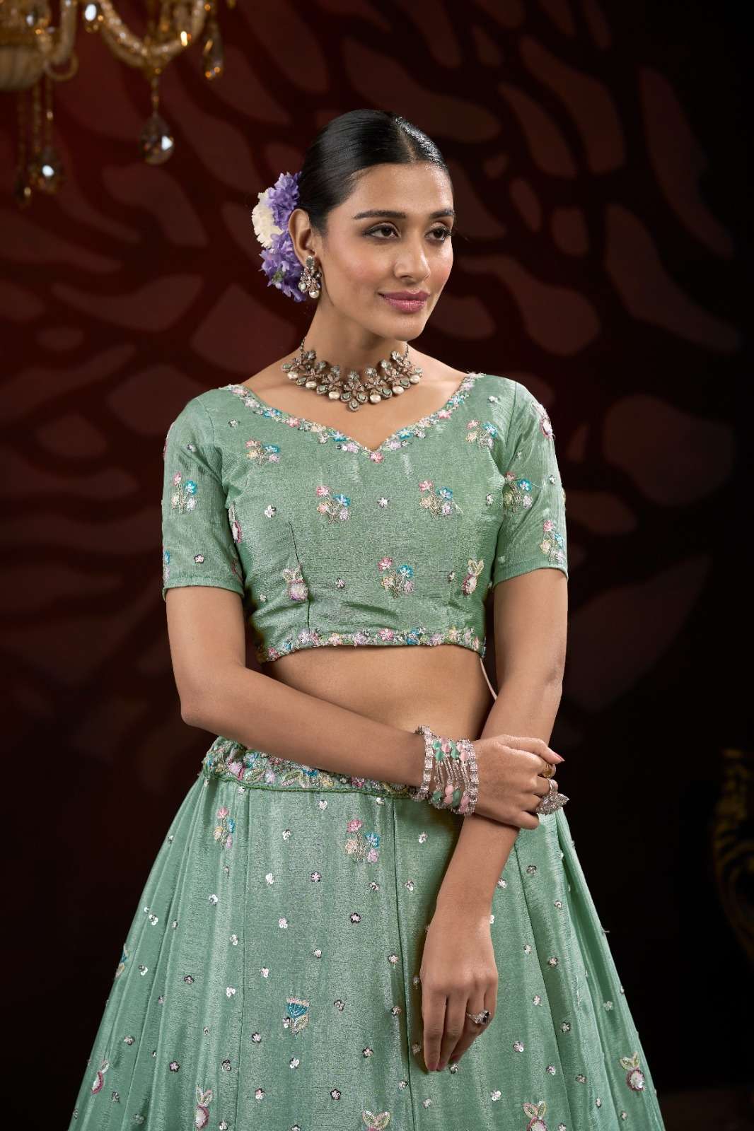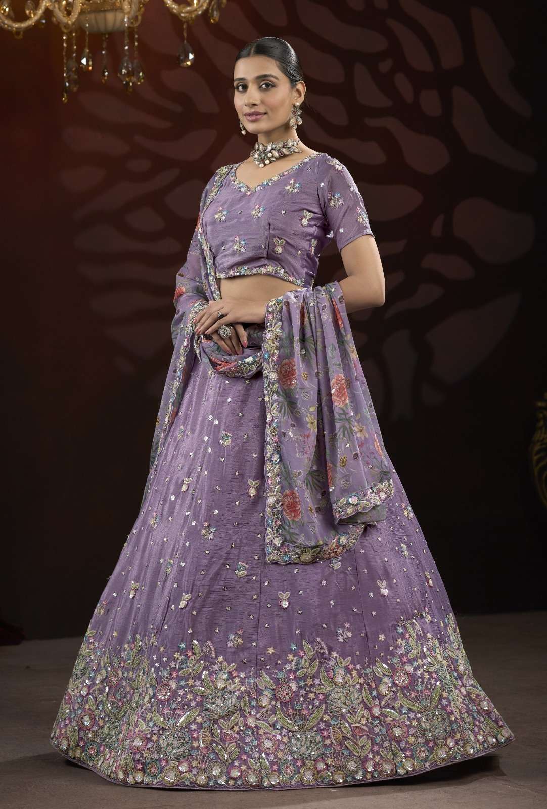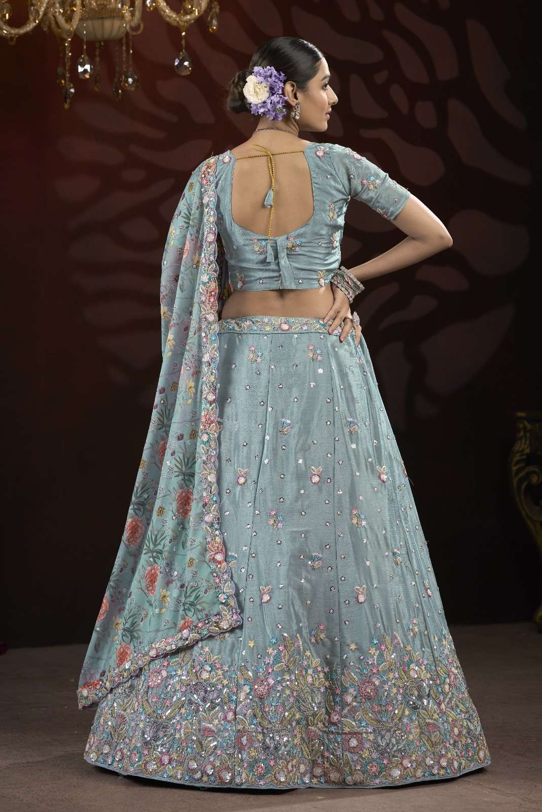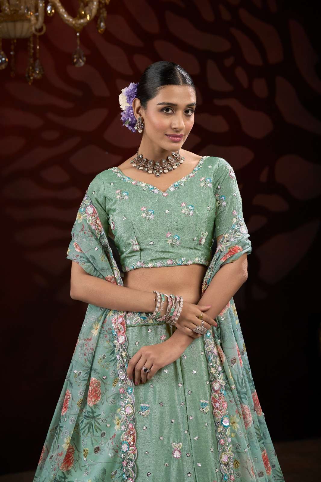 BRAND NAME – ANJANI ART D.NO. 1085 TO 1090 Lehenga Fabric – Bridal Net Blouse fabric - Heavy Chinnon Inner - Heavy Chinnon Dupatta – Georgette Work - Four Types of Sequins Embroidery, fancy Embroidery Work, Thread embroidery, Flower pattern Print Dupatta Weight - 2 kg Size - free size up to 42 Price – 3999/- PER PCS GST 12% EXTRA