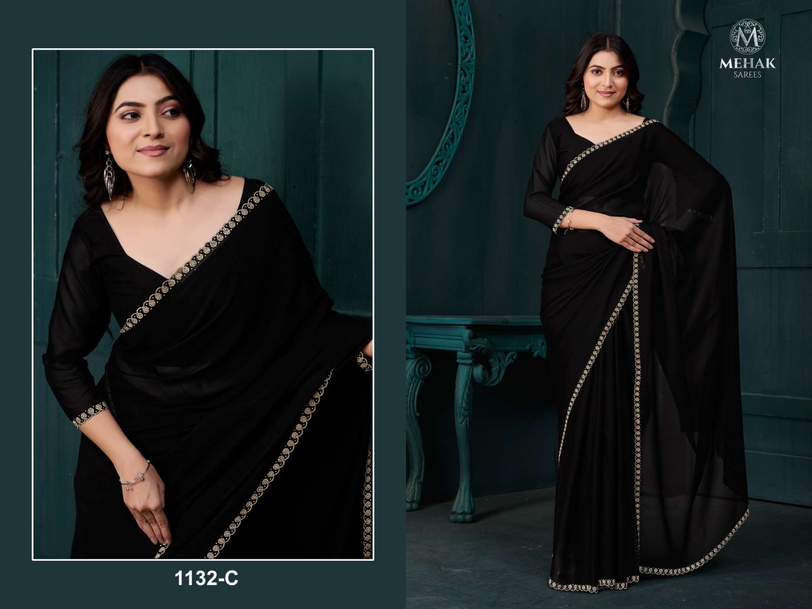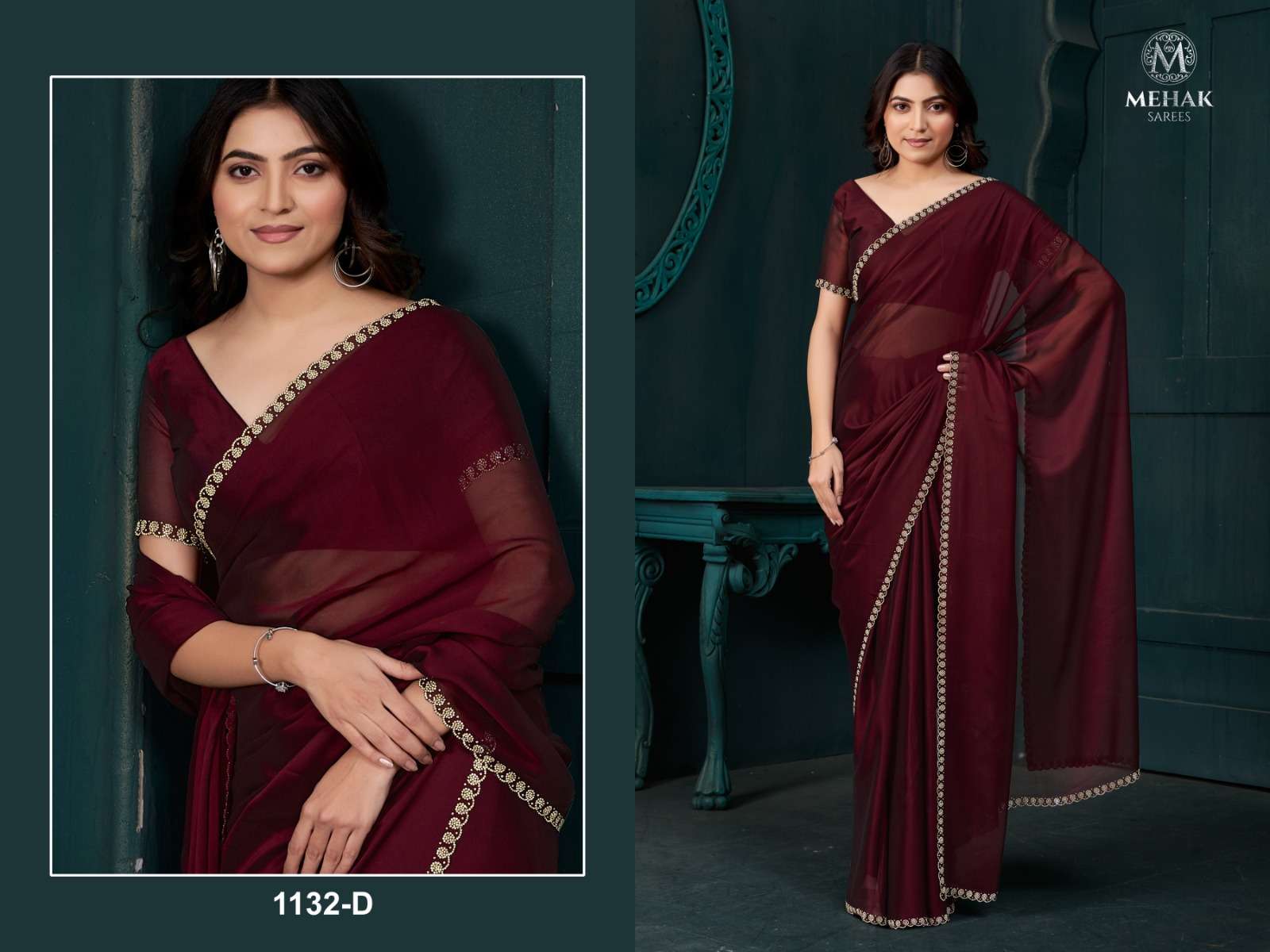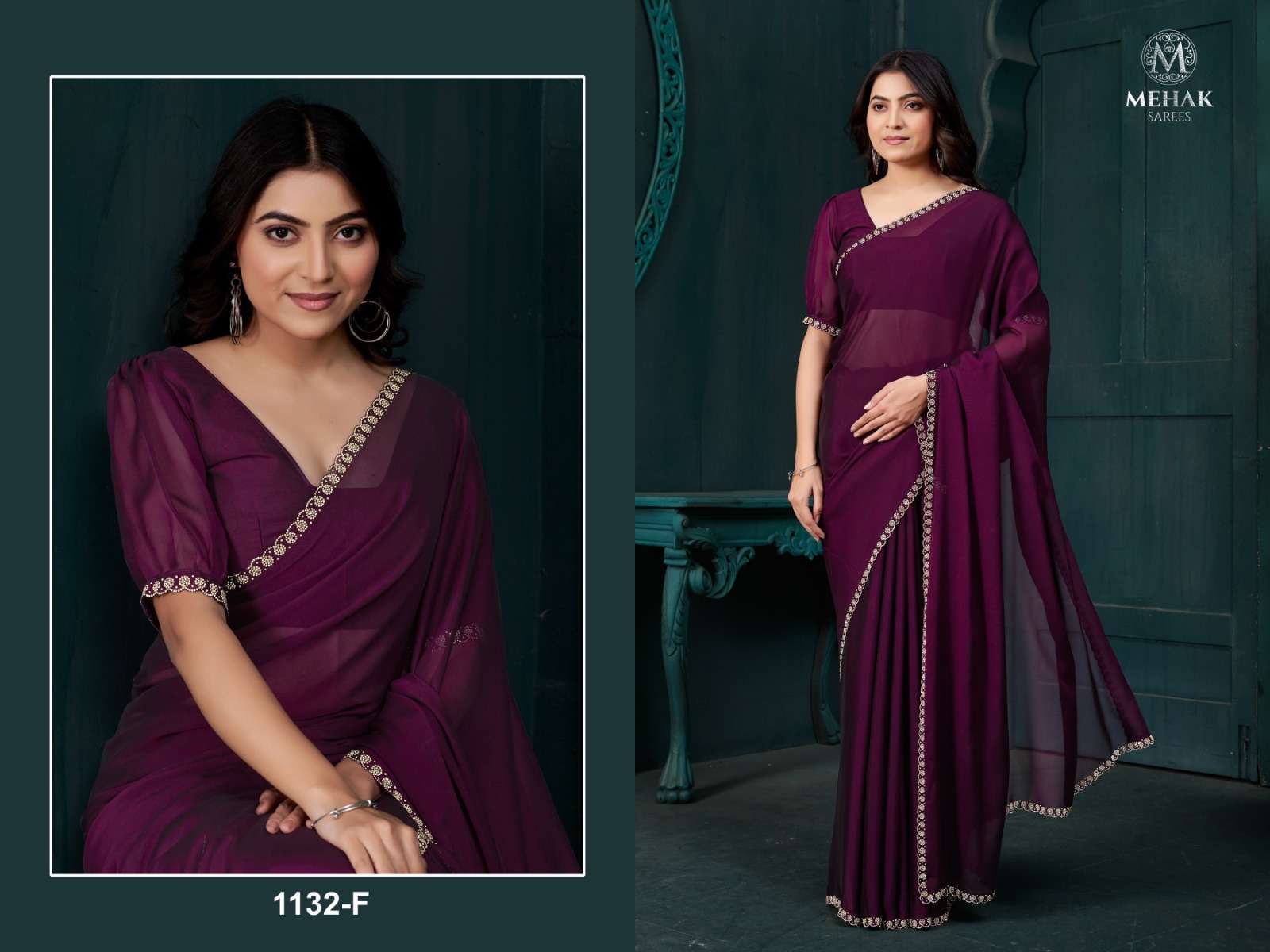 D NO 1132A TO 1132F By MEHEK SAREE CREAPE SILK saree collection manufacturer surat