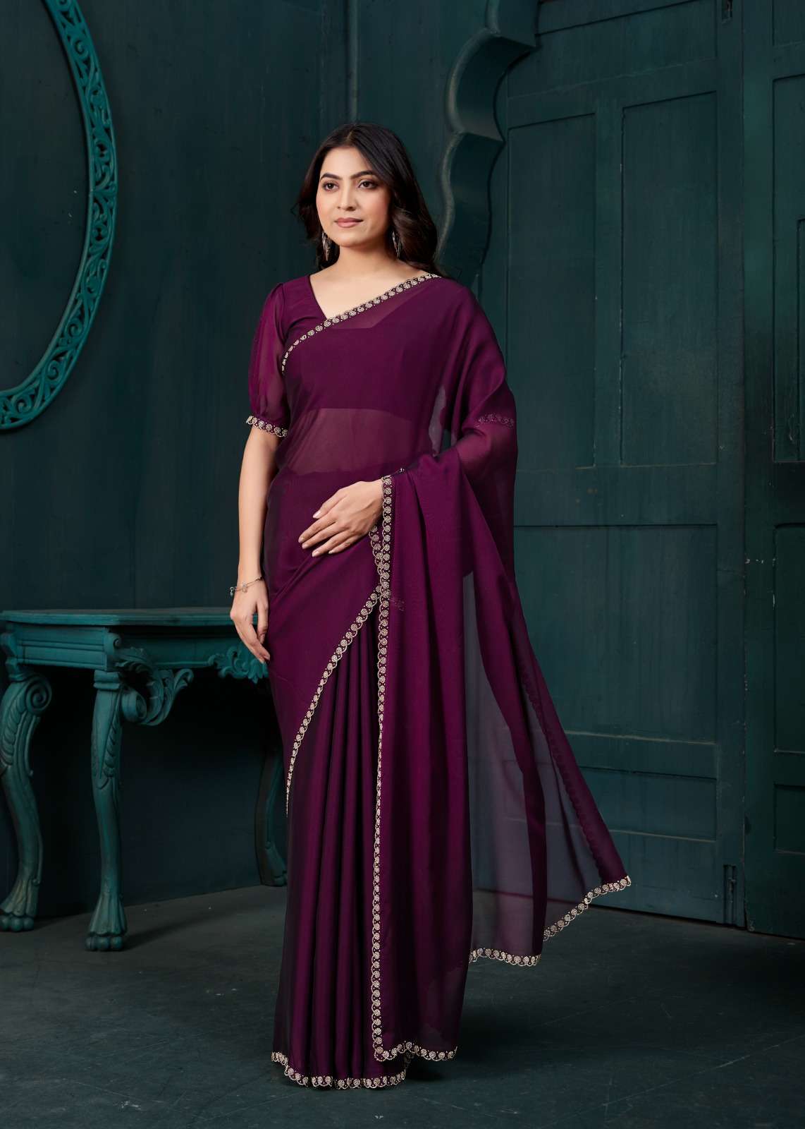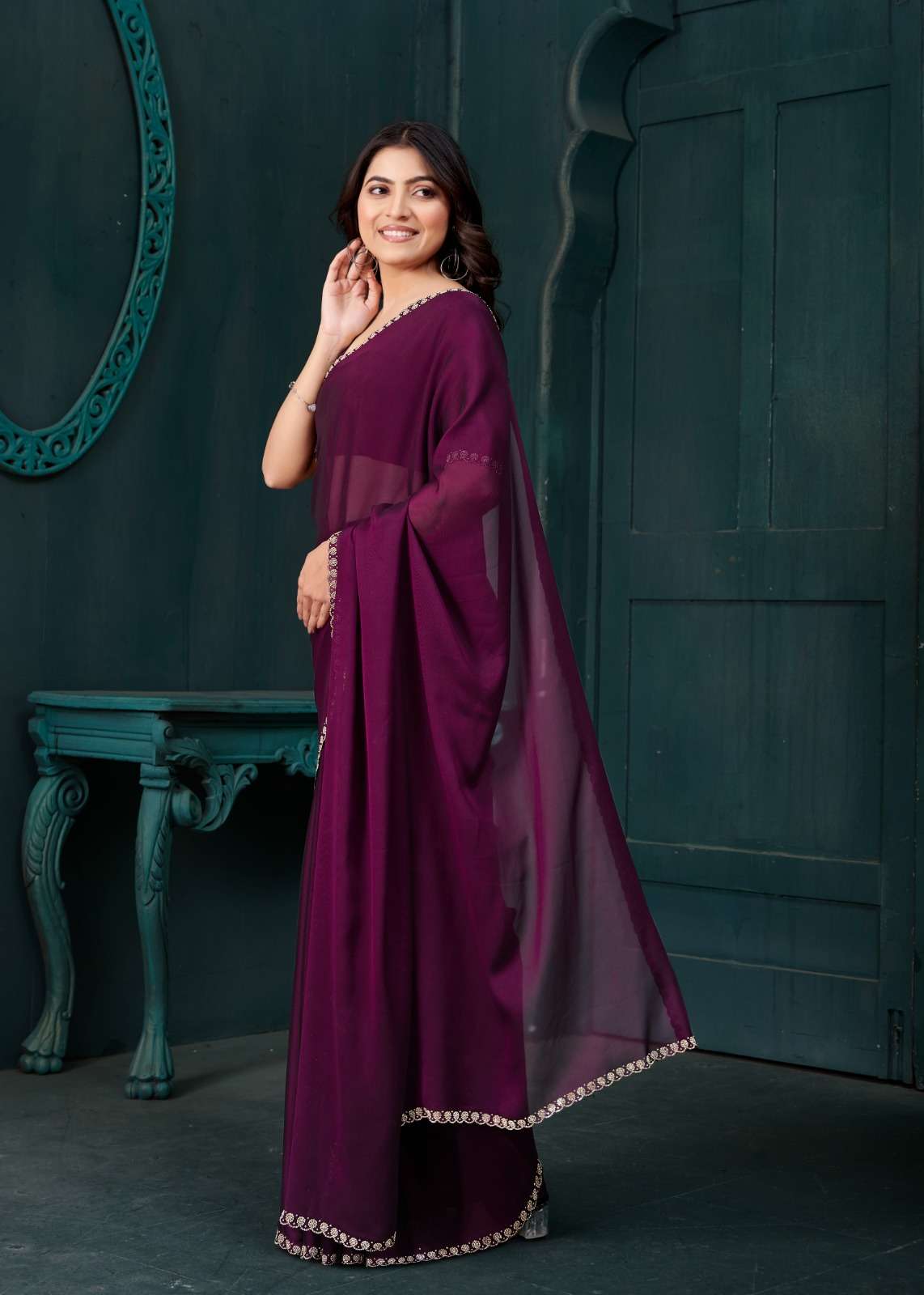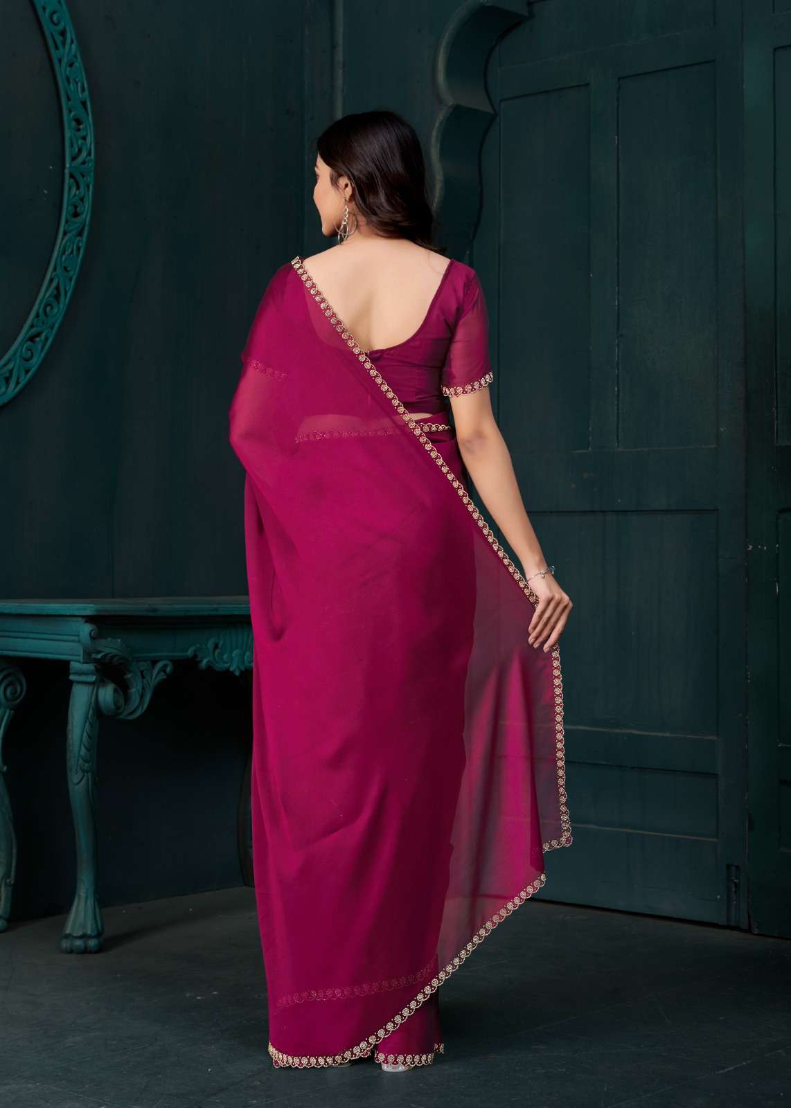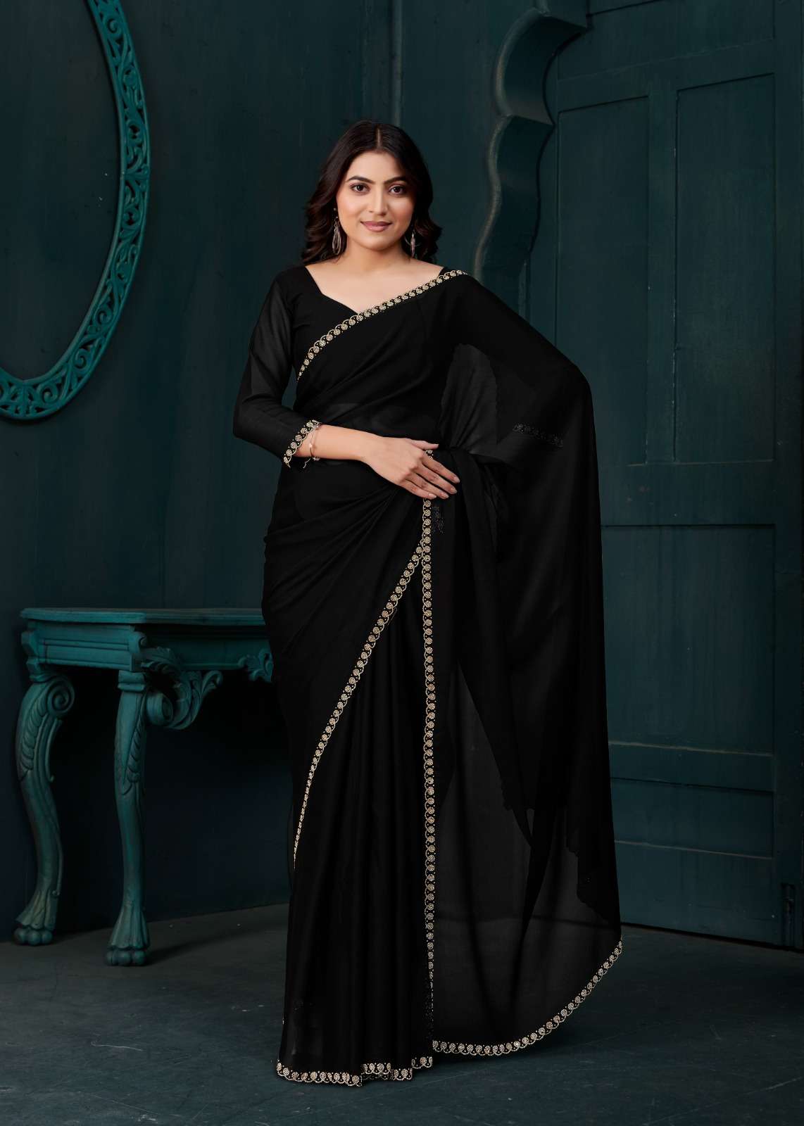 *Saree Features:* - *Intricate Handwork:* Embroidery, Sequins, and Beadwork - *Show-Stopping Design:* Truly exquisite and eye-catching